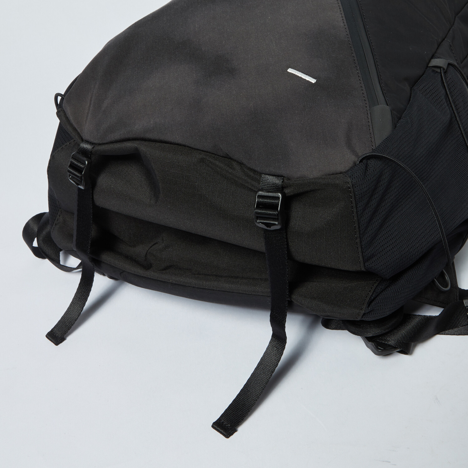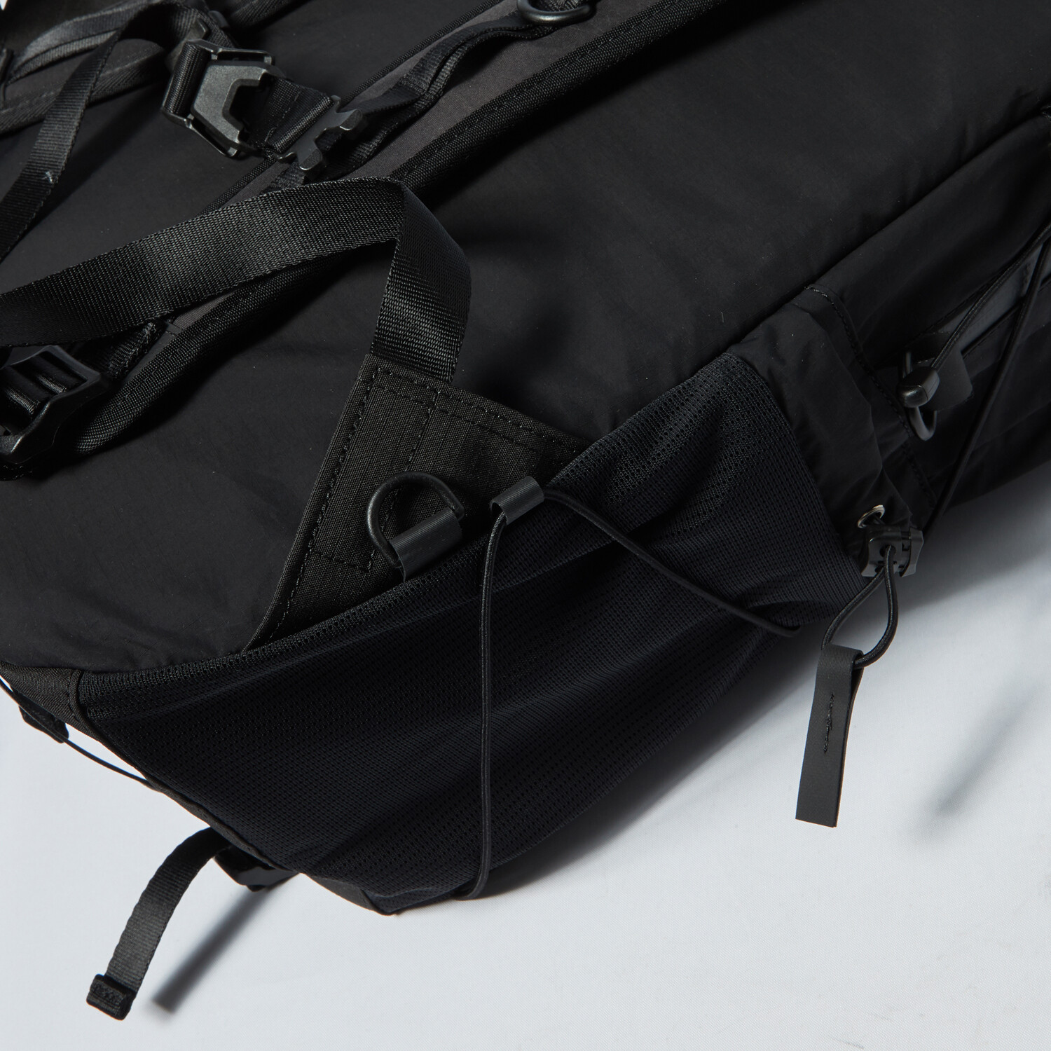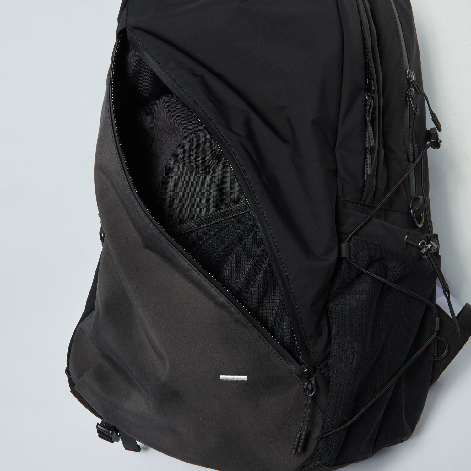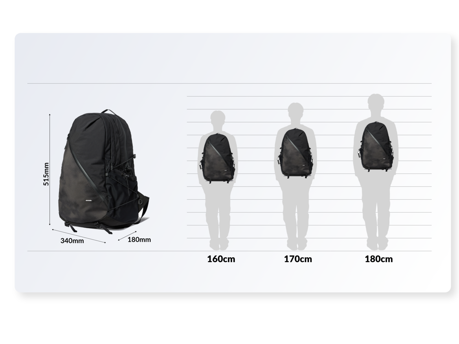: 모던한 분위기에 유틸리티적인 디테일이 추가된 데일리 백팩입니다. 출,퇴근용으로 사용하기 알맞게 별도의 랩탑 파티션 배치 및 내부에는 작은 수납 공간이 다양하게 구분되어 있으며 여유로운 용량으로 짧은 여행용으로도 사용하실 수 있습니다. 백팩 스트랩과 등판 그리고 바닥면에는 사용자의 편의성을 고려하고 처짐을 방지하기 위한 고탄성의 보강재들이 적합하게 위치해 있어서 장시간 사용하셔도 무리가 없습니다. 하단의 웨빙과 어드저스터를 통해 내부 용량에 맞춰 가방 형태를 조절하실 수 있고 벗어둔 겉옷이나 매트등을 말아서 보관할 수 있습니다. 옆 면에는 메쉬 소재의 포켓이 있어서 각종 보틀이나 우산 등의 물건을 넣어두실 수 있고 E-스트링과 버클 및 스토퍼로 알맞게 조여 고정시킬 수 있습니다. 가방의 스트랩은 인체공학적인 곡선형으로 설계되어 흘러내림이 덜하고 두 개의 어깨끈을 잡아주는 '체스트 스트랩'은 클립을 통한 Sternum System이 적용되어 위치(높이)를 조절할 수 있습니다. 바닥면과 등판 일부분에는 발수 코팅된 밀도있는 립스탑 원단을 사용하여 내구성 측면에서도 세심하게 신경쓴 제품입니다.