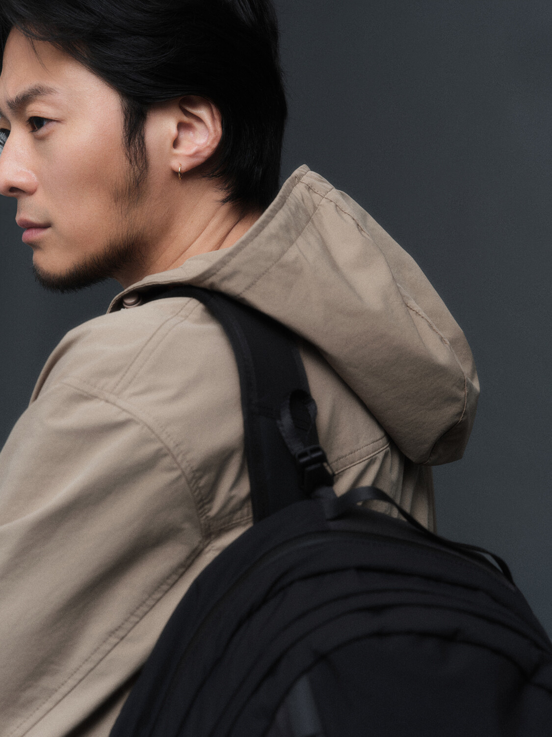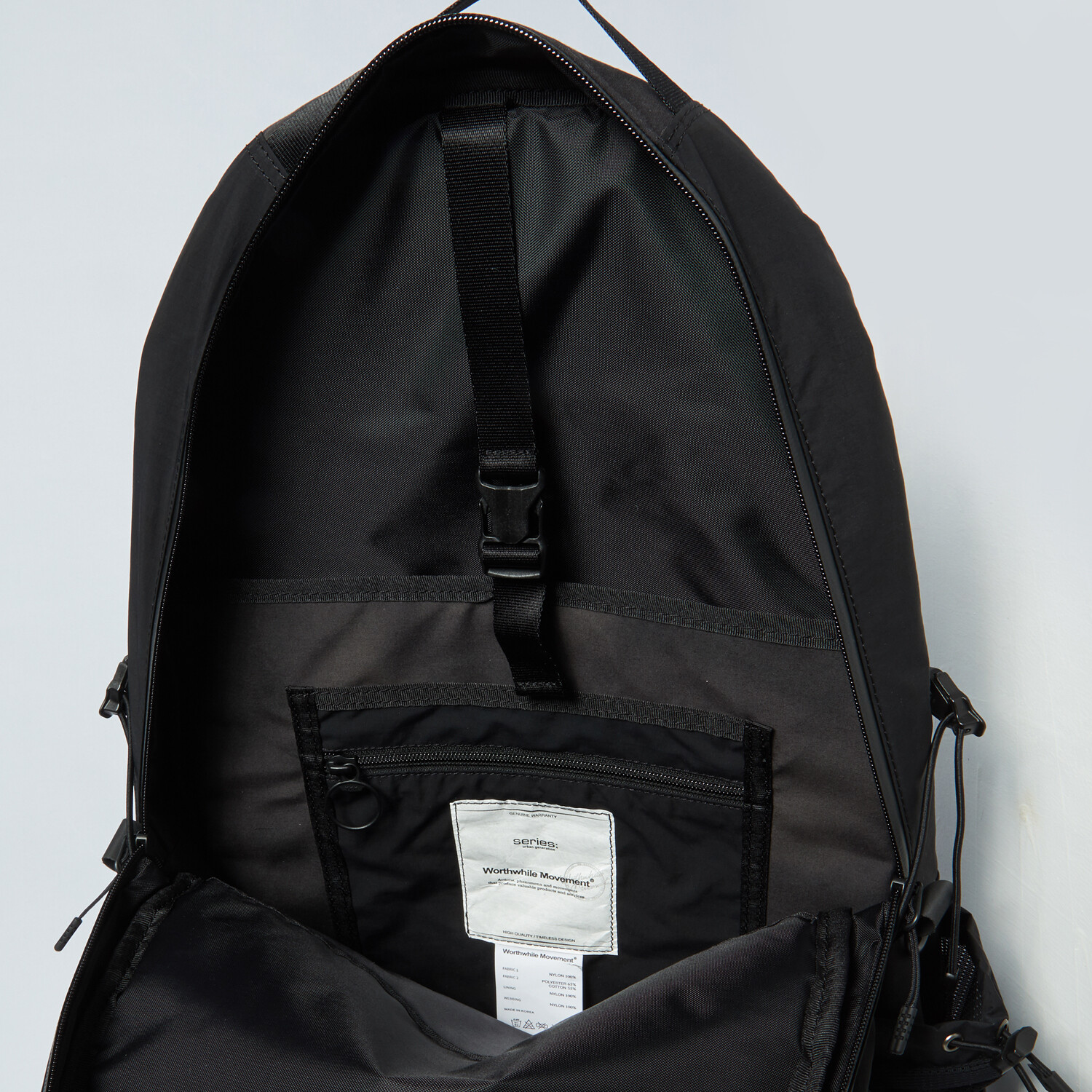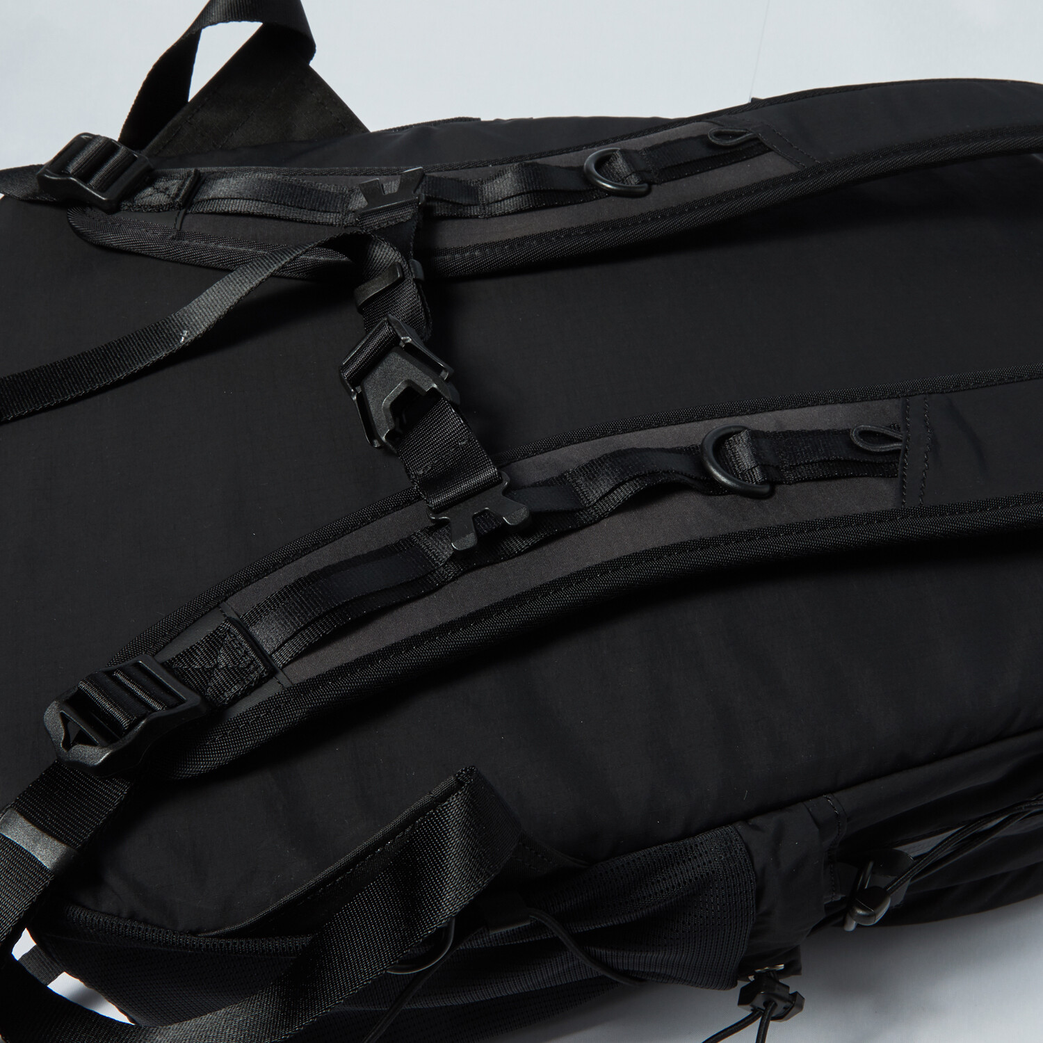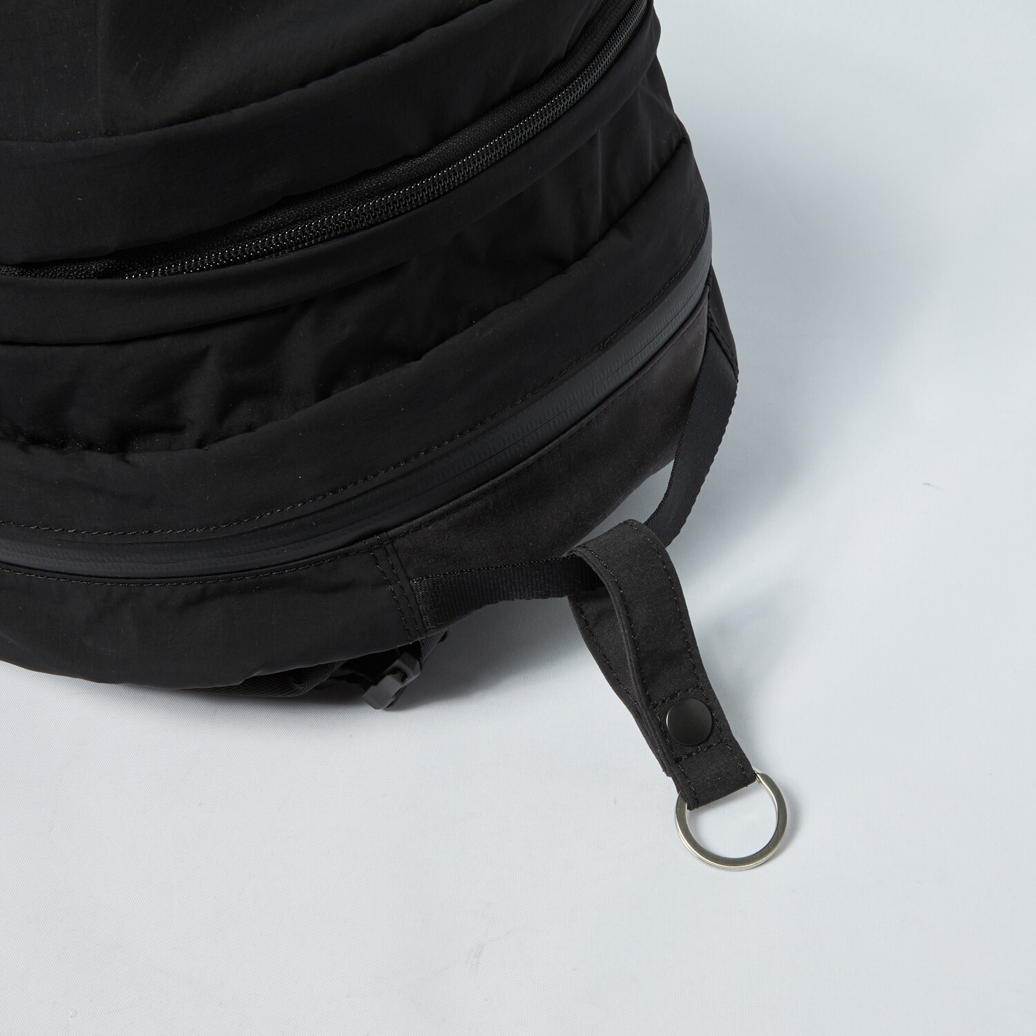 : 모던한 분위기에 유틸리티적인 디테일이 추가된 데일리 백팩입니다. 출,퇴근용으로 사용하기 알맞게 별도의 랩탑 파티션 배치 및 내부에는 작은 수납 공간이 다양하게 구분되어 있으며 여유로운 용량으로 짧은 여행용으로도 사용하실 수 있습니다. 백팩 스트랩과 등판 그리고 바닥면에는 사용자의 편의성을 고려하고 처짐을 방지하기 위한 고탄성의 보강재들이 적합하게 위치해 있어서 장시간 사용하셔도 무리가 없습니다. 하단의 웨빙과 어드저스터를 통해 내부 용량에 맞춰 가방 형태를 조절하실 수 있고 벗어둔 겉옷이나 매트등을 말아서 보관할 수 있습니다. 옆 면에는 메쉬 소재의 포켓이 있어서 각종 보틀이나 우산 등의 물건을 넣어두실 수 있고 E-스트링과 버클 및 스토퍼로 알맞게 조여 고정시킬 수 있습니다. 가방의 스트랩은 인체공학적인 곡선형으로 설계되어 흘러내림이 덜하고 두 개의 어깨끈을 잡아주는 '체스트 스트랩'은 클립을 통한 Sternum System이 적용되어 위치(높이)를 조절할 수 있습니다. 바닥면과 등판 일부분에는 발수 코팅된 밀도있는 립스탑 원단을 사용하여 내구성 측면에서도 세심하게 신경쓴 제품입니다.