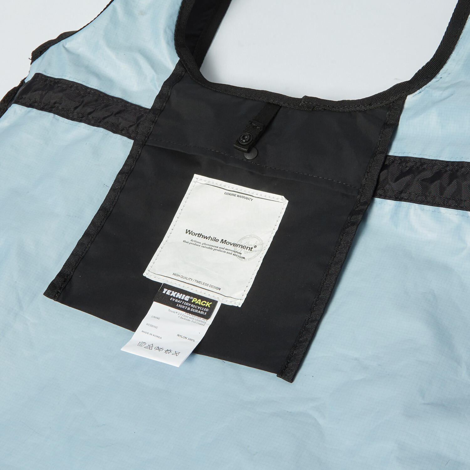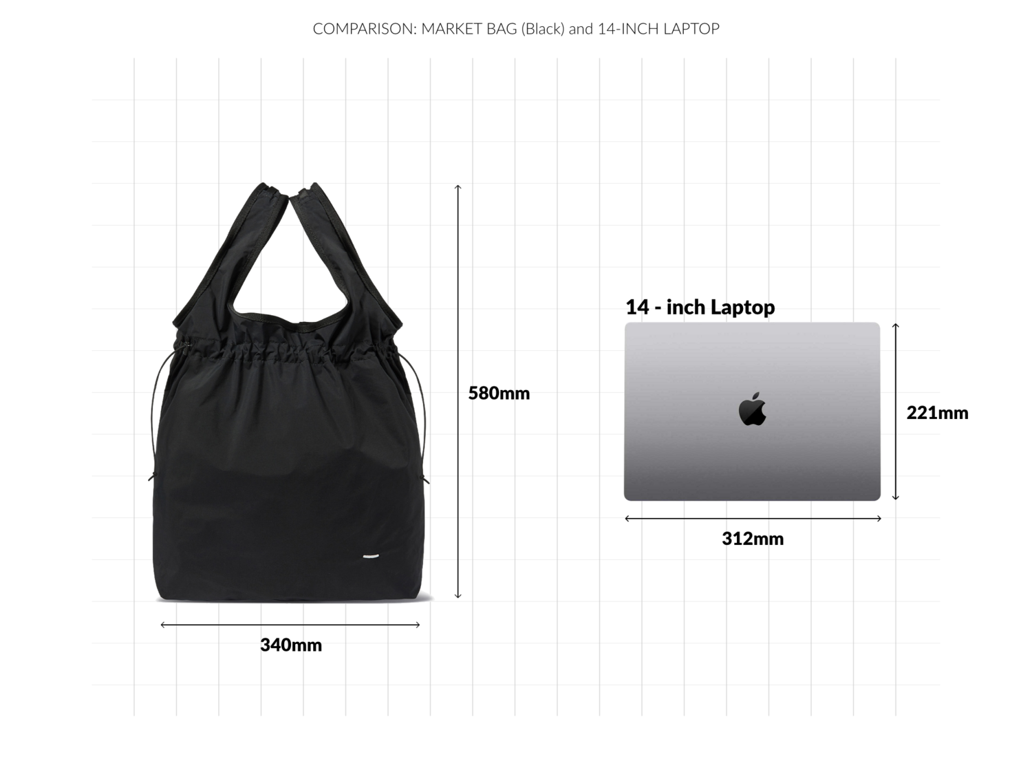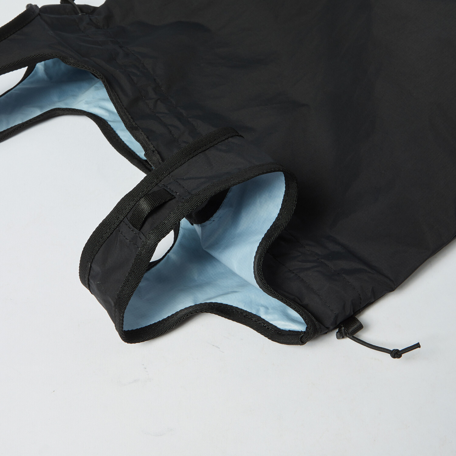 •일상 속 다방면에서 활용하기 좋은 다용도 마켓백 •초고분자량 폴리에틸렌 소재를 코팅한 N/P 분할사 원단 사용 •전기차의 배터리 분리막을 리사이클한 텍스닉 소재 활용 •방오, 내구성 강화를 위해 분리막 면에 추가 Foil 코팅 진행 •경/위사 5:5 배열의 좋은 밸런스의 ATY 가공 원단 •탈부착이 가능한 나일론 능직 웨빙 스트랩과 회전식 후크를 통해 크로스백으로 사용 가능 •E-스트링과 스토퍼를 사용하여 입구 및 실루엣 조절 기능 •이너 포켓 •재팬 썬그립 스냅버튼 사용