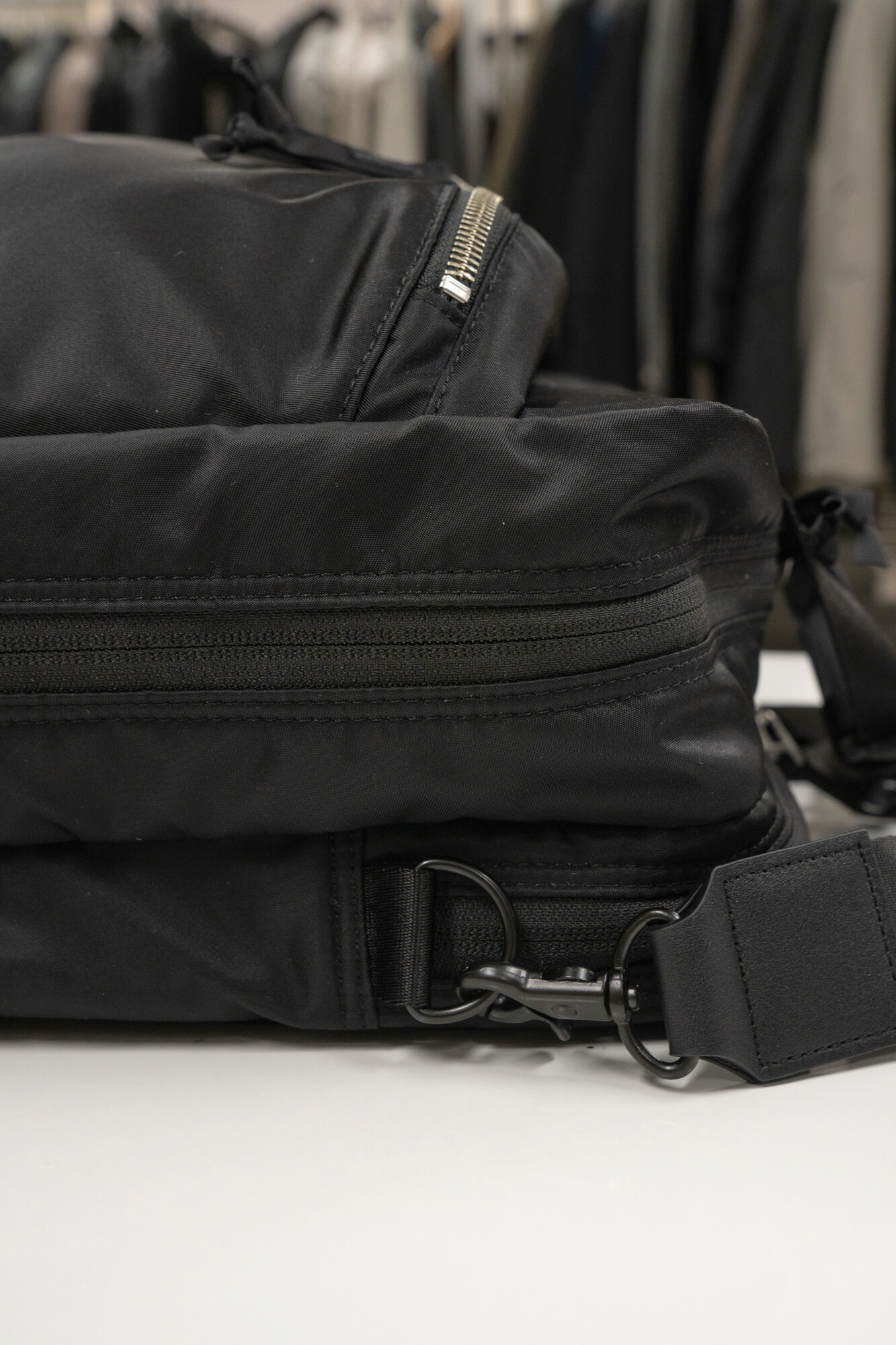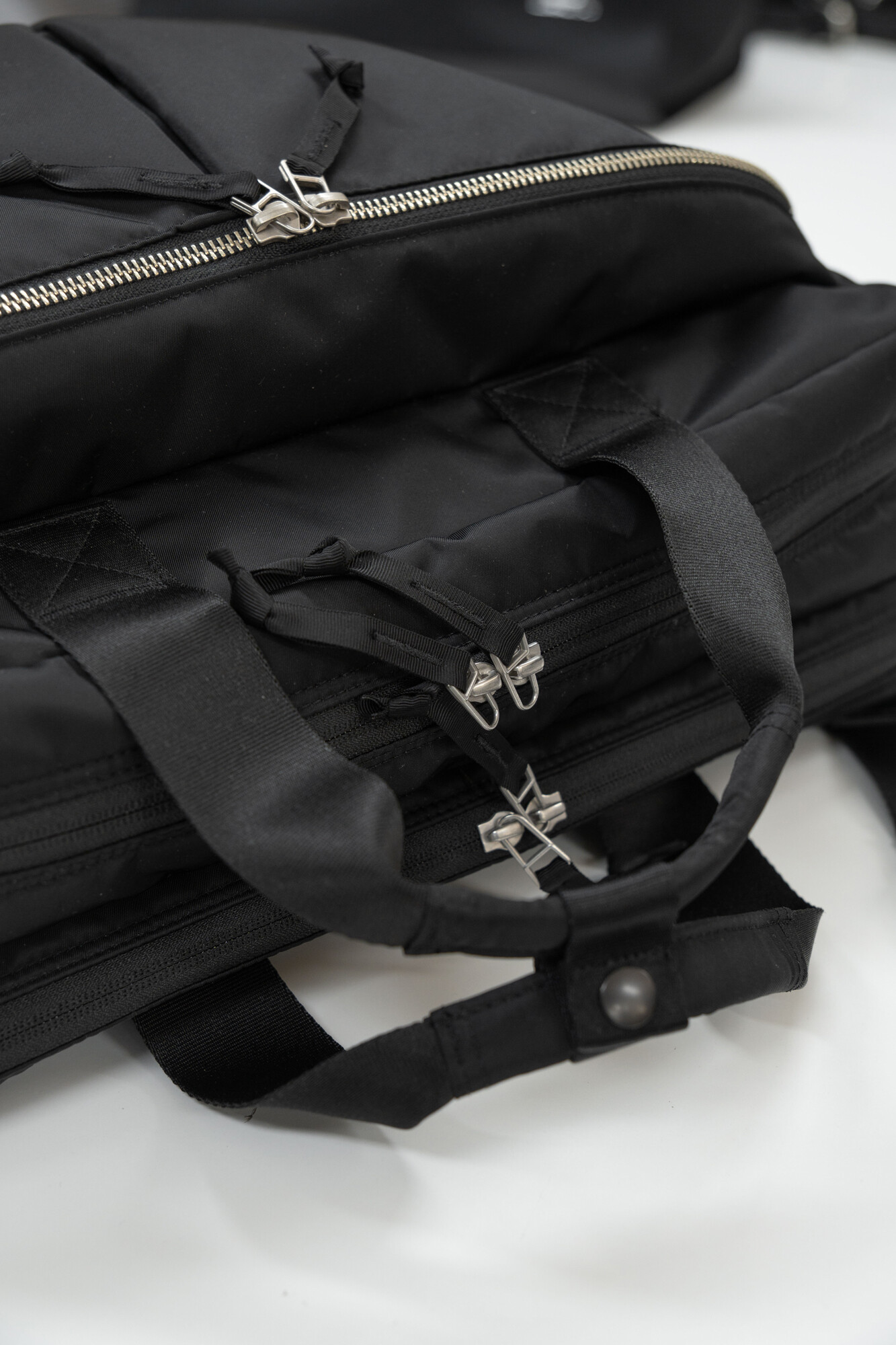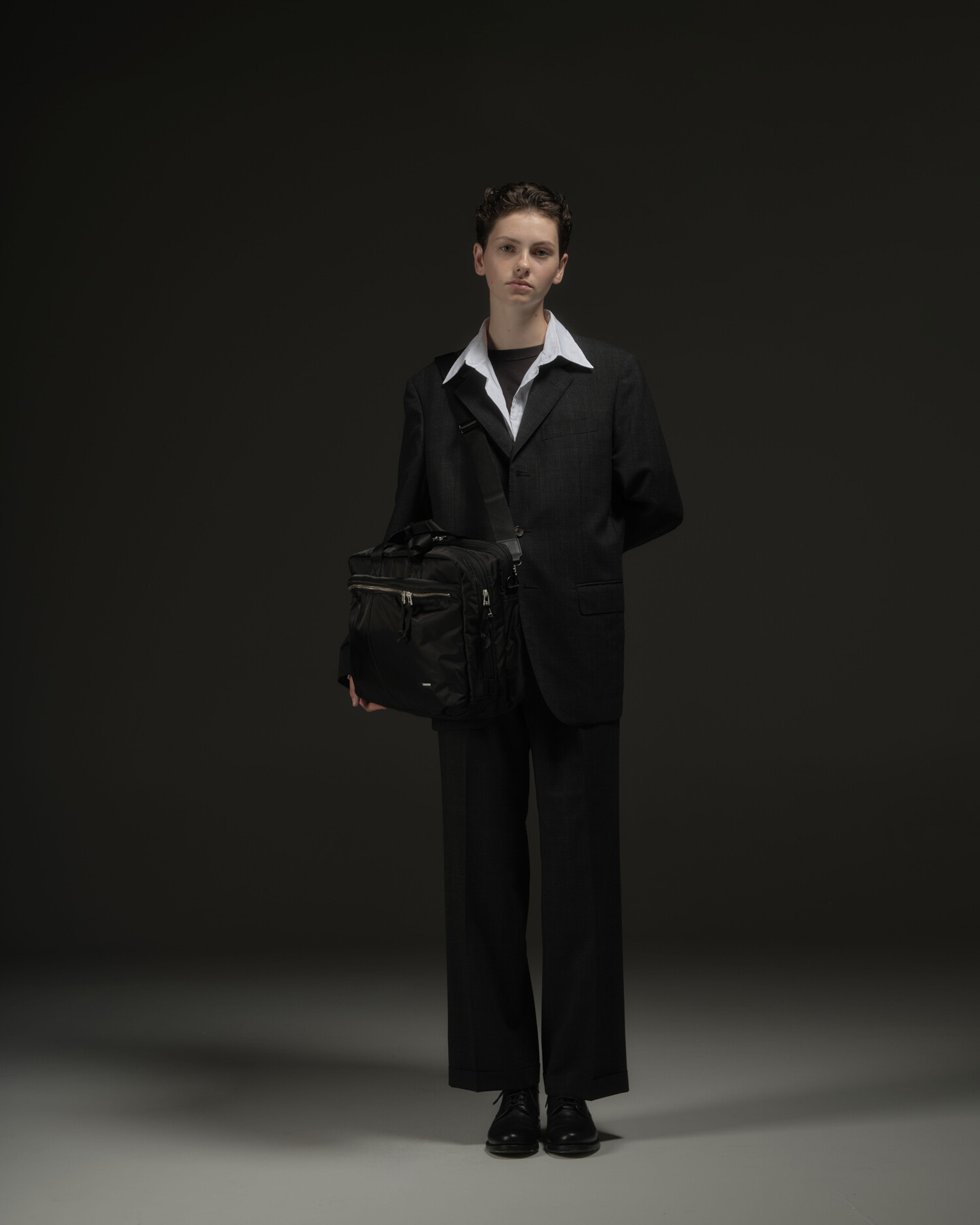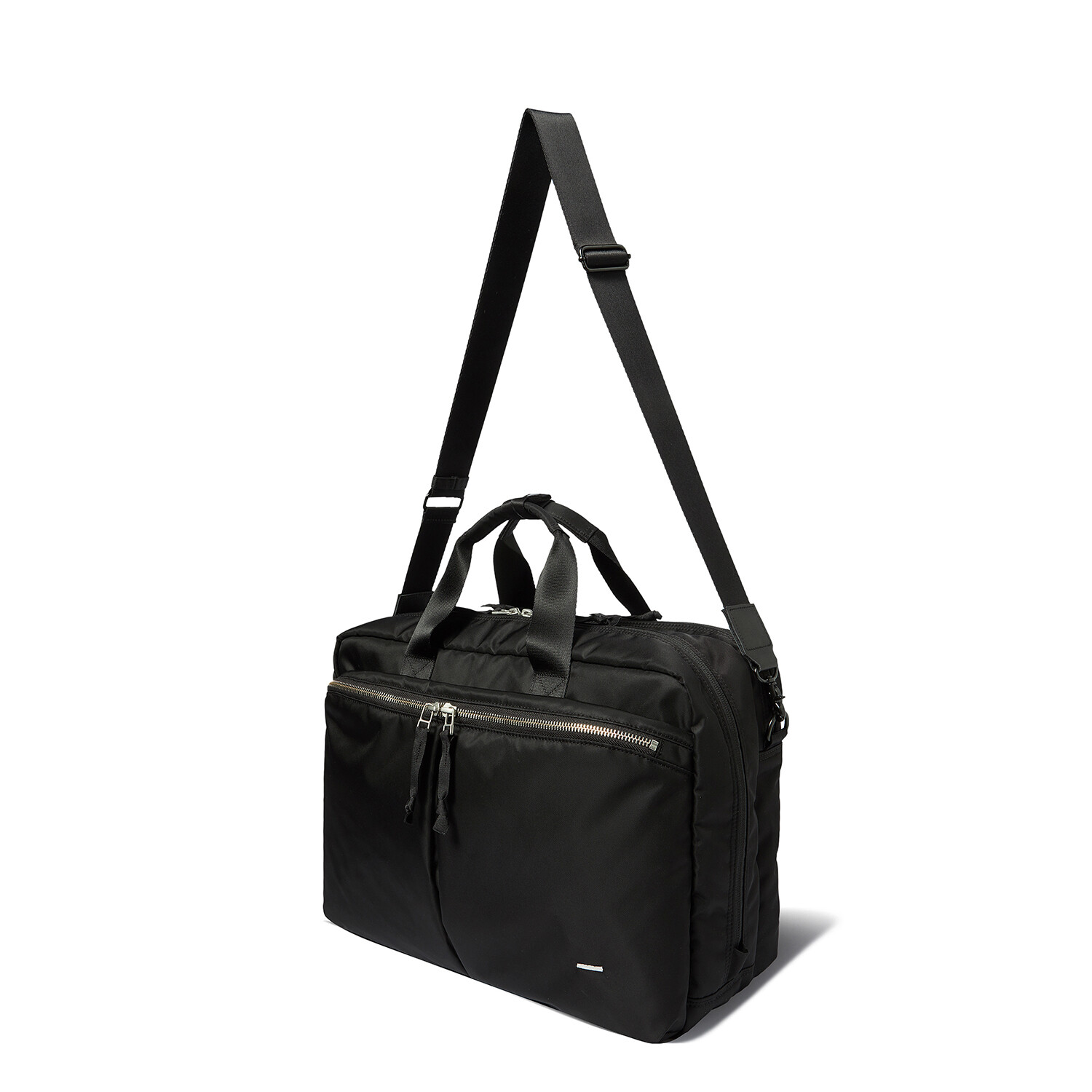 비즈니스와 데일리의 경계를 허문 하이엔드 브리프케이스, TRUSS 3C 도큐먼트 백은 '구조적인 아름다움'이라는 테마 아래 세련된 실루엣과 탄탄한 기능성을 동시에 담아낸 TRUSS 시리즈의 첫 번째 결과물입니다. 효성 TNC의 고밀도 재생 나일론을 메인 원단으로 사용하여 가볍고 견고하며, 은은한 광택이 도는 텍스처와 깊이감이 있는 컬러감으로 모던한 분위기를 극대화했습니다. 보강재를 덧댄 바디는 형태가 흐트러지지 않도록 안정적으로 잡아주며, 손에 들었을 때나 어깨에 멨을 때 모두 편안한 착용감을 제공합니다. 특히 이 제품은 3개의 독립적인 수납칸(Compartment)으로 구성되어 있으며, 메인 지퍼부에는 2중 거젯 구조(나일론+메쉬) 를 적용하여 넓은 개폐 편의성과 함께 소지품 이탈 방지 기능을 더했습니다. 또한 프론트 포켓을 옆에서 보았을 때 상단으로 상승하는 듯한 구조와 프론트 플리츠는 시각적인 포인트가 되어 입체적인 실루엣을 완성합니다. 외관의 지퍼는 빈티지한 무드의 니켈 메탈 지퍼와 실용적인 나일론 지퍼를 조화롭게 배치하여 클래식과 컨템포러리의 균형을 세심하게 조율하였습니다. 전면 포켓 내부에는 다양한 크기의 수납공간이 배치되어 소지품을 항목별로 분리하여 정리할 수 있어 업무나 이동 중에도 효율적인 사용이 가능합니다. 후면에는 랩탑 전용 파티션이 별도로 마련되어 있으며, 내부 폼 보강을 통해 전자기기의 안전한 보관이 가능합니다. 또한 캐리어 웨빙 슬릿과 히든 포켓을 갖추고 있어 출장이나 여행 시에도 뛰어난 활용도를 보여줍니다. 핸들은 원단과 보강재를 이중 마감한 후 YKK 스냅 파츠로 결속할 수 있어, 토트 형태로 사용할 때에도 손에 감기는 안정감과 편리한 그립감을 제공합니다. 스트랩은 가죽 디테일을 섬세하게 배치하여 고급스러운 무드를 더했으며, 길이 조절 또한 간편합니다. 금속 파츠는 모두 흑무광 마감으로 통일하여 전체적인 디테일의 밀도를 높였습니다. 총 17L의 수납 용량으로, 평일의 업무용은 물론 짧은 1박 출장에도 유용하게 활용할 수 있으며, TRUSS 시리즈 특유의 테크니컬 구조미와 고급스러운 소재 활용이 어우러져 유행에 구애받지 않고 오랫동안 함께할 수 있는 진정한 하이엔드 퀄리티의 브리프케이스입니다.