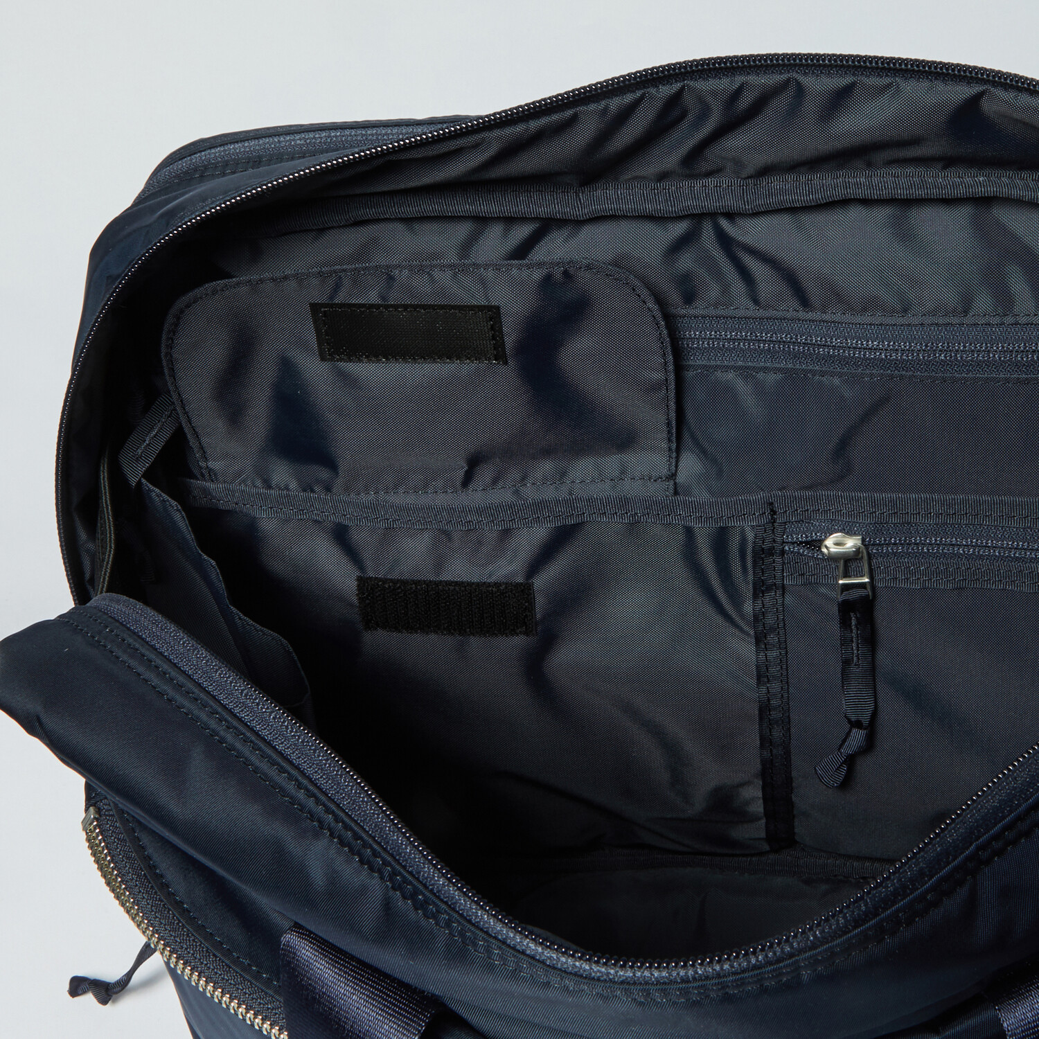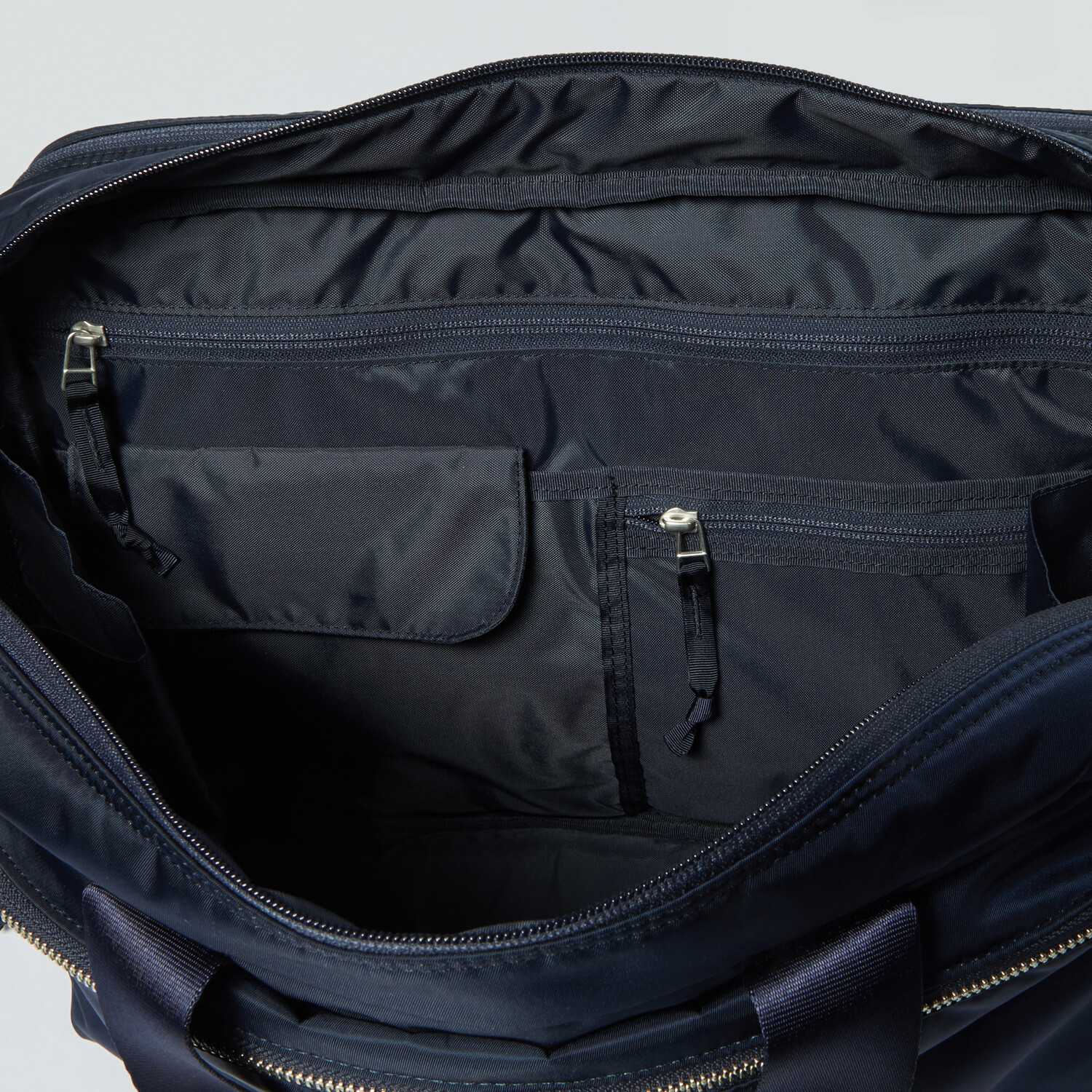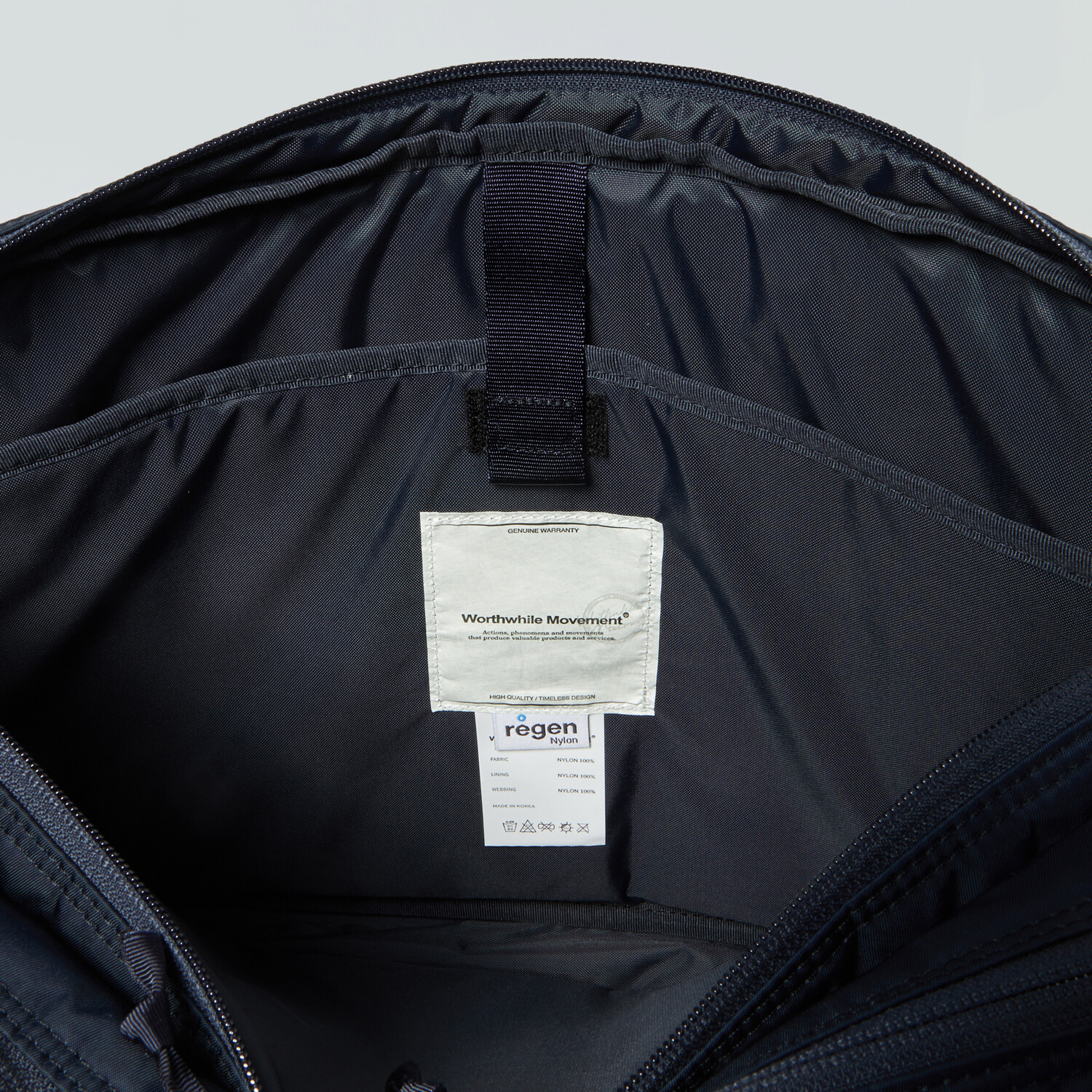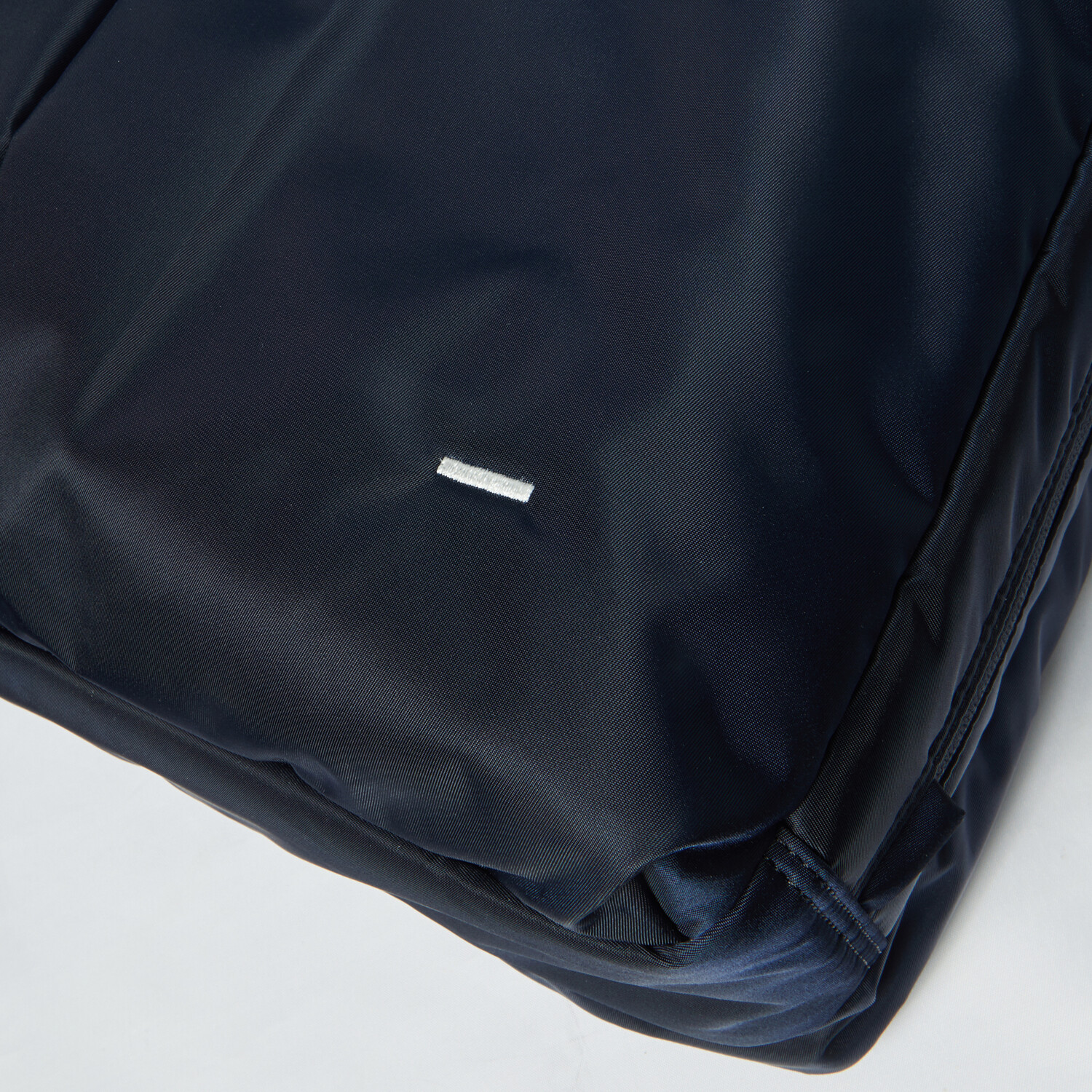 ▶︎ SIZE: 420 x 280 x 150 (mm) ▶︎ WEIGHT: 720g ▶︎ CAPACITY: 17L ▶︎ STORAGE : 17” LAPTOP ▶︎ TYPE: 2Way (Tote bag, Cross bag) ▶︎ COLOR: Navy ▶︎ FABRIC : Nylon 100% (Mipan regen 2L Recycle Nylon) ▶︎ LINING: Nylon100% ▶︎ WEBBING: Nylon100% ▶︎ ZIPPER: YKK® ▶︎ SNAP: YKK® ▶︎ PARTS: Matte black nickel parts ▶︎ ORIGIN: Korea