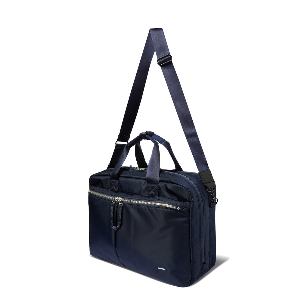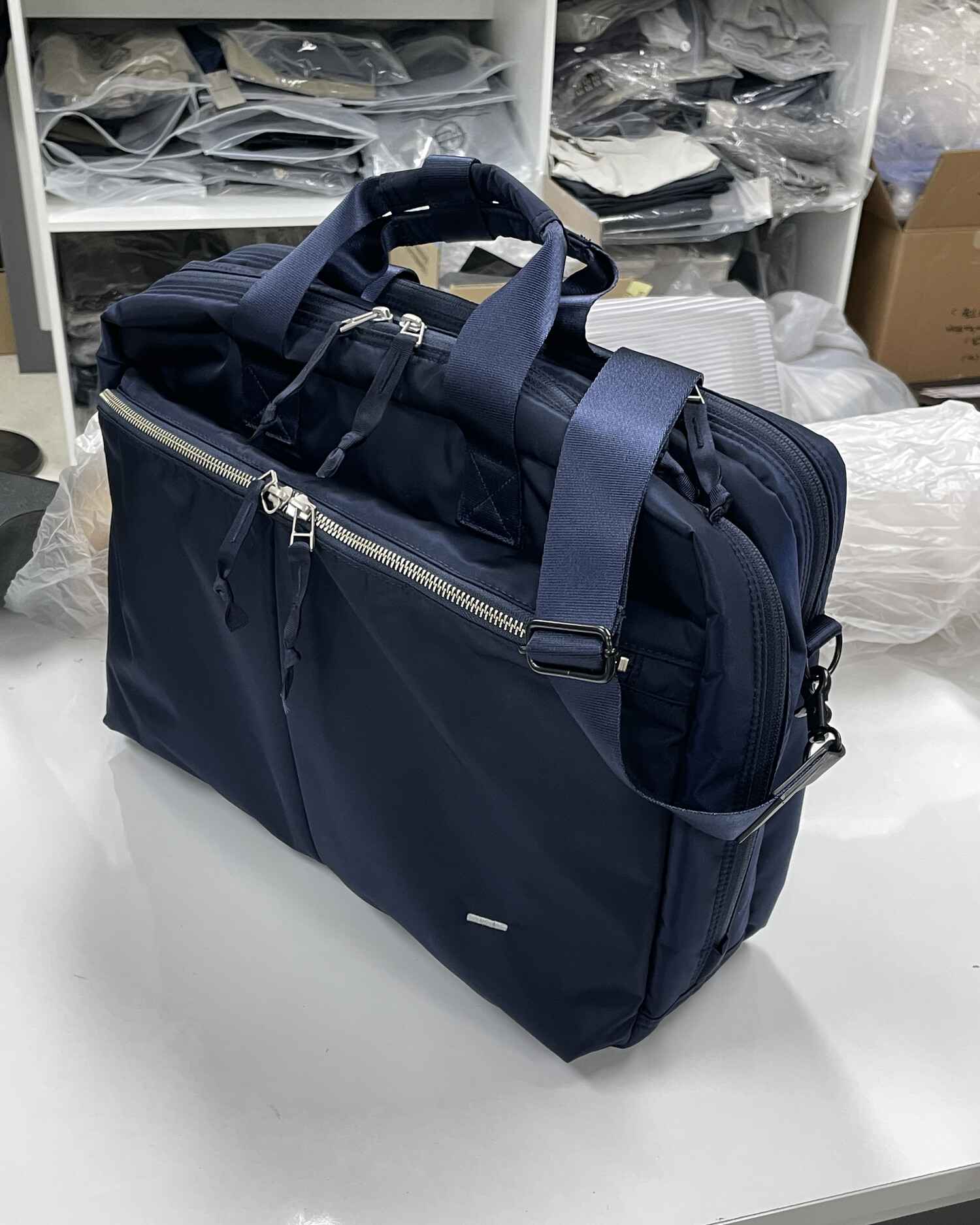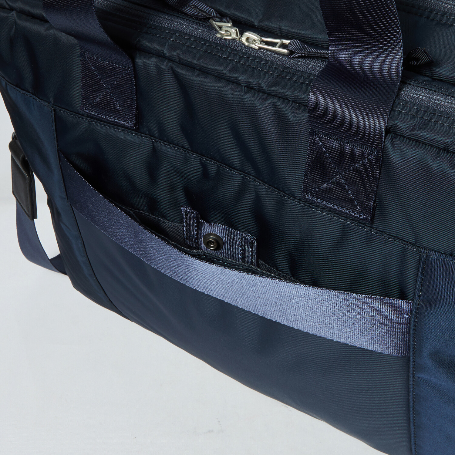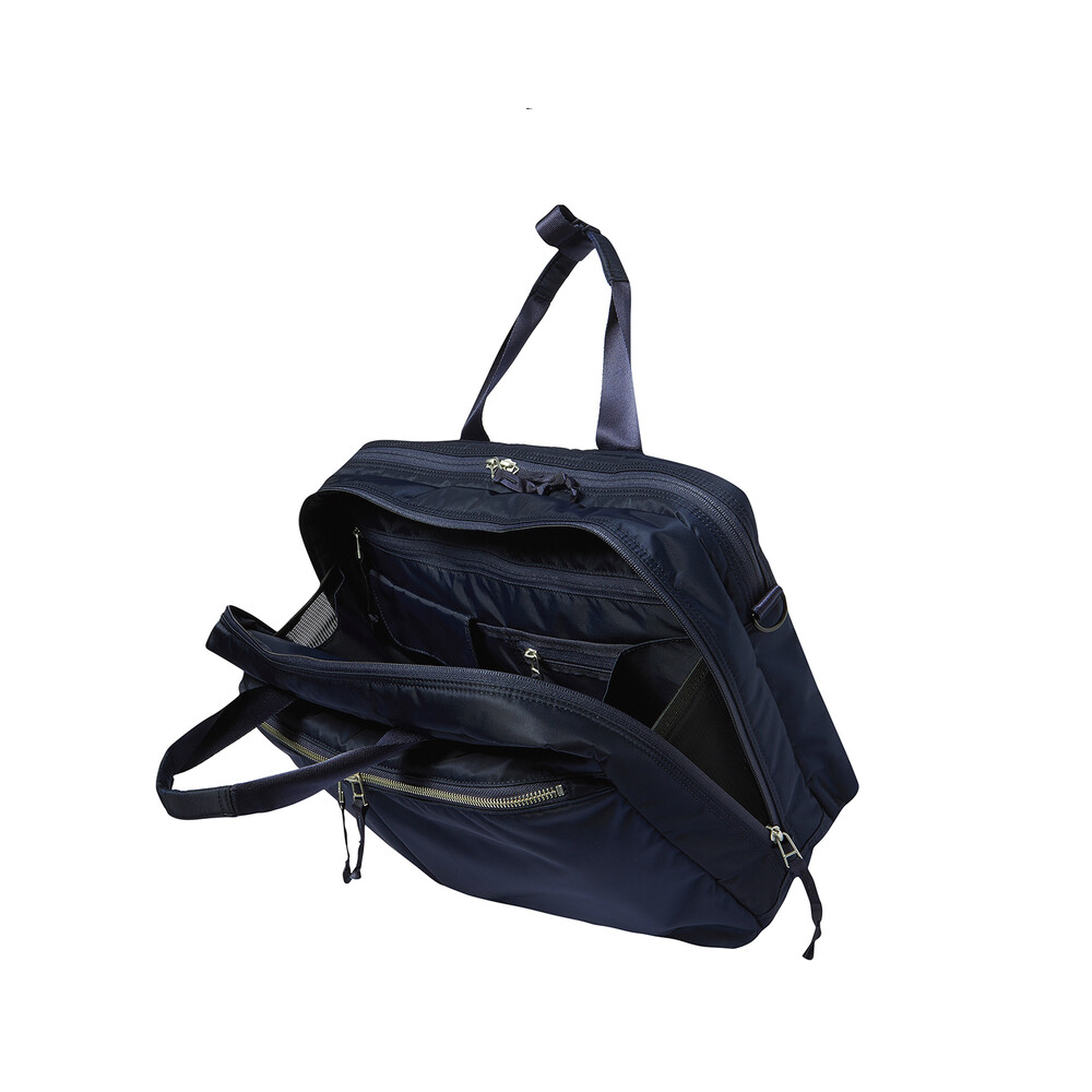 ▶︎ SIZE: 420 x 280 x 150 (mm) ▶︎ WEIGHT: 720g ▶︎ CAPACITY: 17L ▶︎ STORAGE : 17” LAPTOP ▶︎ TYPE: 2Way (Tote bag, Cross bag) ▶︎ COLOR: Navy ▶︎ FABRIC : Nylon 100% (Mipan regen 2L Recycle Nylon) ▶︎ LINING: Nylon100% ▶︎ WEBBING: Nylon100% ▶︎ ZIPPER: YKK® ▶︎ SNAP: YKK® ▶︎ PARTS: Matte black nickel parts ▶︎ ORIGIN: Korea