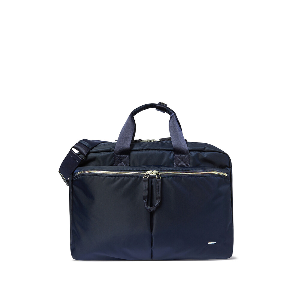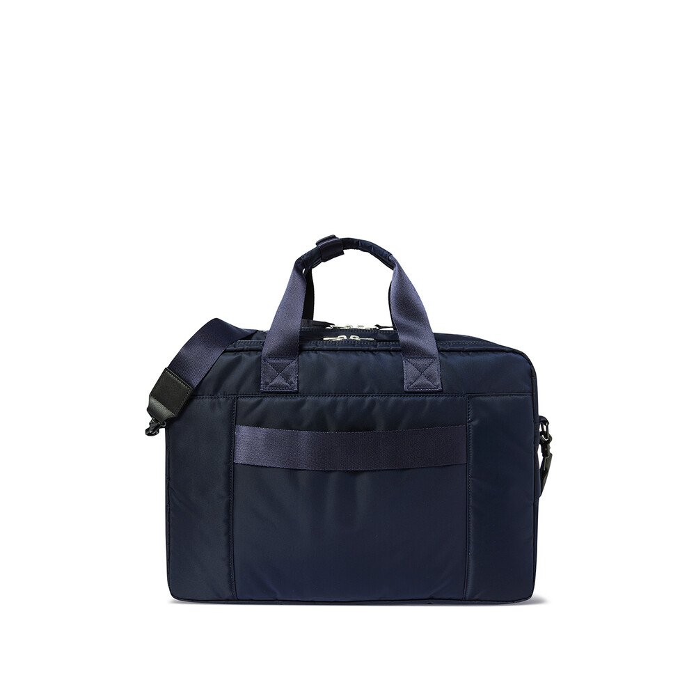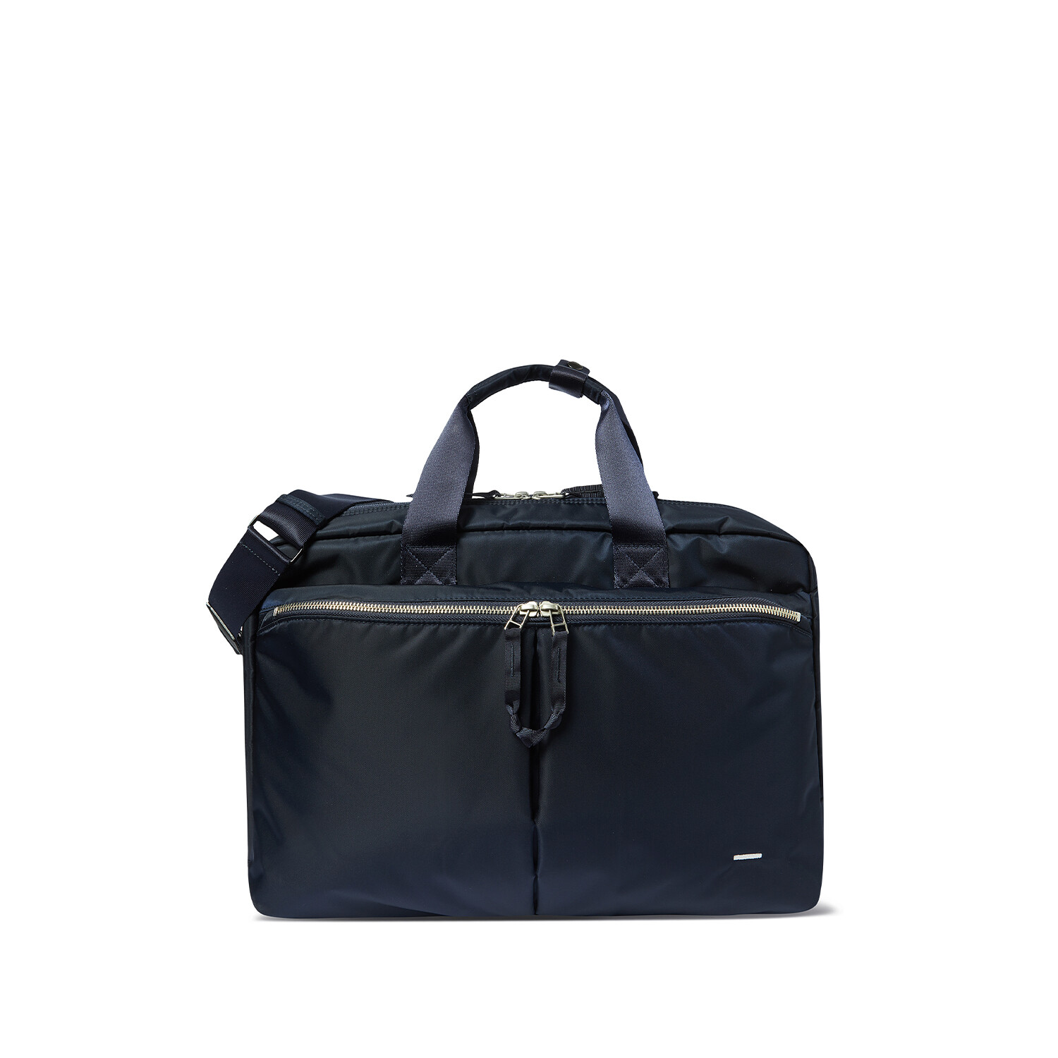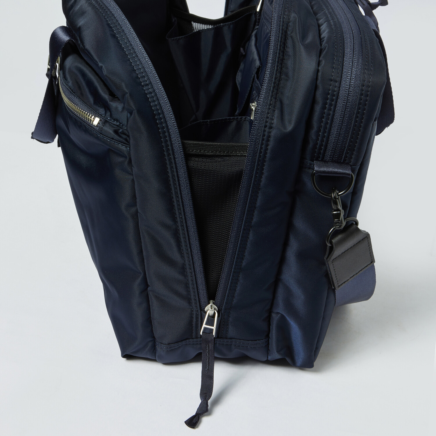 ▶︎ SIZE: 420 x 280 x 150 (mm) ▶︎ WEIGHT: 720g ▶︎ CAPACITY: 17L ▶︎ STORAGE : 17” LAPTOP ▶︎ TYPE: 2Way (Tote bag, Cross bag) ▶︎ COLOR: Navy ▶︎ FABRIC : Nylon 100% (Mipan regen 2L Recycle Nylon) ▶︎ LINING: Nylon100% ▶︎ WEBBING: Nylon100% ▶︎ ZIPPER: YKK® ▶︎ SNAP: YKK® ▶︎ PARTS: Matte black nickel parts ▶︎ ORIGIN: Korea