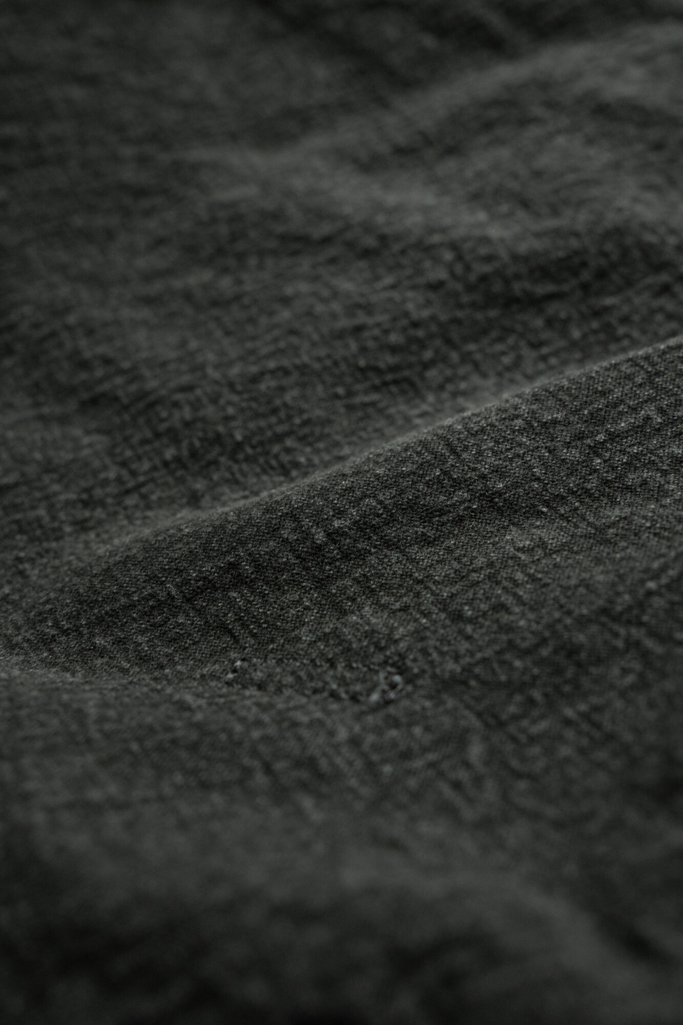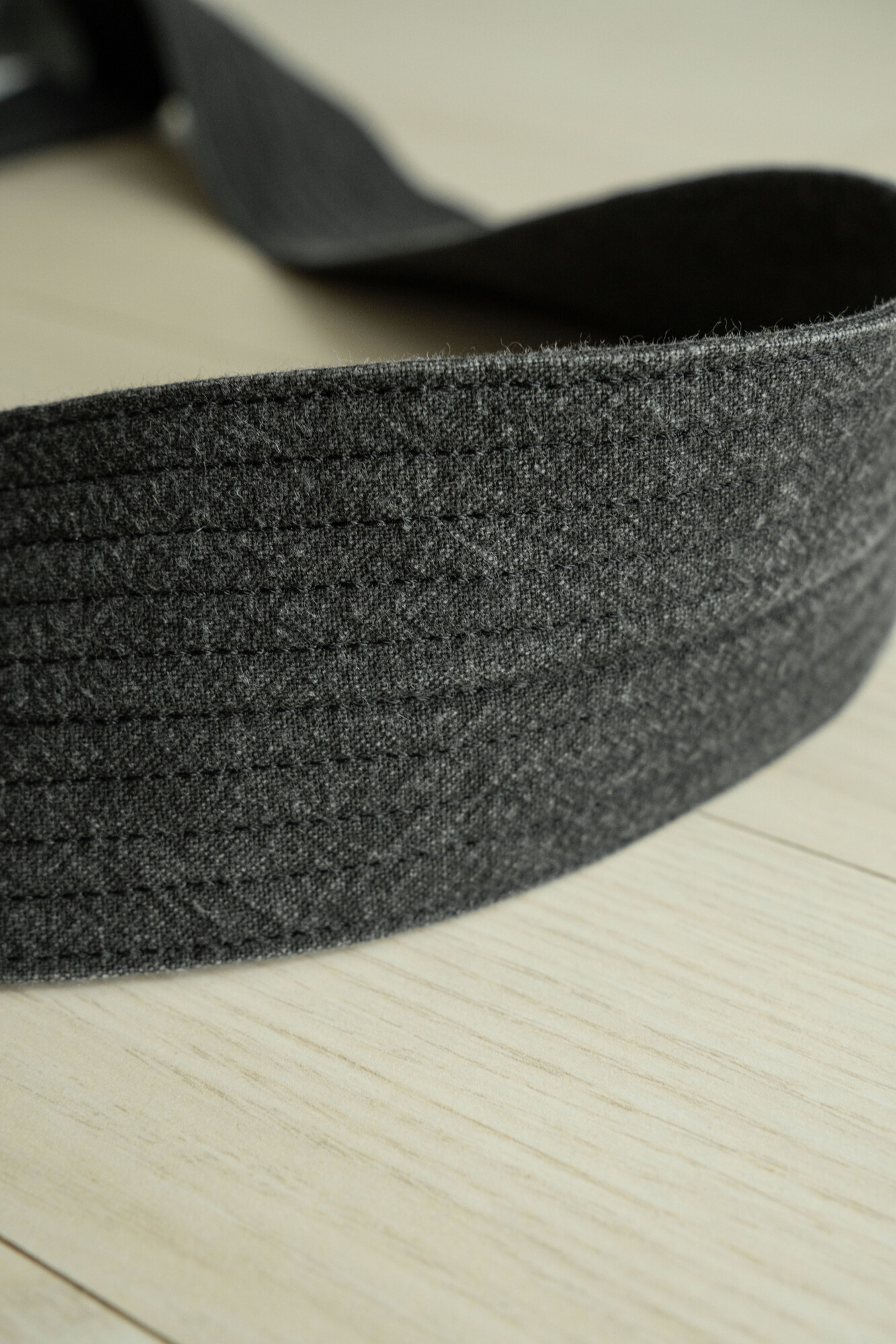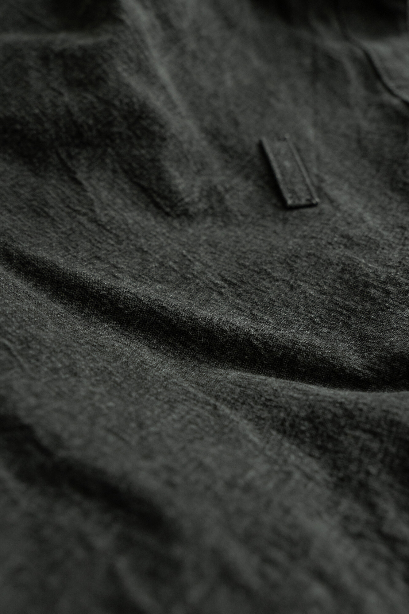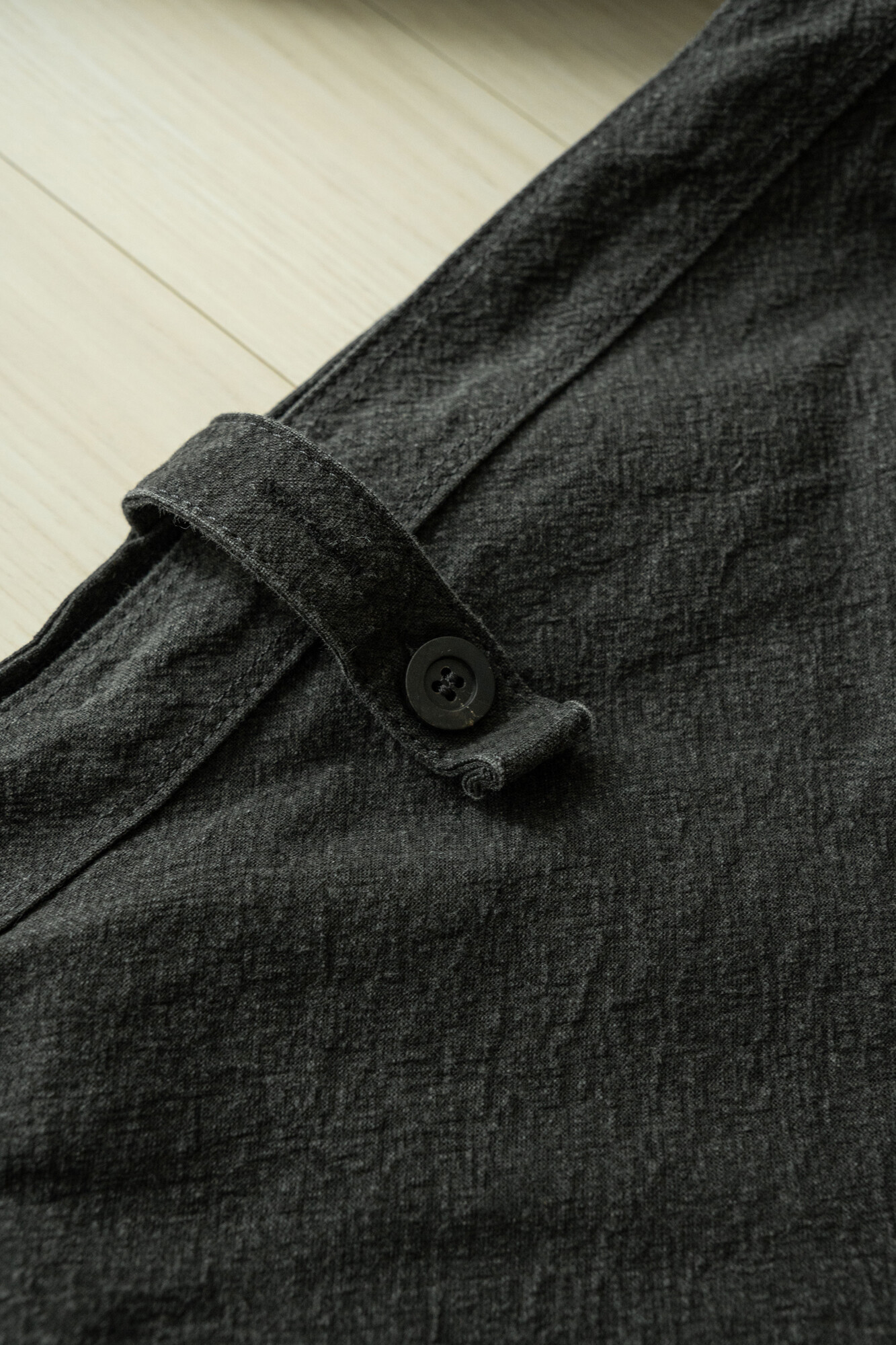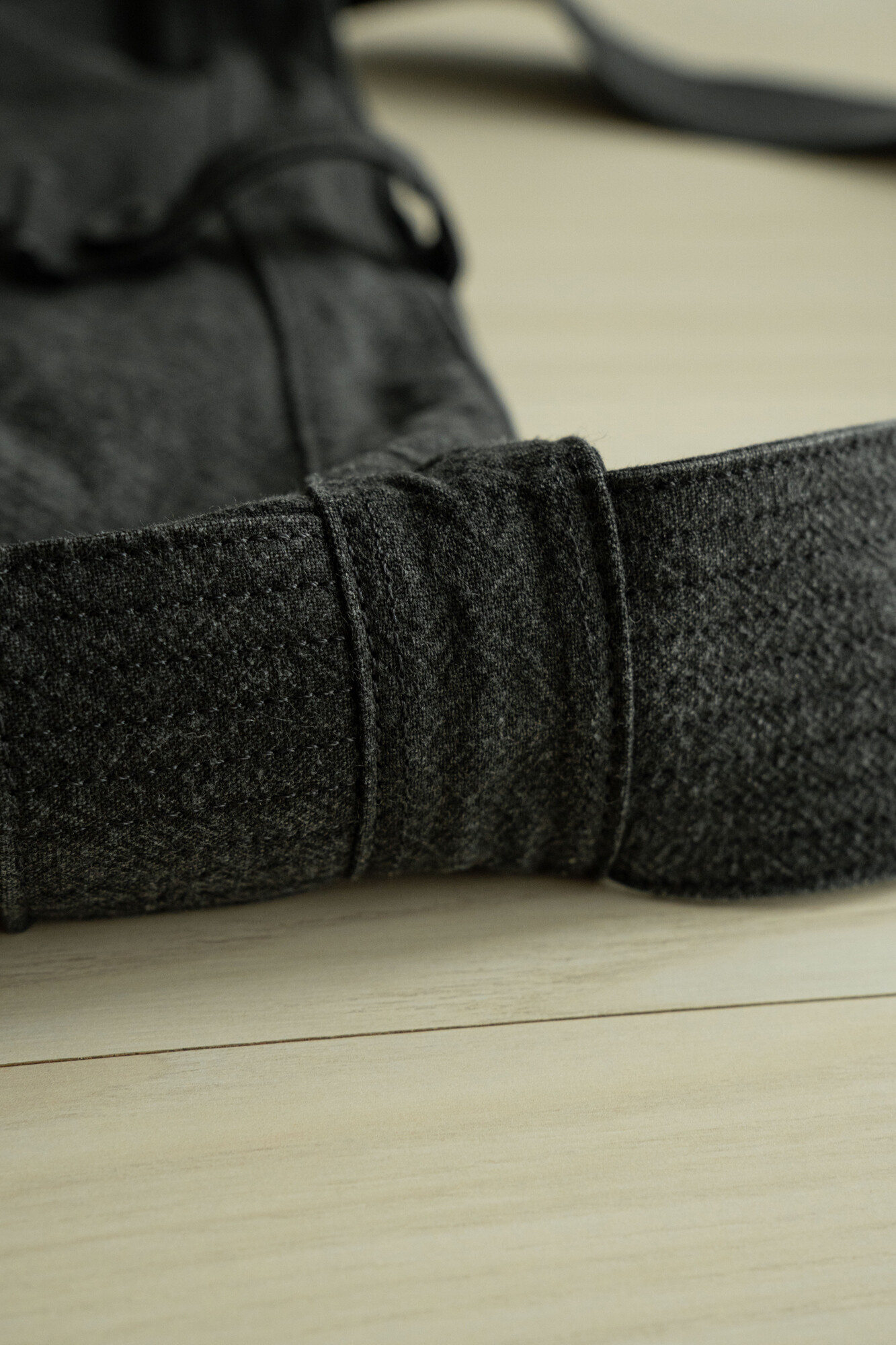 : Organatura 라인에서 소개하는 두번째 제품으로 Oharaya 社 의 면/마 혼용 원단으로 제작했습니다. 특히 [비장탄 숯 염색 (Binchotan dyed)]을 활용한 차콜/그레이 컬러에서는 짙은 먹색 계열의 묵직하고 차분한 톤을 확인하실수 있는데요. 비장탄은 고온 탄화된 참나무의 숯으로 일본 와카야마현이나 규슈 지방에서 주로 나오는 고급 백탄입니다. 매우 높은 온도에서 탄화되어 강도와 밀도가 높고 불순물이 적은게 특징입니다. 이러한 숯을 곱게 분쇄해 염액으로 우려낸 뒤 섬유에 반복적으로 침지 염색한 원단입니다. 매 염색 작업마다 동일한 컬러로 맞추기 어렵고 가먼트 워싱까지 진행되기 때문에 생산 차수와 각 개체별로 외관 상의 차이점이 생겨 하나뿐인 제품이 될 뿐 아니라 사용하면서 자연스러운 에이징의 매력을 느끼실 수 있습니다. 촘촘하게 봉제된 스트랩의 스티치와 천연 소뿔단추 잠금 디테일, 그리고 부드러운 감촉의 코튼 안감까지 전반적인 구성과 분위기를 통일시켰습니다. 오가내추라 라인의 특성에 맞게 간결한 실루엣과 심플한 디자인, 깊은 색감을 느끼실 수있습니다. 천연 염색과 원단의 슴슴한 멋을 경험해주시기 바랍니다.