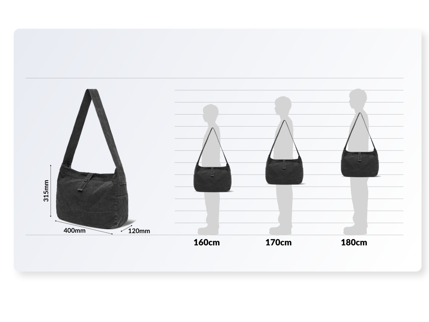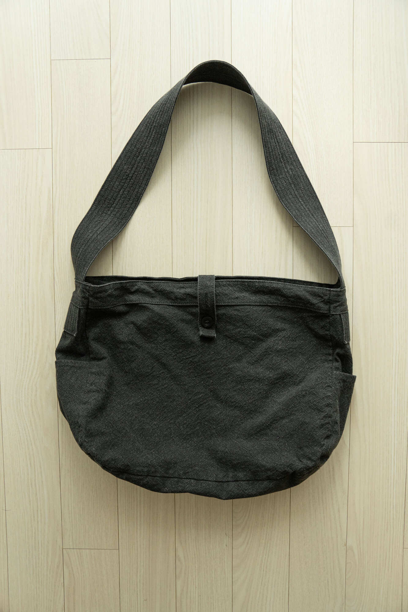 • 일본 Oharaya 사의 라미, 리넨 그리고 코튼 혼방 캔버스 패브릭 • 일본 전통 천연 염색기법인 비장탄 숯(고급 백탄) 염색 원단 • 19세기 후반 뉴스보이 백을 모티브로 디자인 • 표면의 자잘한 결과 빈티지하고 소프트한 터치가 장점인 천연섬유 소재 • 넉넉한 사이즈의 크로스 바디 백 스타일 • 일체형 스트랩으로 숄더 백으로도 연출 가능 • 넓은 스트랩 디자인과 촘촘한 스티치 연출 • 완성 상태로 워싱을 진행하여 빈티지한 분위기를 극대화 • 4계절 내내 활용하기 좋은 가벼운 무게 • 1개의 이너 포켓