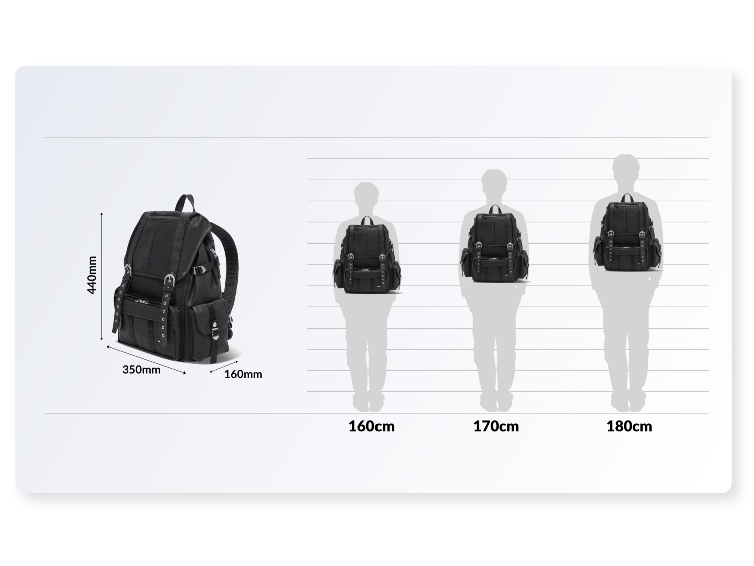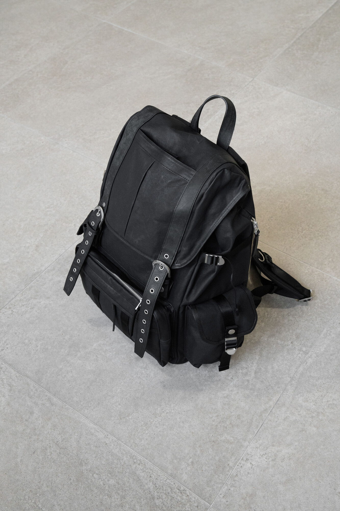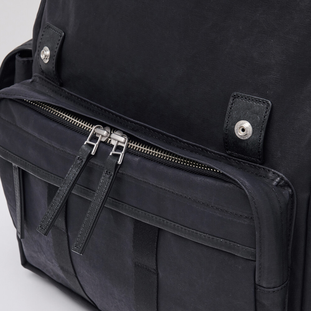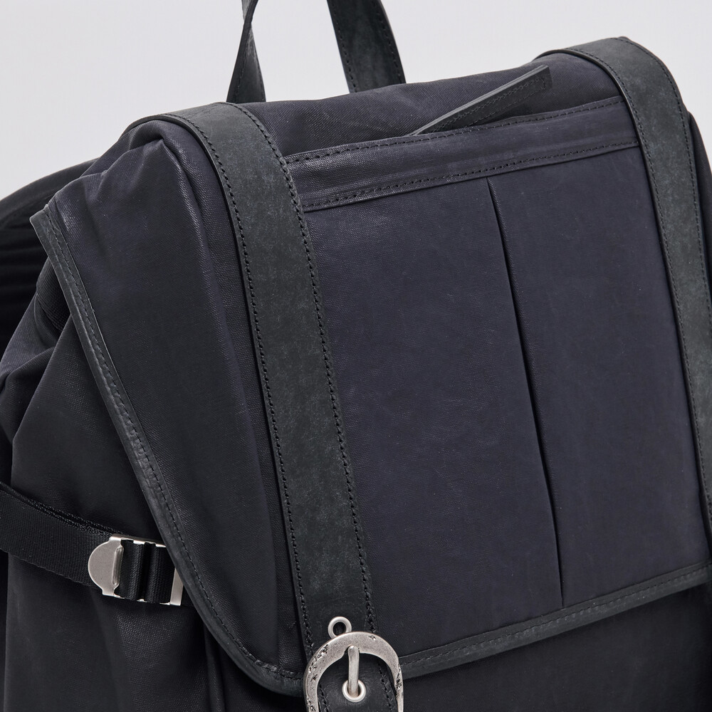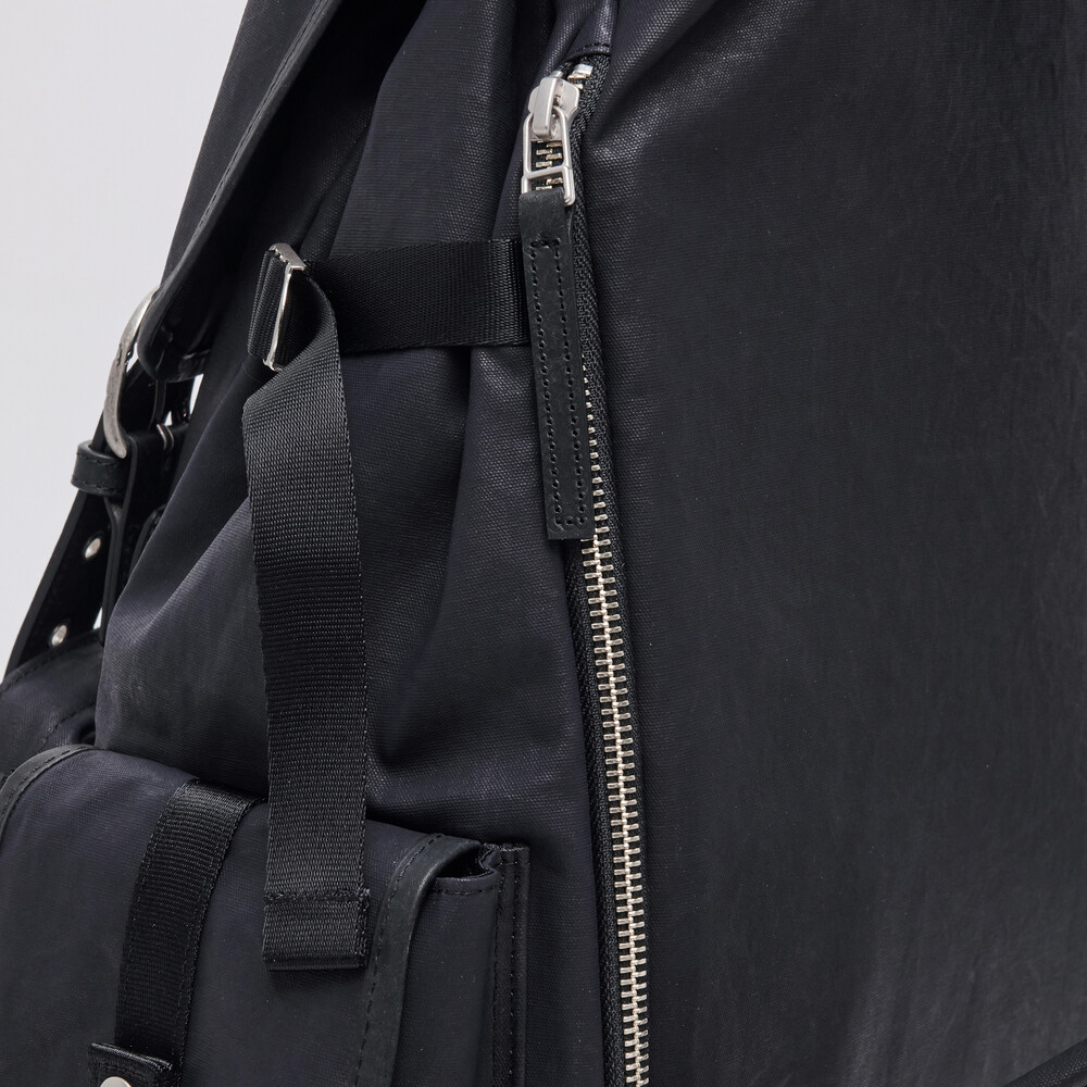▶︎ SIZE : 440 x 350 x 160(mm) ▶︎ WEIGHT : 1,100g ▶︎ CAPACITY : 24L ▶︎ STORAGE : 17” LAPTOP ▶︎ TYPE : 1Way (백팩) ▶︎ COLOR : Black ▶︎ FABRIC 1 : Cotton 100% (PU Coated 10’s canvas cotton fabric) ▶︎ FABRIC 2 : Leather 100% (Vegetable-Tanned Cowhide leather -From ITALY) ▶︎ LINING : Nylon 100% ▶︎ WEBBING : Nylon 100% ▶︎ ZIPPER : YKK® ▶︎ PARTS : Woojin plastic® & POG Service ▶︎ ORIGIN : Korea