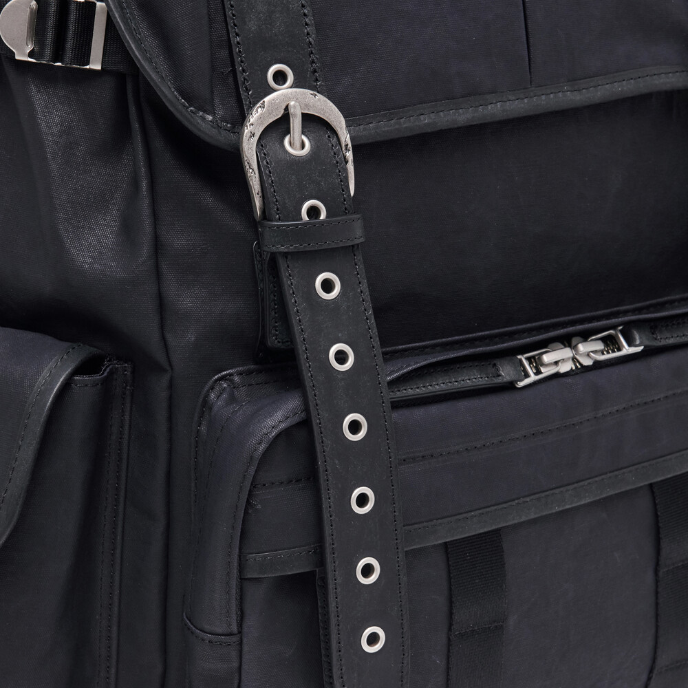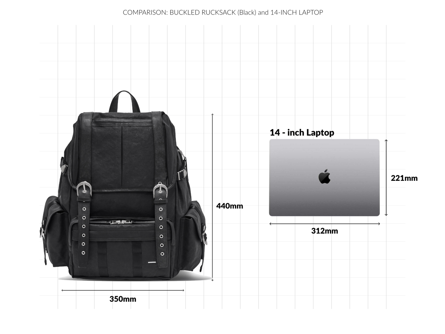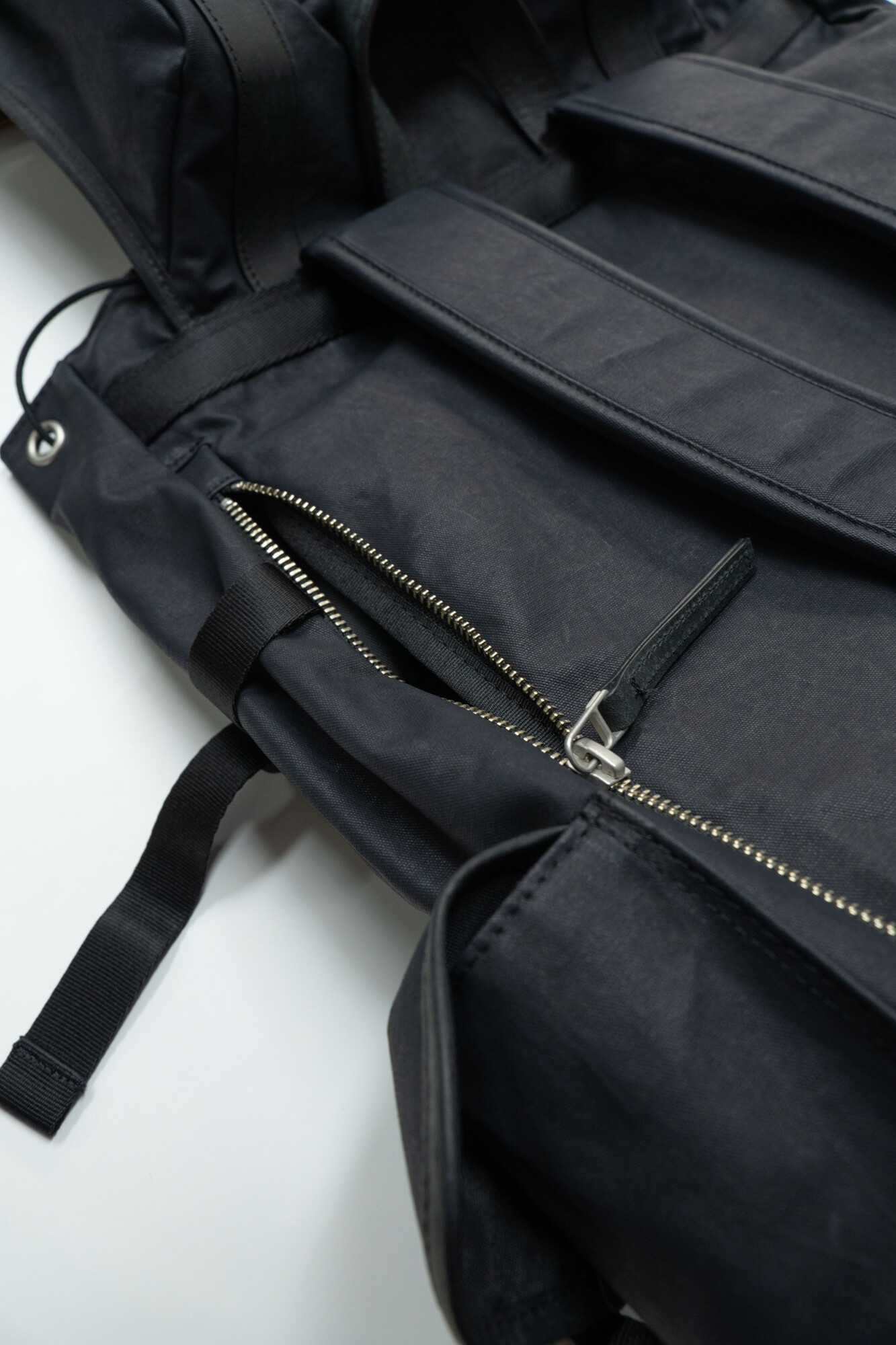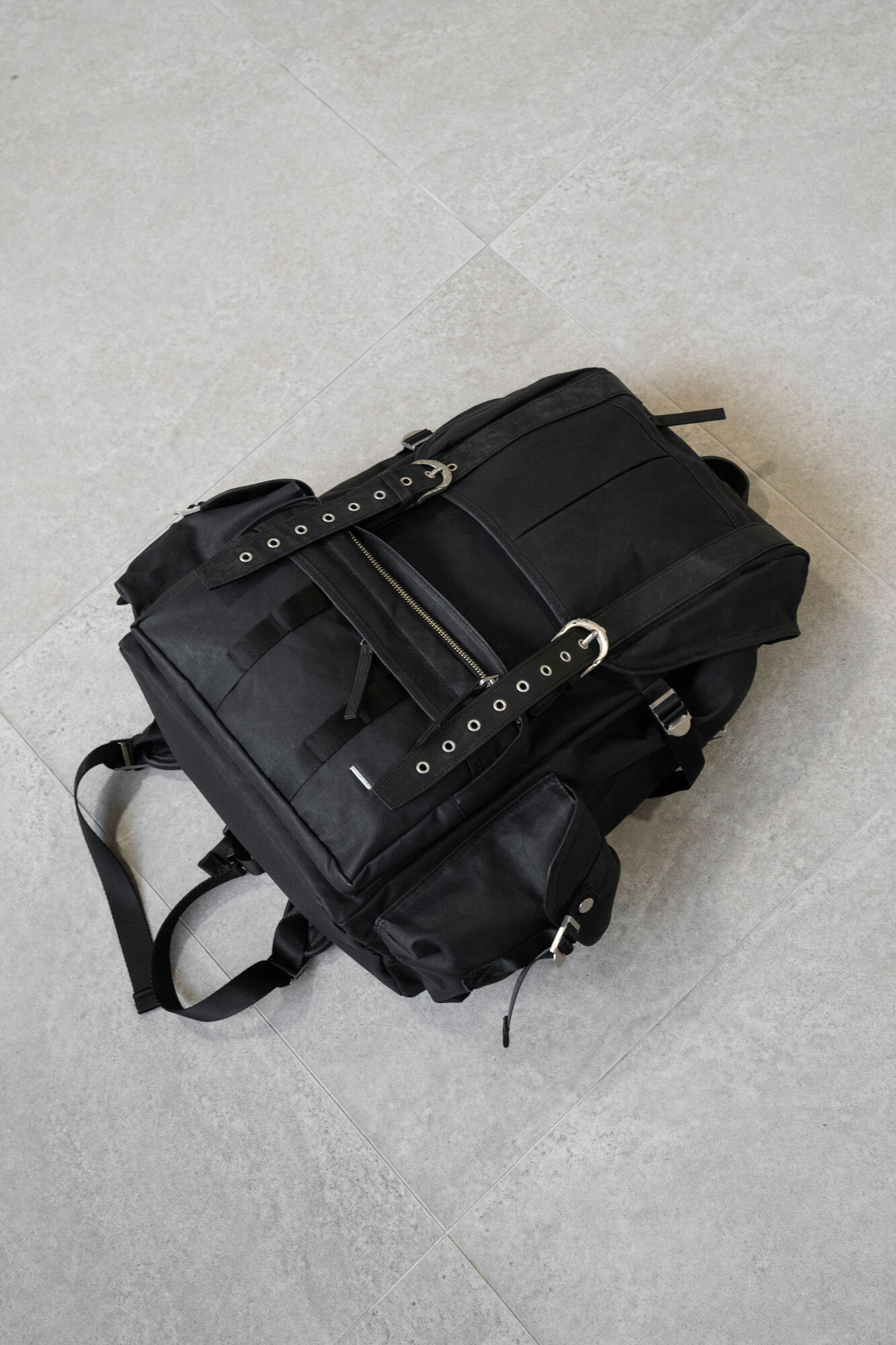 ▶︎ SIZE : 440 x 350 x 160(mm) ▶︎ WEIGHT : 1,100g ▶︎ CAPACITY : 24L ▶︎ STORAGE : 17” LAPTOP ▶︎ TYPE : 1Way (백팩) ▶︎ COLOR : Black ▶︎ FABRIC 1 : Cotton 100% (PU Coated 10’s canvas cotton fabric) ▶︎ FABRIC 2 : Leather 100% (Vegetable-Tanned Cowhide leather -From ITALY) ▶︎ LINING : Nylon 100% ▶︎ WEBBING : Nylon 100% ▶︎ ZIPPER : YKK® ▶︎ PARTS : Woojin plastic® & POG Service ▶︎ ORIGIN : Korea