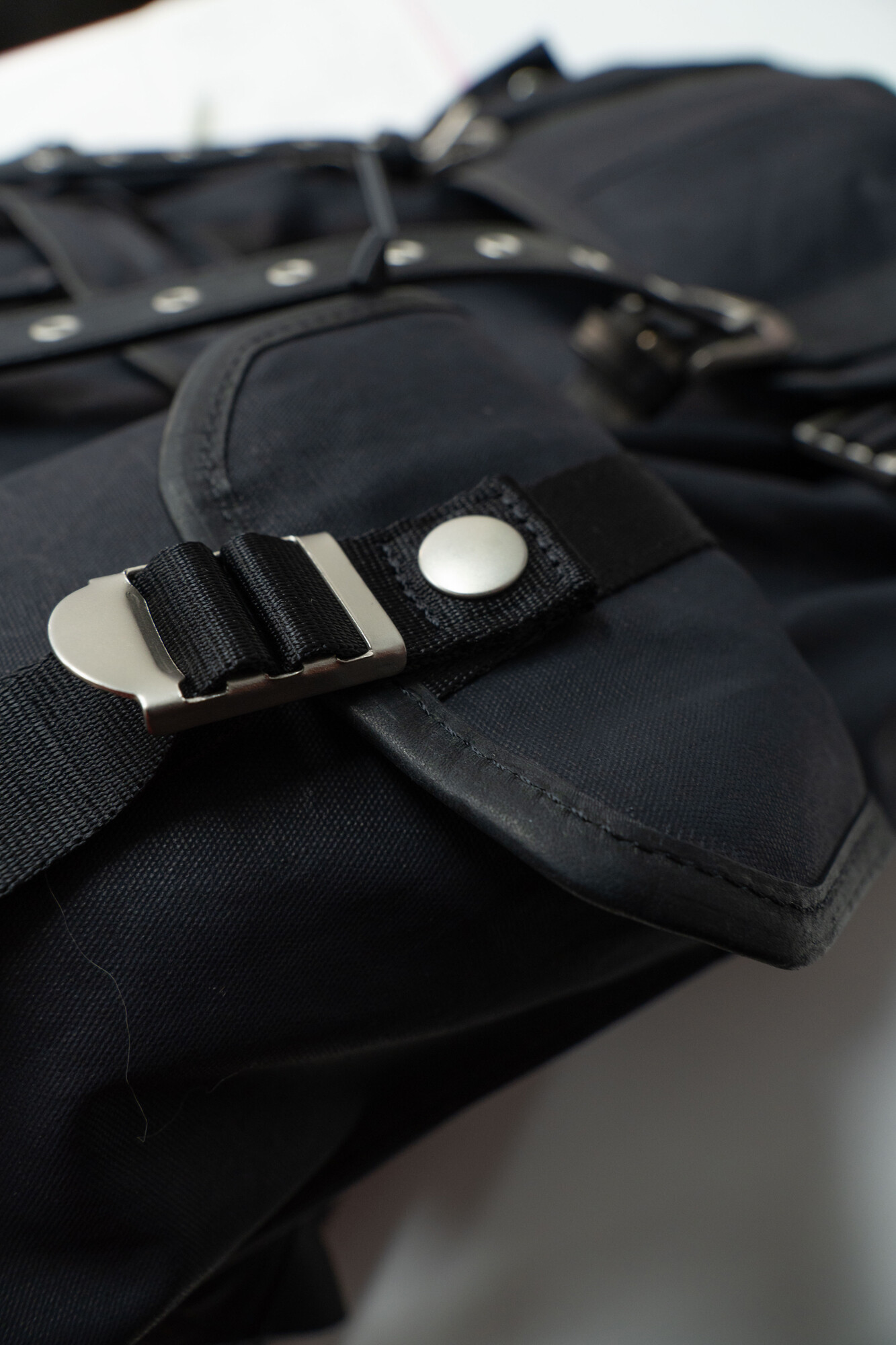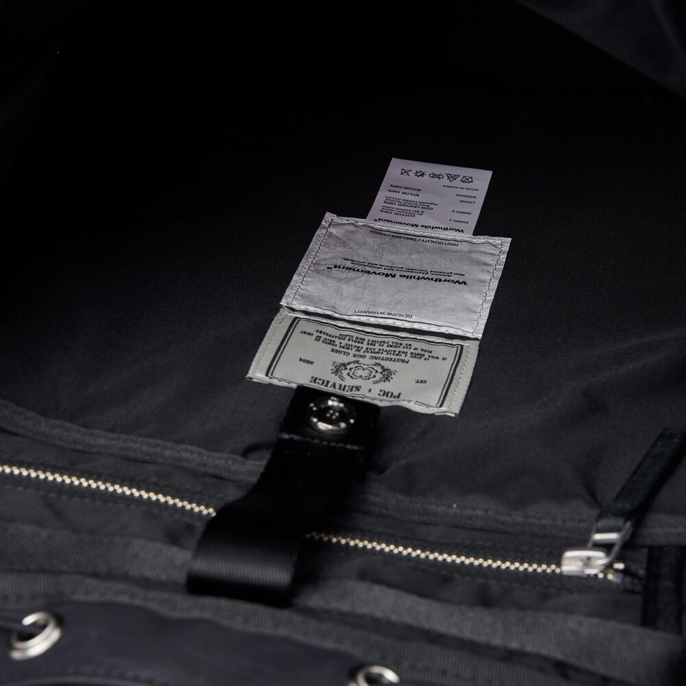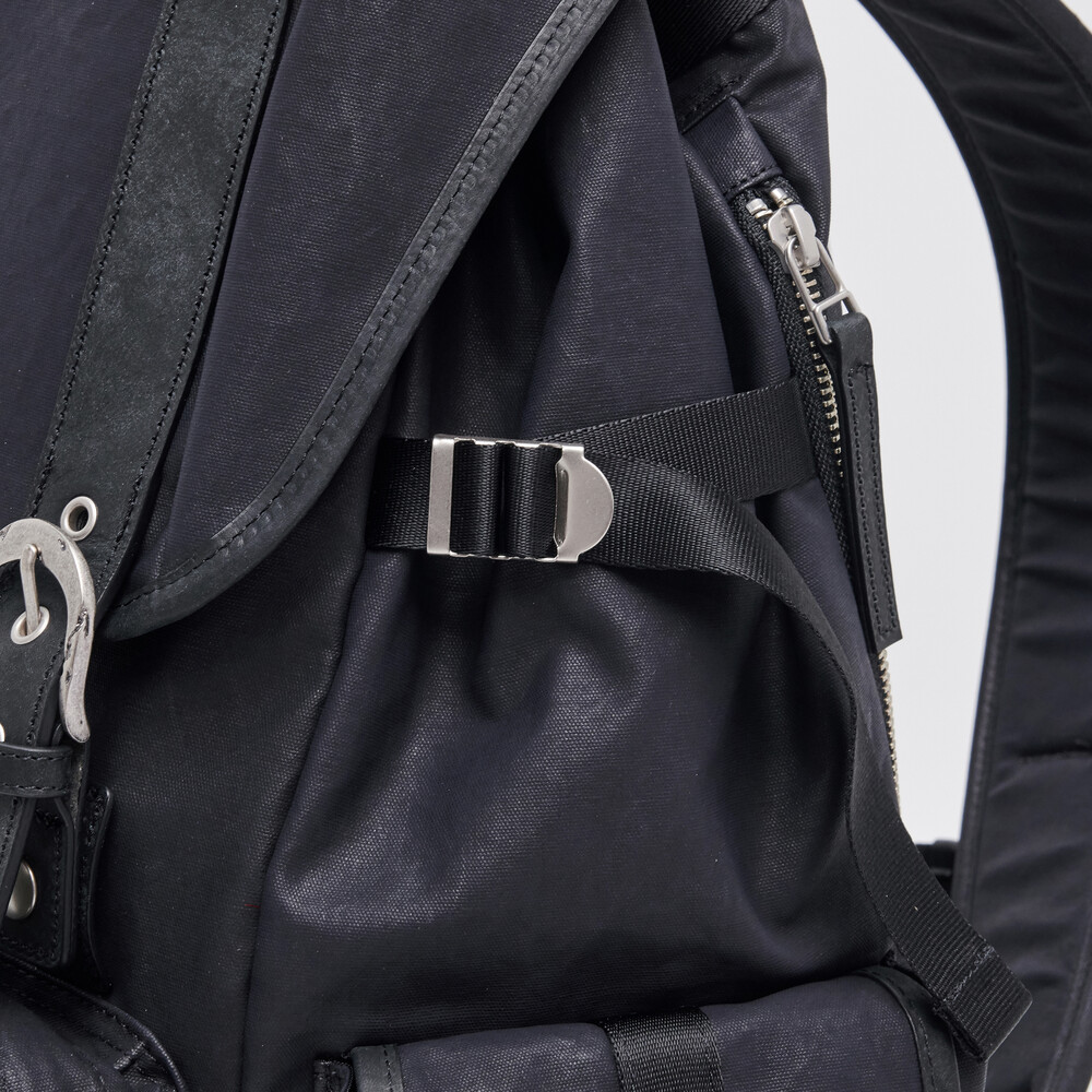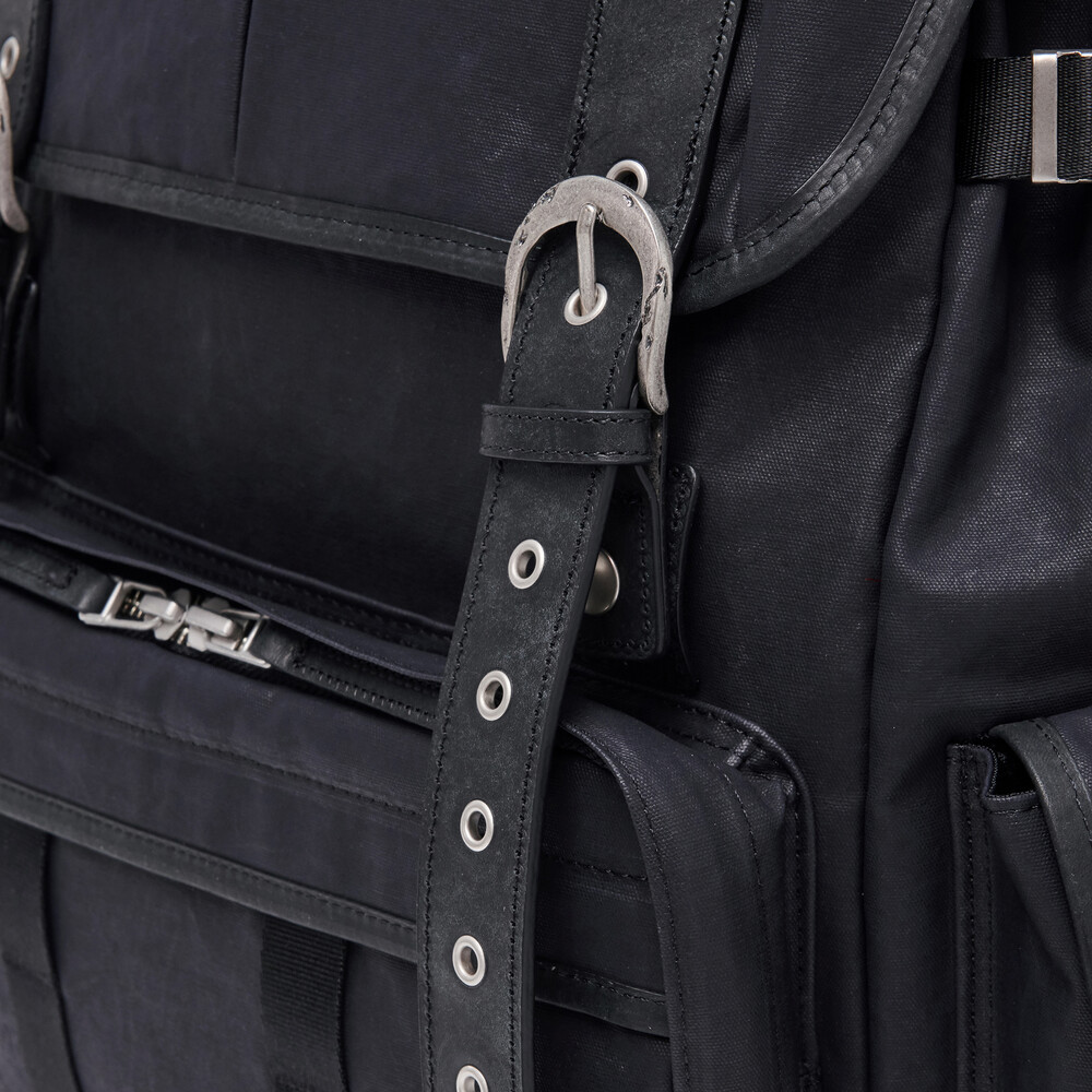 버클드 럭색은 Worthwhile Movement의 밀트레인 럭색을 기반으로, POG Service와의 협업을 통해 재탄생한 빈티지 무드의 럭색입니다. POG Service가 직접 제작한 데미지 가공된 빈티지 버클 파츠가 적용되어 시각적으로 큰 특징이 되며, 오래된 장비의 거친 감도와 데미지드 질감을 현대적으로 해석해 담아냈습니다. 주 소재는 10수 캔버스 코튼과 이탈리아산 베지터블 태닝 카우하이드입니다. 10수의 캔버스 코튼은 탄탄하면서도 바이오 워싱과 폼 카본 워싱 공정을 거쳐 유연하고 부드러운 촉감을 지녔고, 옅은 광택감이 매력적입니다. 고온 카본 워싱은 은은한 톤 변화와 입체감을, 바이오 워싱은 천연 효소 처리로 부드러운 표면을 완성합니다. 또한 가죽은 시간이 지날수록 짙은 색감과 깊은 윤기를 더하며 에이징의 매력을 드러냅니다. 특히 가죽에는 구슬 스크래치(Bead Scratch) 가공을 더해, 마치 오랜 시간 손끝에 닳은 듯한 리얼 빈티지 질감을 표현했습니다. PU 코팅과 발수 코팅으로 생활 발수가 가능하며, 내구성과 형태 안정성을 위해 적절한 보강재를 삽입했습니다. 사용된 하드웨어는 POG 서비스 자체 버클과 YKK Fastener & Snap으로 구성되어, 완성도를 높였습니다.
