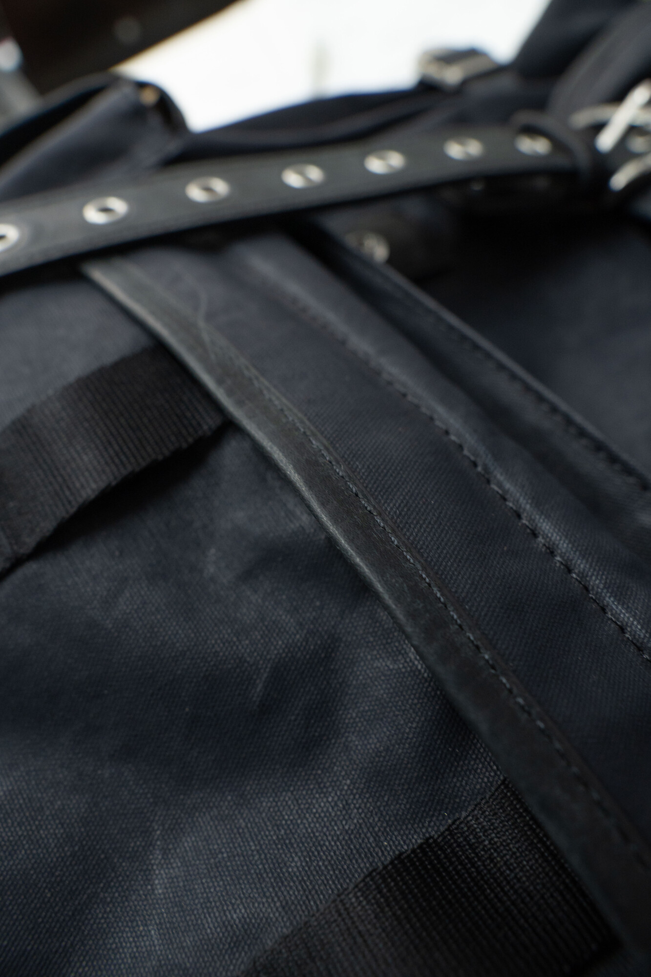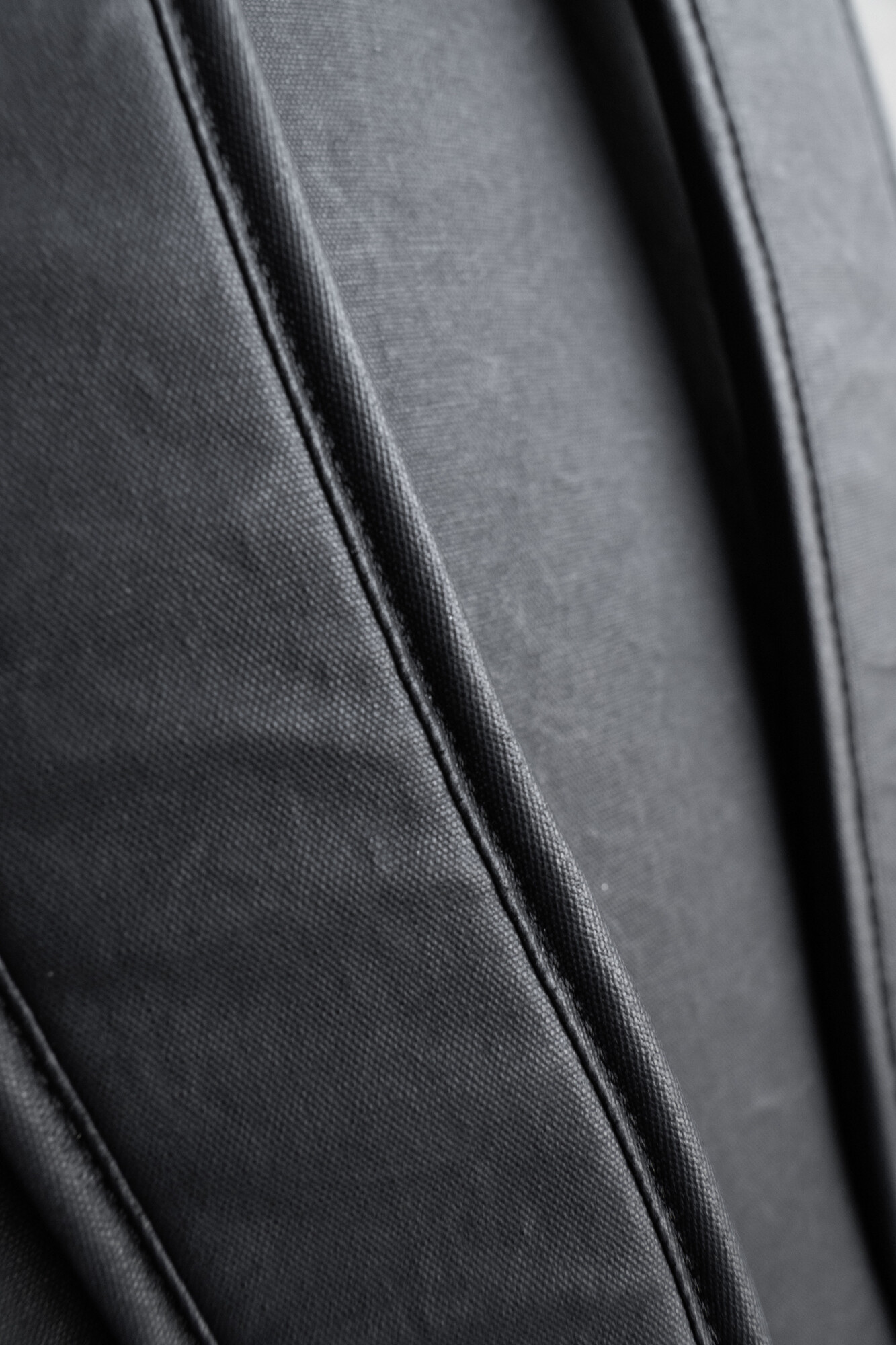 • Vegetable-Tanned Cowhide leather (From ITALY) • Bead-Scratch Finish • PU Coated 10’s canvas cotton fabric • Form carbon washed • Bio washed • Pog service metal parts • YKK Fastener & snap