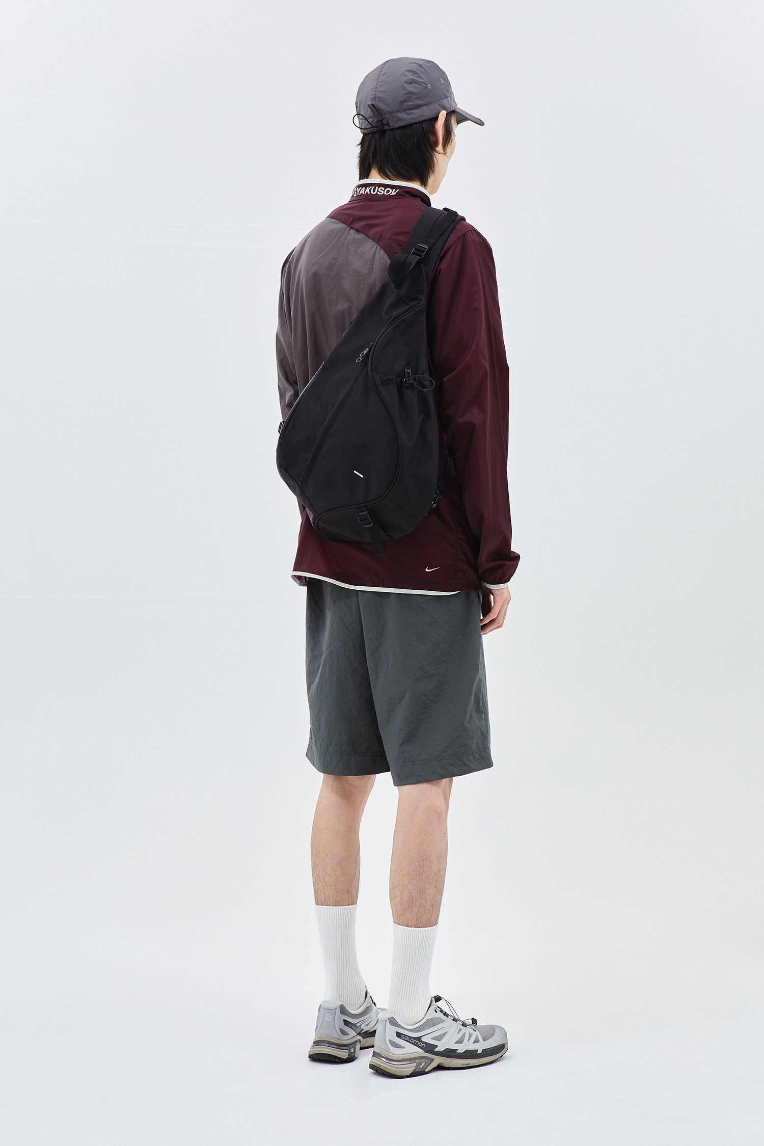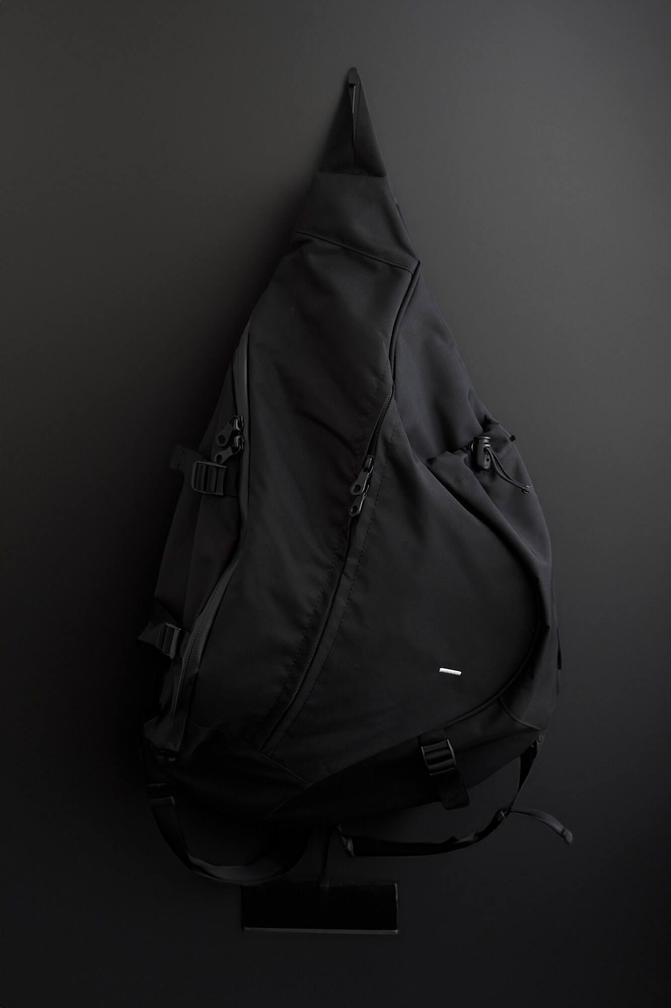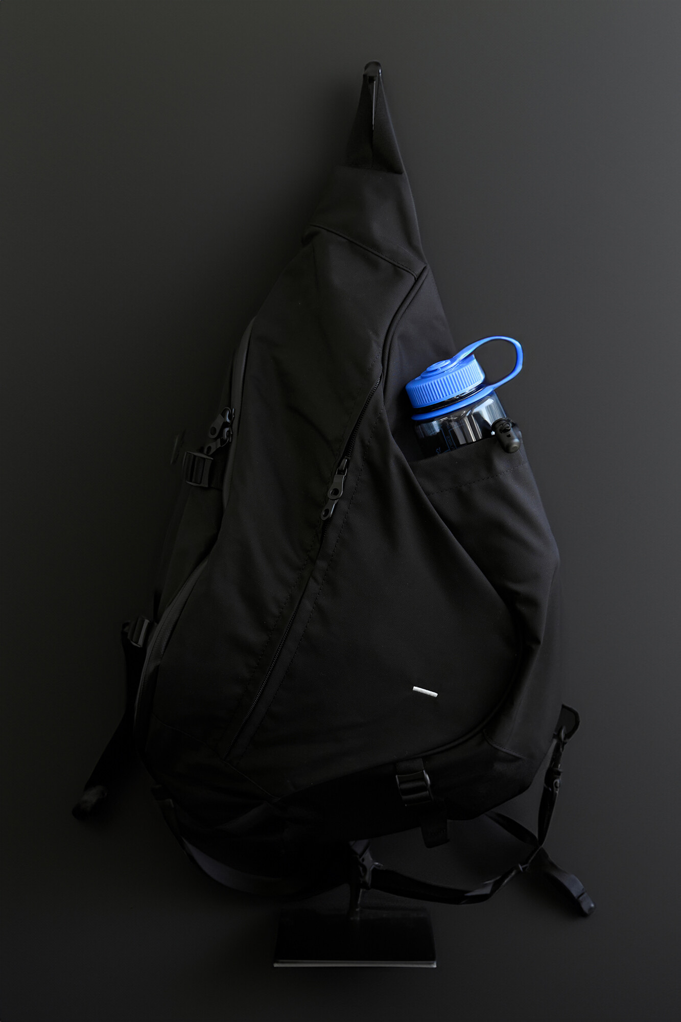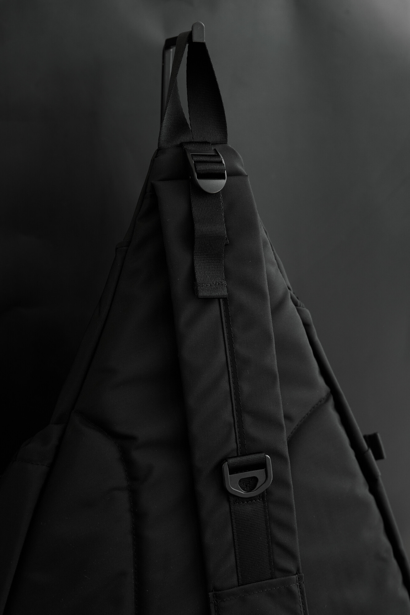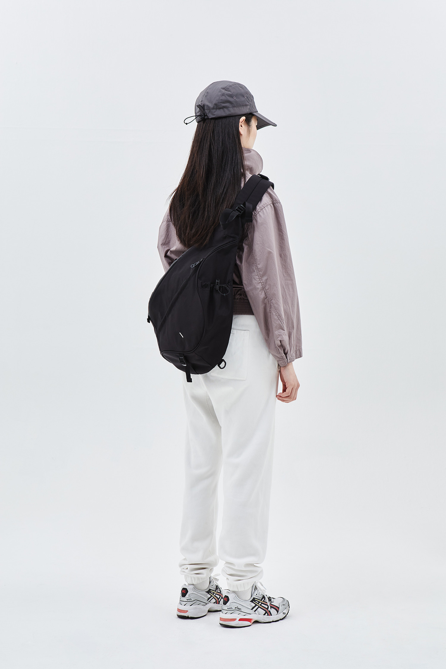 PEARS BAG은 크로스백 또는 숄더백의 형태로 2way 피팅이 가능한 슬링백입니다. 곡선형의 입체적인 패턴이 적용된 PEARS BAG에는 파이핑 처리한 특수자재가 들어가 필요한 부분의 형태를 유지해줍니다. 사이드에 위치한 2개의 비죠를 활용해 상황에 따라 메인 공간의 확장과 축소가 가능합니다. 반대편에는 물통 등을 넣을 수 있는 포켓이 있으며 YKK社 의 스토퍼를 사용해 쉽게 조이고 고정이 가능합니다. 탈부착이 가능한 웨빙 스트랩과 버클, 홀더등을 통해 T웨이 피팅 연출이 가능합니다. 내부에는 아이패드나 11인치 랩탑의 수납이 가능한 별도의 파티션이 존재합니다. 메인 스트랩의 상단 부분에는 가방을 쉽게 걸어둘 수 있도록 U자형의 웨빙고리를 만들었습니다. 몸판과 스트랩을 연결시켜주는 웨빙은 비죠를 활용해 조일 수 있으며 이를 통해 가방을 등에 더욱 밀착시켜 편안한 피팅감을 제공합니다. 스트랩에 부착된 D링에는 에어팟이나 각종 악세서리를 부착할 수 있습니다. D링 밑으로는 교통카드등을 쉽게 꺼낼 수 있는 카드슬롯이 있습니다.