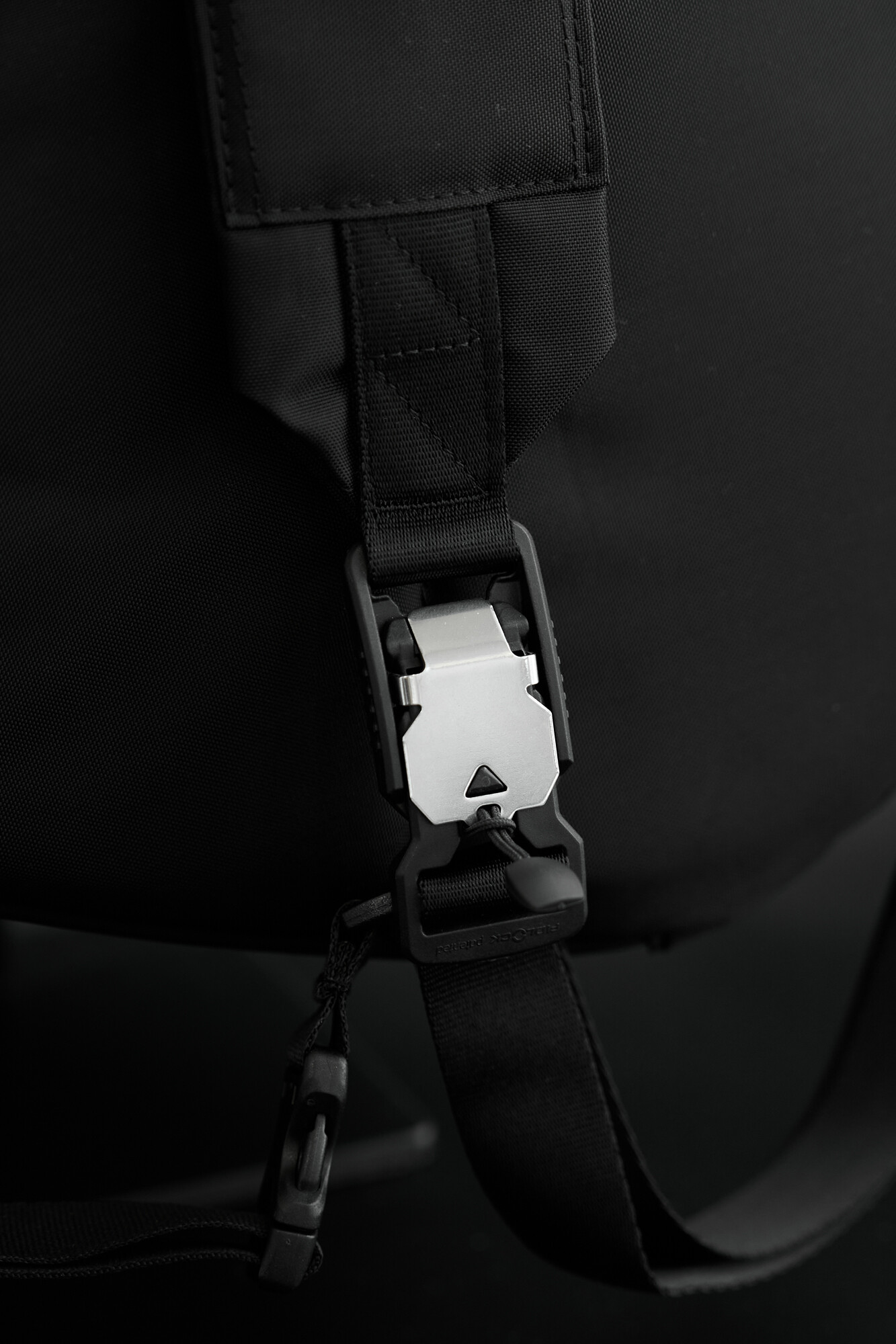 가방에 최적화된 YKK社 의 RC PU Chain 지퍼와 RC Chain 지퍼를 사용했습니다. 각 부분에 적합한 플라스틱 파츠들을 선별하여 YKK社 와 세계 버클 점유 1위 기업인 Wj 플라스틱의 파츠들을 활용했습니다. 메인 스트랩의 연결 버클은 독일의 FIDLOCK社 의 마그네틱 V버클을 사용했습니다. 이 버클은 굉장히 유연하게 작동하며 풀러를 이용하여 쉽게 핸들링 가능합니다. 또한 극강의 내구성을 자랑하며 70kg의 하중을 견딜정도로 강한 하드웨어를 갖고 있습니다. 가방에 사용된 원단의 경우, INVISTA社 의 정품 CORDURA원단(Nylon 100%)을 사용해 제작했습니다. 가방 내부에는 CORDURA 정품 라벨이 부착되어 있으며 상품과 함께 택이 동봉됩니다. 코듀라 원단은 강한 내구성과 기능성으로 유명하며 군용품과 캠핑용품 등에 사용될 뿐 아니라 각종 아웃도어 의류 및 잡화에 활용됩니다. 면원단에 비해 약 10배, 폴리에스테르 원단에 비해 약 3배, 일반 나일론 원단에 비해서도 약 2배 이상 강한 내구성을 갖고 있습니다.이외에도 코듀라 원단은 흡습속건성(건조시간) 또한 순면의 2.5배 빠른것으로 알려져 있으며 오염과 변색에도 강합니다. 열에도 쉽게 녹아내리지 않으며 잘 찢기지 않습니다.