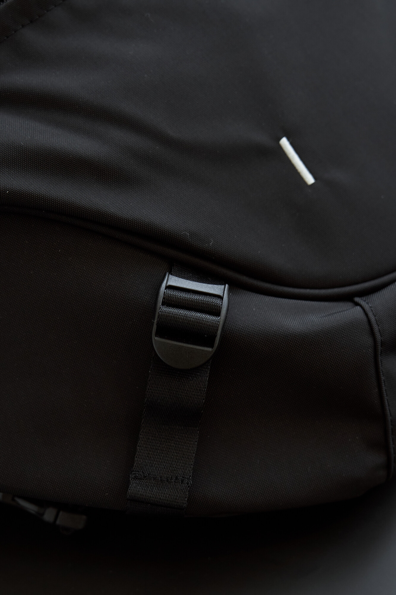 - SIZE : 320 x 520 x 150 (mm) - WEIGHT : 560g - CAPACITY : 14L - STORAGE : 13" LAPTOP - TYPE : 2Way - COLOR : Black - FABRIC : Nylon 100% (Cordura® Nylon 420d) 발수가공 - LINING : Nylon 100% - WEBBING : Nylon 100% - ZIPPER : YKK® RC Chain - PLASTIC : FIDLOCK® MAGNETIC V-BUCKLE - ORIGIN : Korea
