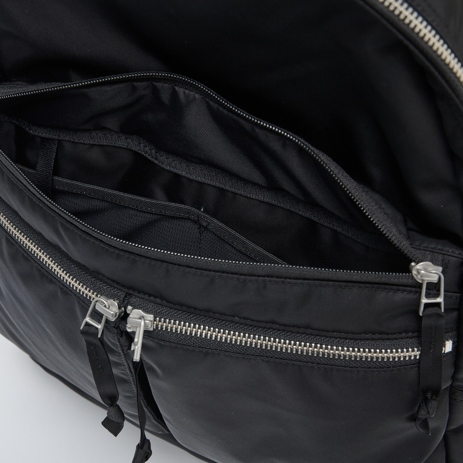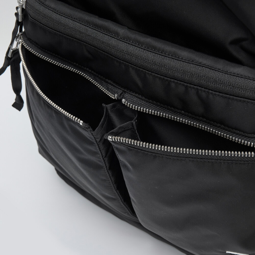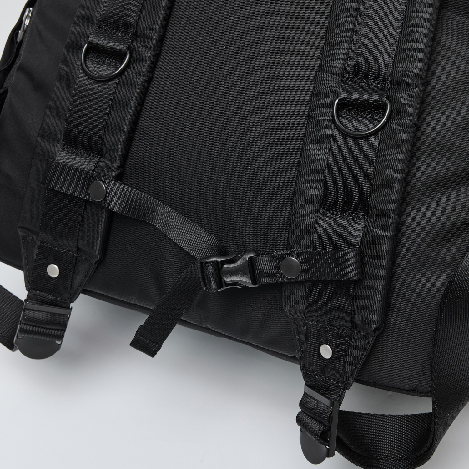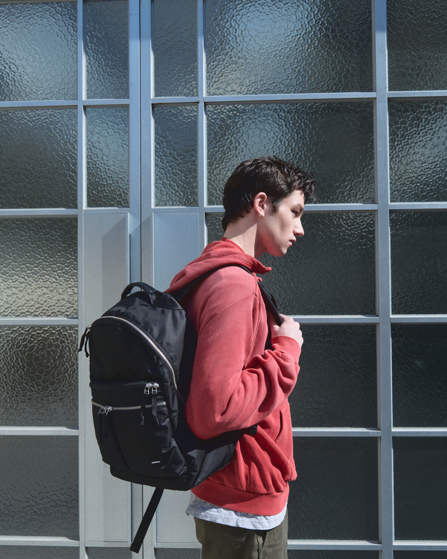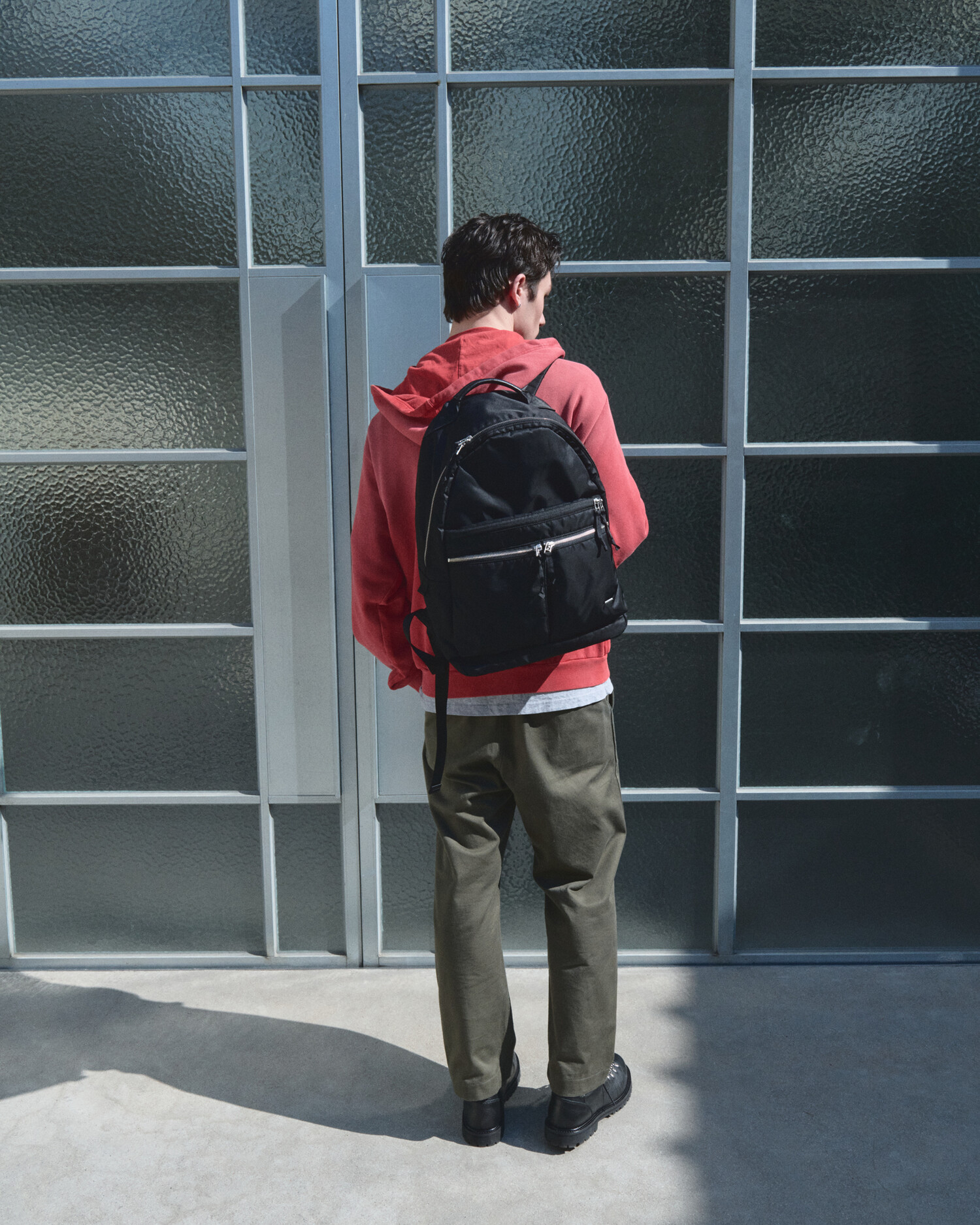 '구조적인 아름다움'이라는 테마 아래 세련된 실루엣과 탄탄한 기능성을 동시에 담아낸 TRUSS 시리즈의 백팩입니다. 일상뿐 아니라 여행 등 특정 상황에 구분없이 언제든 사용하기 좋은 데이팩으로 효성 TNC의 고밀도 재생 나일론을 메인 원단으로 사용하여 가볍고 견고하며, 은은한 광택이 도는 텍스처와 깊이감이 있는 컬러감으로 모던한 분위기를 극대화했습니다. 보강재를 덧댄 바디는 형태가 흐트러지지 않도록 안정적으로 잡아주며, 탑 핸들에는 소 가죽으로 마감하여 고급스러움을 더해줍니다. 백팩 스트랩은 적절한 보강재를 삽입하여 어깨의 피로도 및 부담감을 줄여주고, 탈부착이 가능한 체스트 스트랩을 통해 기능적인 부분을 보완했습니다. 탈부착이 가능한 이너 포켓은 전면부 나일론 지퍼 포켓 내부에 있는 회전 후크와 결합하여 파우치 형태로도 사용하실 수 있으며, 메인 공간에는 랩탑 파티션이 있어서 랩탑을 안전하게 수납할 수 있습니다. 전면부 니켈 지퍼 포켓에는 입체 플리츠 구조를 활용한 포켓 디테일을 적용하여 부피감이 있는 소지품을 수납하시기 용이하며 가방의 양 쪽 옆면에는 히든 포켓을 추가로 배치하여 카드 지갑이나 에어팟 등 작은 물건을 간편히 정리할 수 있습니다. YKK 지퍼와 고급스러운 흑무광 니켈 파츠를 사용하여 나이에 상관 없이 오랜시간 사용하실 수 있는 타임리스한 클래식 백팩입니다.