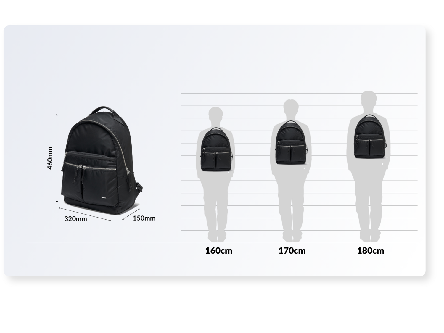 ▶︎ SIZE: 320 x 460 x 150 (mm) ▶︎ WEIGHT: 750g ▶︎ CAPACITY: 22L ▶︎ TYPE: 1Way (Backpack) ▶︎ COLOR: Black ▶︎ FABRIC : Nylon 100% (Mipan regen 2L Recycle Nylon) ▶︎ LINING: Nylon100% ▶︎ WEBBING: Nylon100% ▶︎ ZIPPER: YKK® ▶︎ SNAP: YKK® ▶︎ PARTS: Matte black nickel parts ▶︎ ORIGIN: Korea
