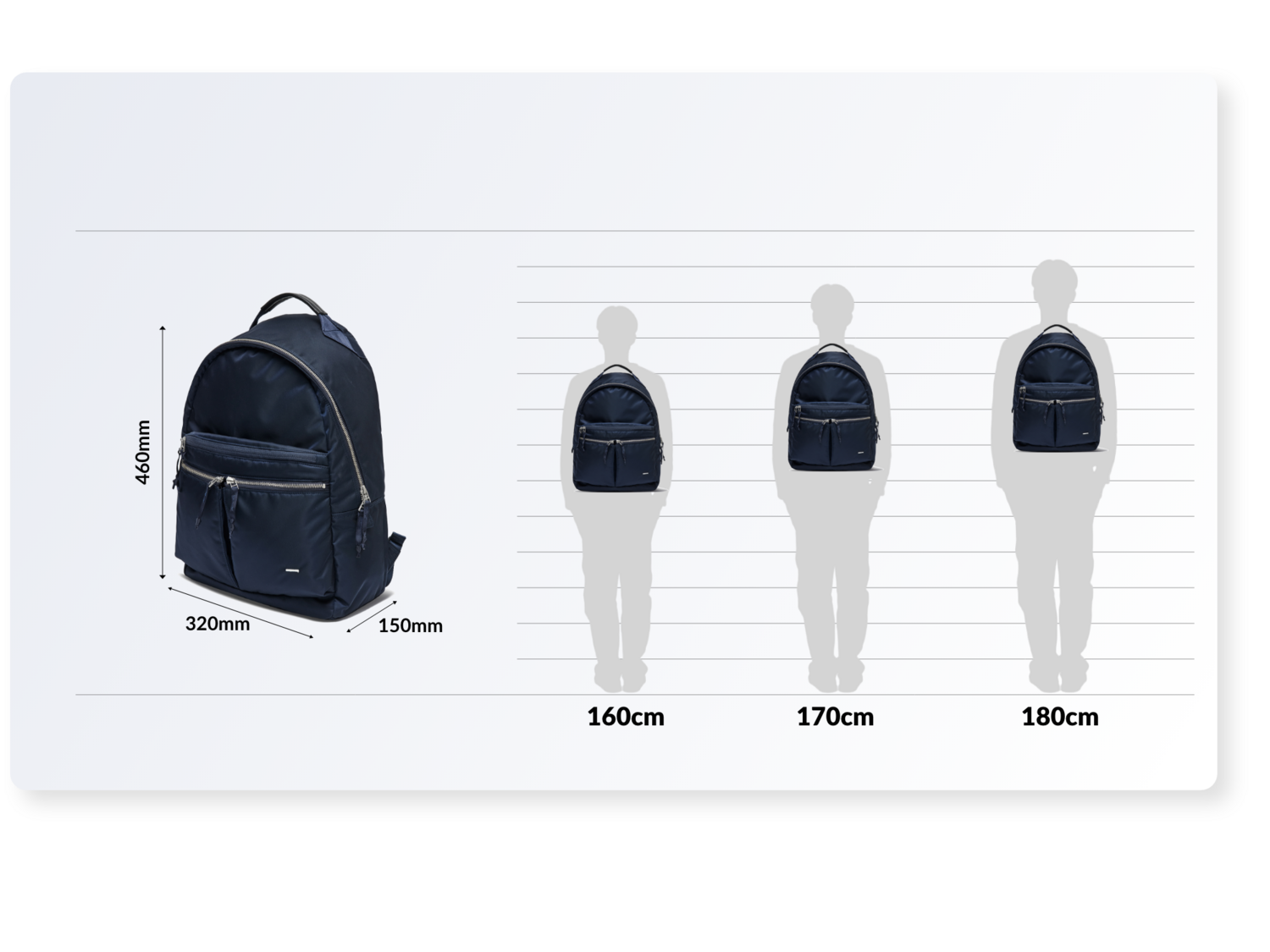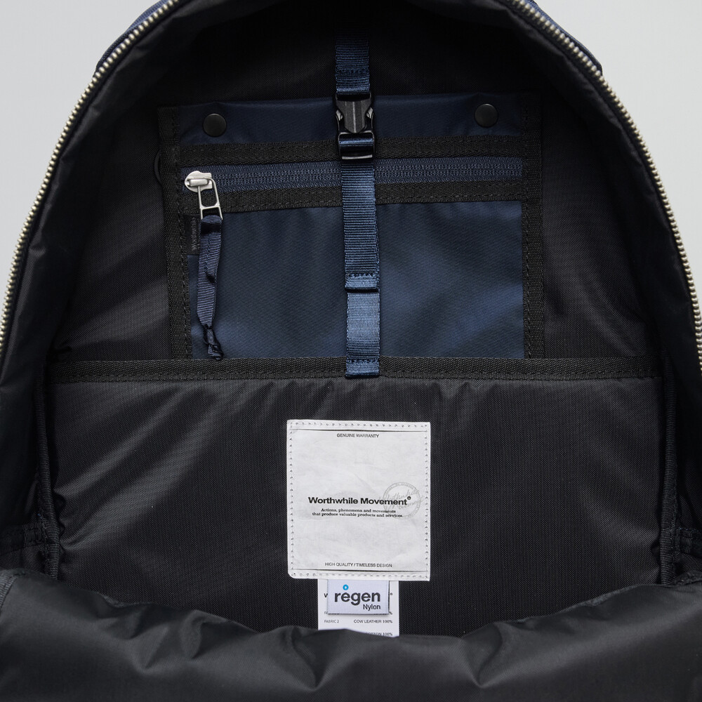 ▶︎ SIZE: 320 x 460 x 150 (mm) ▶︎ WEIGHT: 750g ▶︎ CAPACITY: 22L ▶︎ TYPE: 1Way (Backpack) ▶︎ COLOR: Navy ▶︎ FABRIC : Nylon 100% (Mipan regen 2L Recycle Nylon) ▶︎ LINING: Nylon100% ▶︎ WEBBING: Nylon100% ▶︎ ZIPPER: YKK® ▶︎ SNAP: YKK® ▶︎ PARTS: Matte black nickel parts ▶︎ ORIGIN: Korea