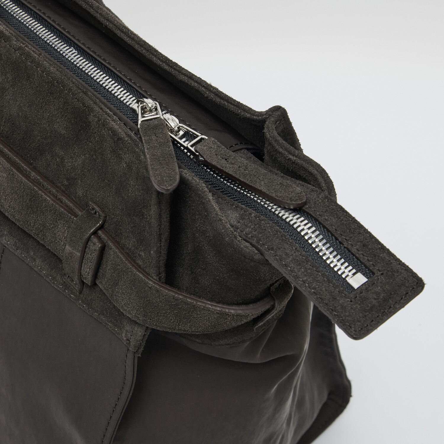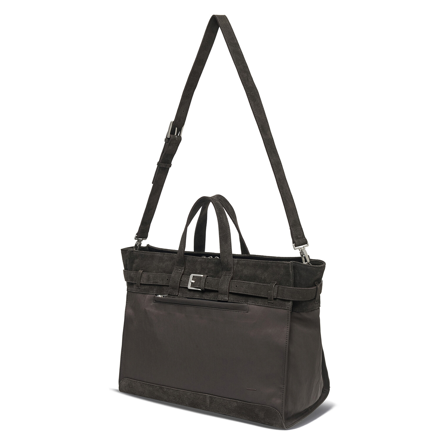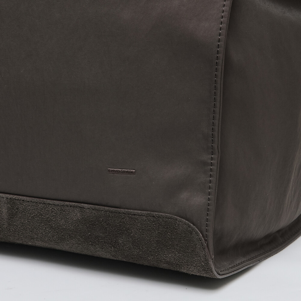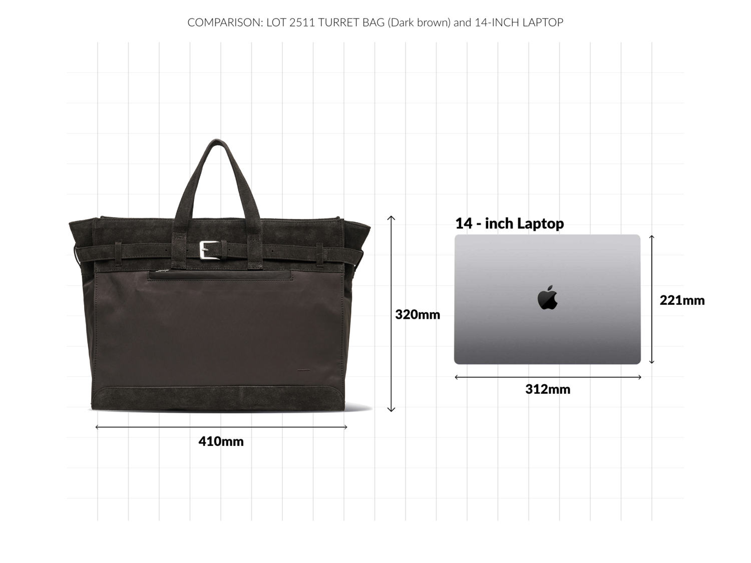 고급스럽고 클래식한 분위기의 터렛 백은 에르메스의 버킨백과 미군의 과거 메일 백(Mail bag)을 바탕으로 디자인했습니다. *에르메스(Hermes)의 버킨 백은 1984년 에르메스가 영국 배우 제인 버킨(Jane Birkin)을 위해 제작한 핸드백으로 브랜드의 상징적인 제품중 하나입니다. 고품질의 가죽과 장식을 사용하여 실용성과 우아함을 겸비하며 넉넉한 수납 공간과 독특한 플랩 구조 그리고 입구의 가죽 스트랩과 토글(잠금쇠)이 특징인 가방이죠. 반면 미군의 *메일 백(Mail bag)은 입구에 타원형의 O링을 여러개 배치하고 웨빙 벨트로 연결하여 밀봉하는 기능적인 입구 잠금 방식, 그리고 캔버스 소재와 가죽을 믹스한 원단이 특징입니다. 터렛백은 버킨백의 클래식한 실루엣에서 모티브를 얻어 직사각 형태의 바디를 만들고, 헤비트윌 나일론과 어울어지는 가죽 소재를 상단부와 바닥변에 사용하여 단단하게 보강을 진행했고 실루엣을 유지하도록 만들었습니다. 미감적으로 정교하고 우아하지만 사용감에 있어서 불편할 수 있는 자물쇠 타입의 토글대신 실용적이고 모던한 버클 벨트를 사용하여 입구의 실루엣을 조절하여 가방 형태를 바꿀 수 있습니다. 또한 지퍼가 오픈된 상태에서도 큰 소지품의 이탈을 일정 부분 막아주는 역할을 합니다. 광택감이 있는 부드러운 슬라이딩의 양날 지퍼가 적용된 입구 부분은 개폐 범위를 가로 폭 사이즈보다 넓게 만들어 실용적인 부분을 고려하였고, 지퍼의 마감도 모두 가죽으로 진행하여 고급스러운 균형감을 유지했습니다. 전면부 포켓에는 키링을 연결할 수 있는 O링 키체인 장식이 내장되어 있으며, 바디에는 은은한 광택감이 매력적인 헤비 트윌 나일론을 적용했고 형태감 유지를 위해 적절한 보강재를 삽입했습니다. 이너 포켓들에는 히든 마그넷을 통해 간편히 입구를 닫을 수 있도록 했으며 레더 소재로 된 고급 크로스 스트랩을 동봉해드리기 때문에 상황에 맞게 크로스 백으로 연출할 수 있습니다.