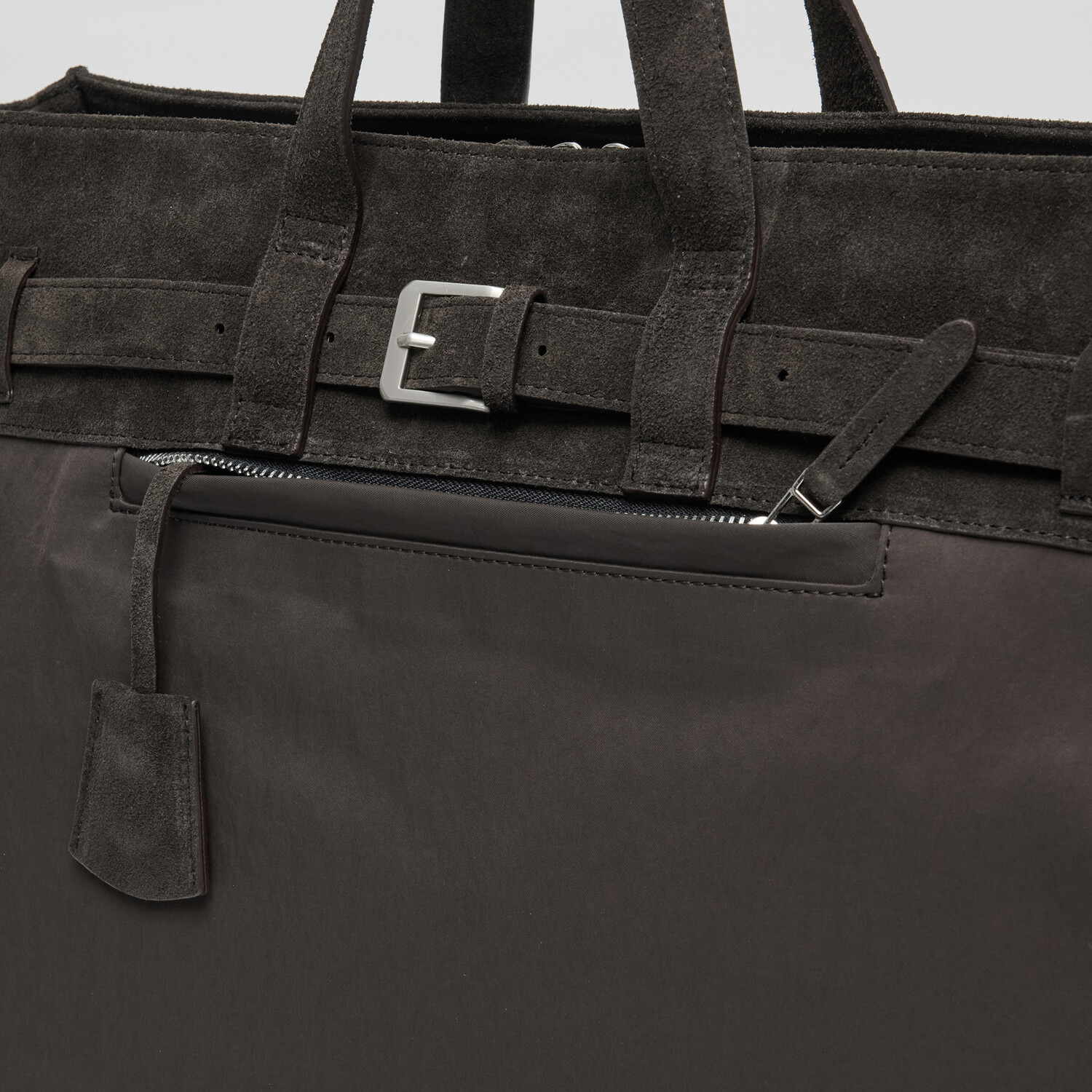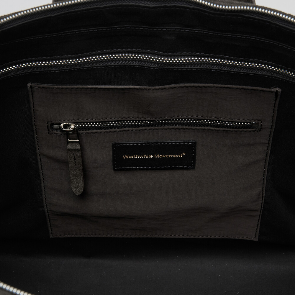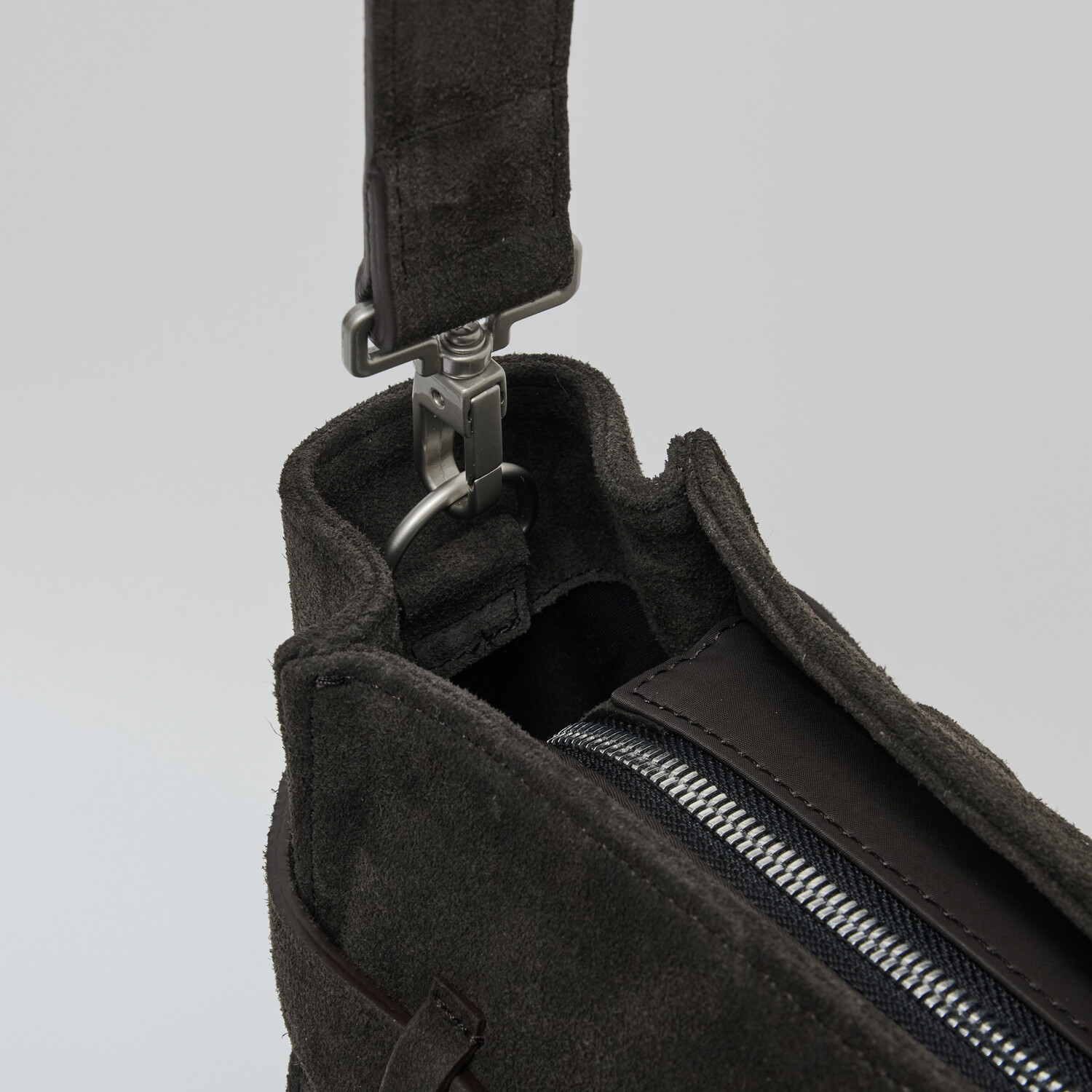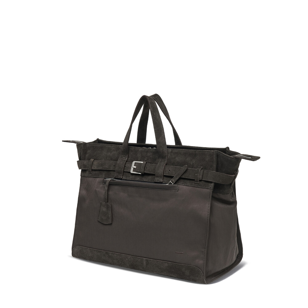 고급스럽고 클래식한 분위기의 터렛 백은 에르메스의 버킨백과 미군의 과거 메일 백(Mail bag)을 바탕으로 디자인했습니다. *에르메스(Hermes)의 버킨 백은 1984년 에르메스가 영국 배우 제인 버킨(Jane Birkin)을 위해 제작한 핸드백으로 브랜드의 상징적인 제품중 하나입니다. 고품질의 가죽과 장식을 사용하여 실용성과 우아함을 겸비하며 넉넉한 수납 공간과 독특한 플랩 구조 그리고 입구의 가죽 스트랩과 토글(잠금쇠)이 특징인 가방이죠. 반면 미군의 *메일 백(Mail bag)은 입구에 타원형의 O링을 여러개 배치하고 웨빙 벨트로 연결하여 밀봉하는 기능적인 입구 잠금 방식, 그리고 캔버스 소재와 가죽을 믹스한 원단이 특징입니다. 터렛백은 버킨백의 클래식한 실루엣에서 모티브를 얻어 직사각 형태의 바디를 만들고, 헤비트윌 나일론과 어울어지는 가죽 소재를 상단부와 바닥변에 사용하여 단단하게 보강을 진행했고 실루엣을 유지하도록 만들었습니다. 미감적으로 정교하고 우아하지만 사용감에 있어서 불편할 수 있는 자물쇠 타입의 토글대신 실용적이고 모던한 버클 벨트를 사용하여 입구의 실루엣을 조절하여 가방 형태를 바꿀 수 있습니다. 또한 지퍼가 오픈된 상태에서도 큰 소지품의 이탈을 일정 부분 막아주는 역할을 합니다. 광택감이 있는 부드러운 슬라이딩의 양날 지퍼가 적용된 입구 부분은 개폐 범위를 가로 폭 사이즈보다 넓게 만들어 실용적인 부분을 고려하였고, 지퍼의 마감도 모두 가죽으로 진행하여 고급스러운 균형감을 유지했습니다. 전면부 포켓에는 키링을 연결할 수 있는 O링 키체인 장식이 내장되어 있으며, 바디에는 은은한 광택감이 매력적인 헤비 트윌 나일론을 적용했고 형태감 유지를 위해 적절한 보강재를 삽입했습니다. 이너 포켓들에는 히든 마그넷을 통해 간편히 입구를 닫을 수 있도록 했으며 레더 소재로 된 고급 크로스 스트랩을 동봉해드리기 때문에 상황에 맞게 크로스 백으로 연출할 수 있습니다.