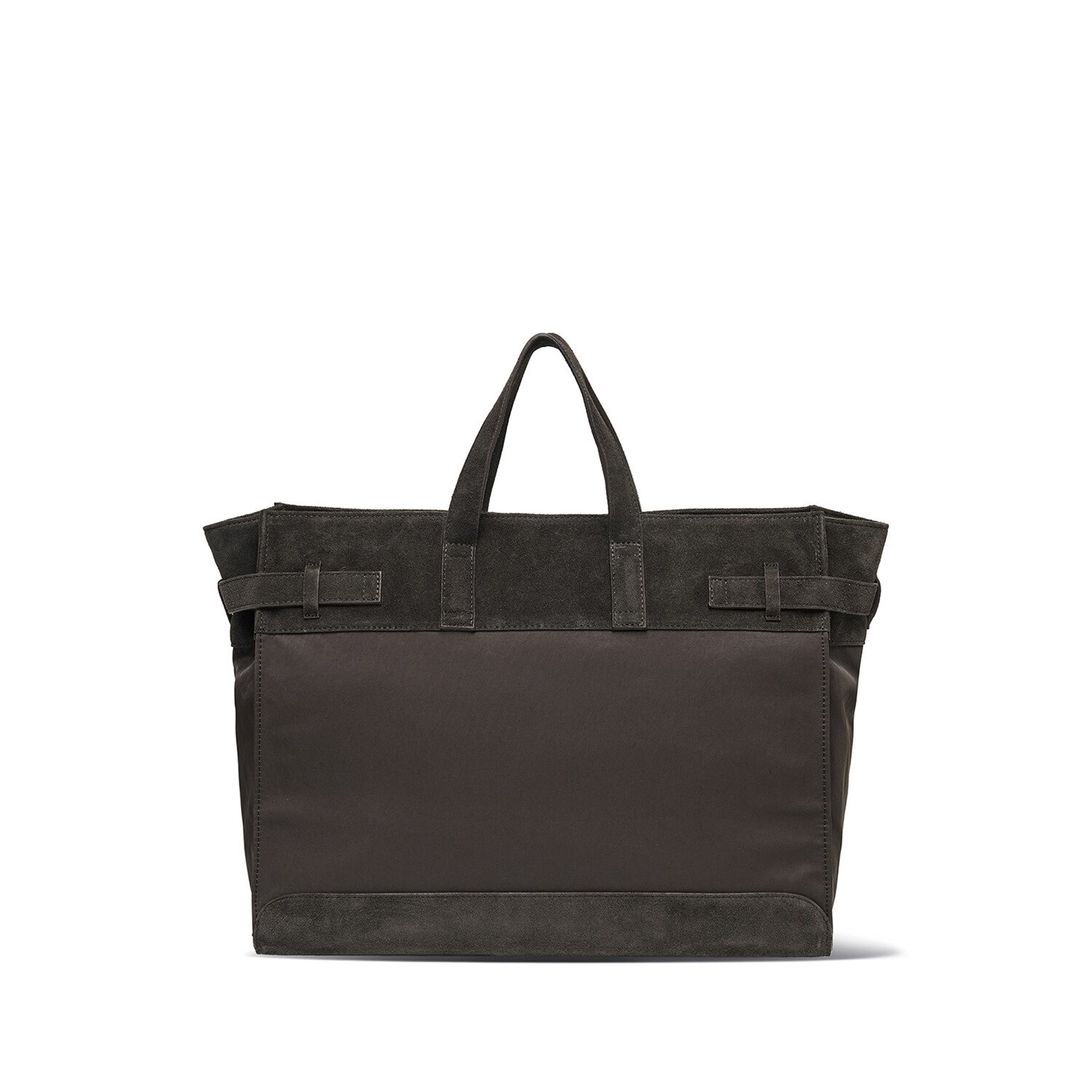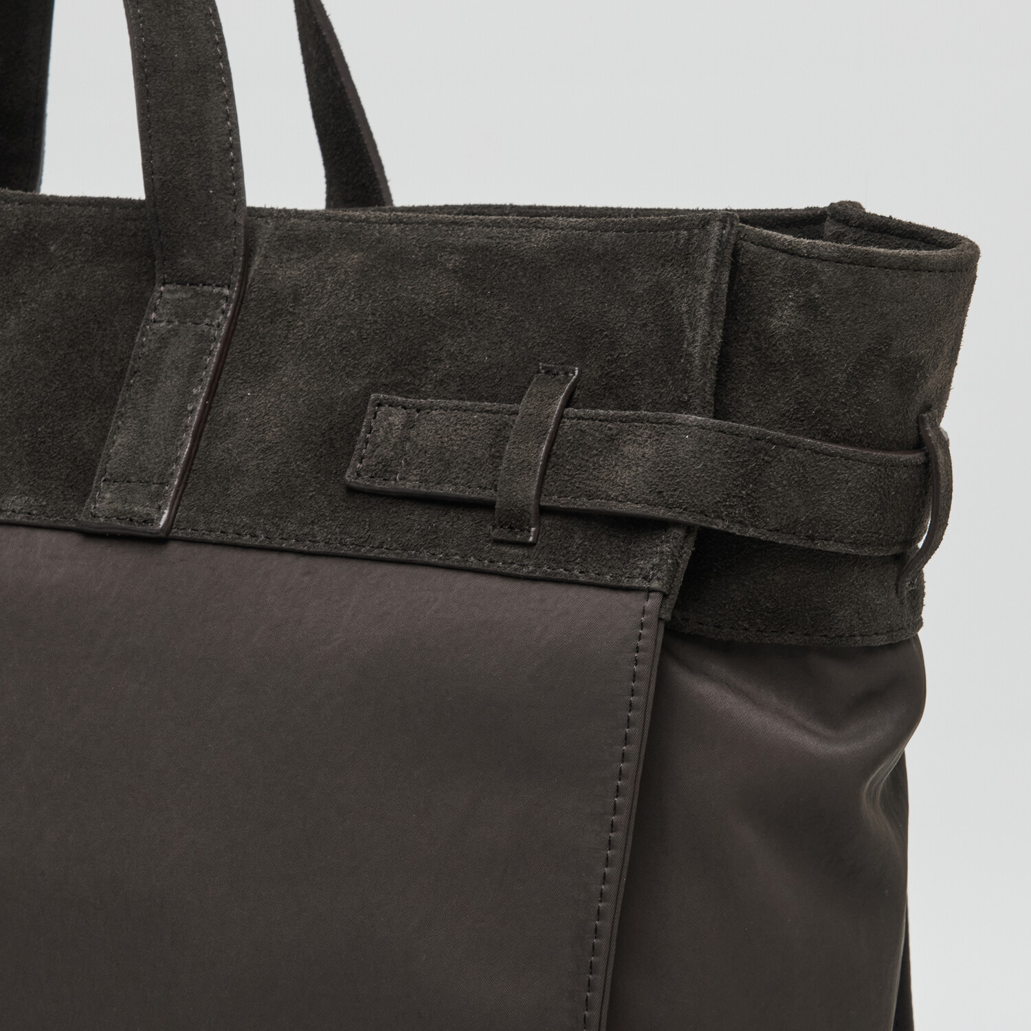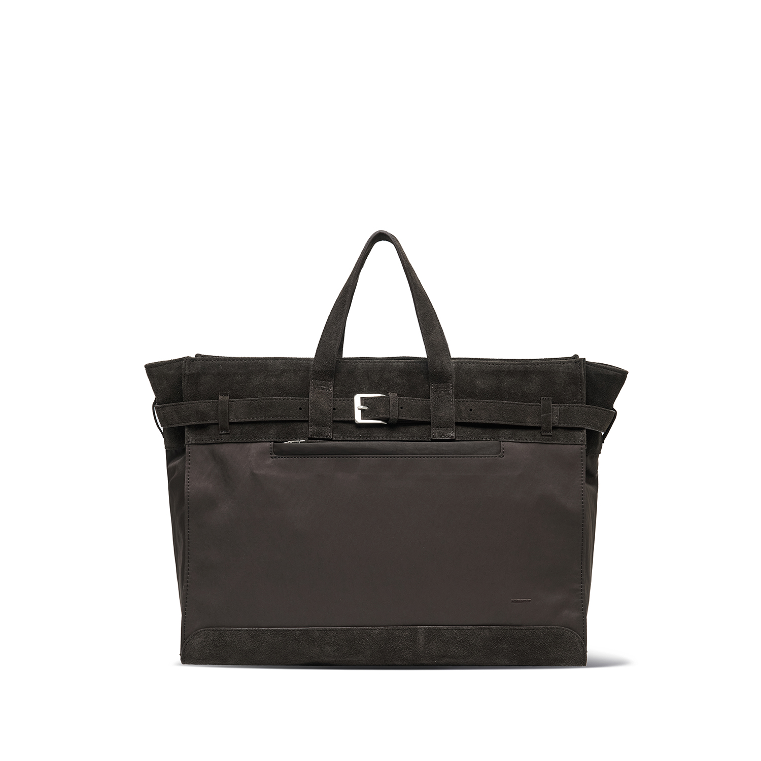 고급스럽고 클래식한 분위기의 터렛 백은 에르메스의 버킨백과 미군의 과거 메일 백(Mail bag)을 바탕으로 디자인했습니다. *에르메스(Hermes)의 버킨 백은 1984년 에르메스가 영국 배우 제인 버킨(Jane Birkin)을 위해 제작한 핸드백으로 브랜드의 상징적인 제품중 하나입니다. 고품질의 가죽과 장식을 사용하여 실용성과 우아함을 겸비하며 넉넉한 수납 공간과 독특한 플랩 구조 그리고 입구의 가죽 스트랩과 토글(잠금쇠)이 특징인 가방이죠. 반면 미군의 *메일 백(Mail bag)은 입구에 타원형의 O링을 여러개 배치하고 웨빙 벨트로 연결하여 밀봉하는 기능적인 입구 잠금 방식, 그리고 캔버스 소재와 가죽을 믹스한 원단이 특징입니다. 터렛백은 버킨백의 클래식한 실루엣에서 모티브를 얻어 직사각 형태의 바디를 만들고, 헤비트윌 나일론과 어울어지는 가죽 소재를 상단부와 바닥변에 사용하여 단단하게 보강을 진행했고 실루엣을 유지하도록 만들었습니다. 미감적으로 정교하고 우아하지만 사용감에 있어서 불편할 수 있는 자물쇠 타입의 토글대신 실용적이고 모던한 버클 벨트를 사용하여 입구의 실루엣을 조절하여 가방 형태를 바꿀 수 있습니다. 또한 지퍼가 오픈된 상태에서도 큰 소지품의 이탈을 일정 부분 막아주는 역할을 합니다. 광택감이 있는 부드러운 슬라이딩의 양날 지퍼가 적용된 입구 부분은 개폐 범위를 가로 폭 사이즈보다 넓게 만들어 실용적인 부분을 고려하였고, 지퍼의 마감도 모두 가죽으로 진행하여 고급스러운 균형감을 유지했습니다. 전면부 포켓에는 키링을 연결할 수 있는 O링 키체인 장식이 내장되어 있으며, 바디에는 은은한 광택감이 매력적인 헤비 트윌 나일론을 적용했고 형태감 유지를 위해 적절한 보강재를 삽입했습니다. 이너 포켓들에는 히든 마그넷을 통해 간편히 입구를 닫을 수 있도록 했으며 레더 소재로 된 고급 크로스 스트랩을 동봉해드리기 때문에 상황에 맞게 크로스 백으로 연출할 수 있습니다.