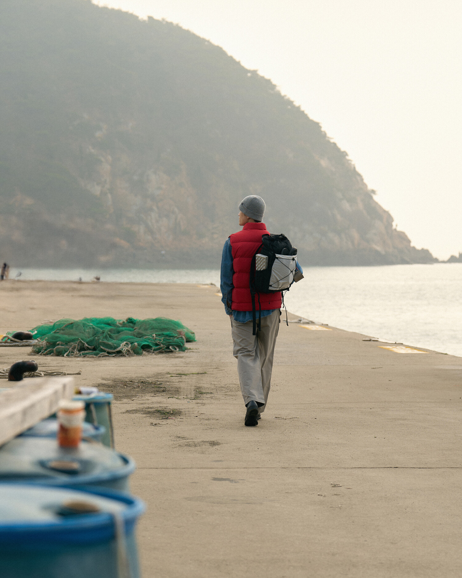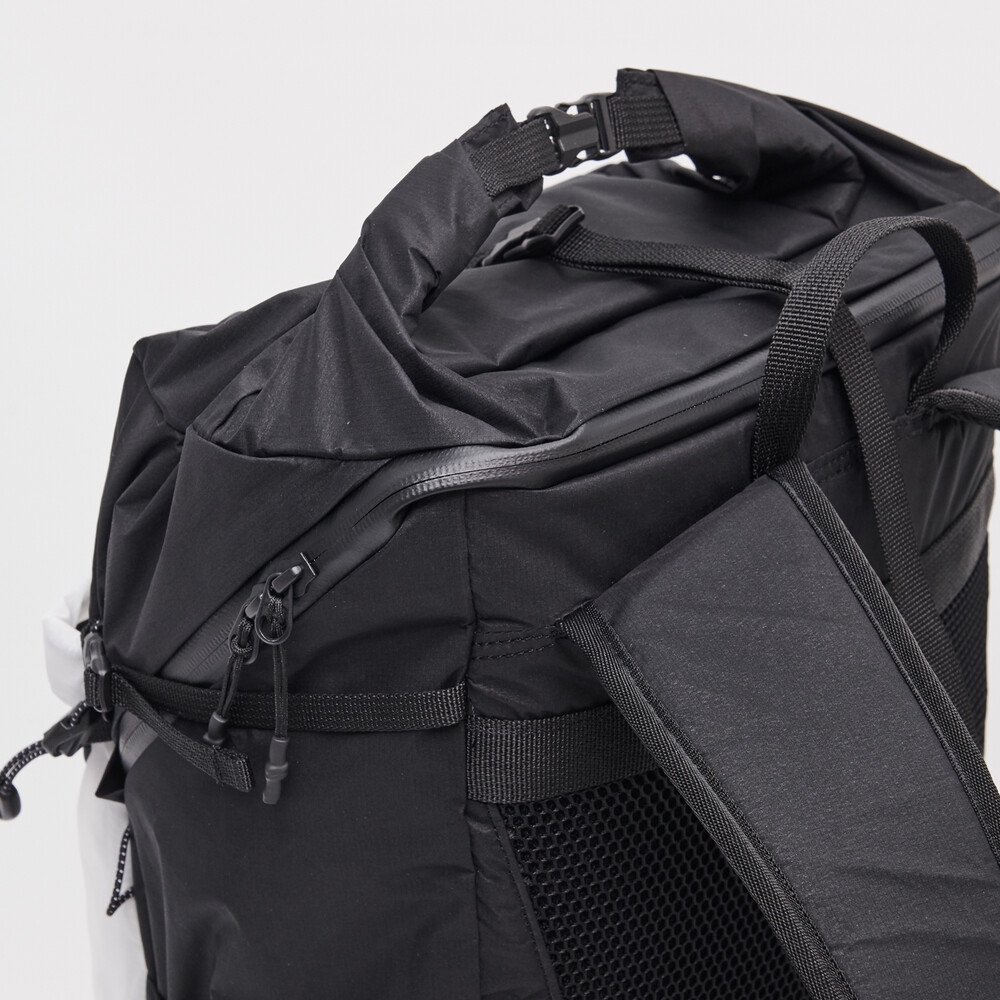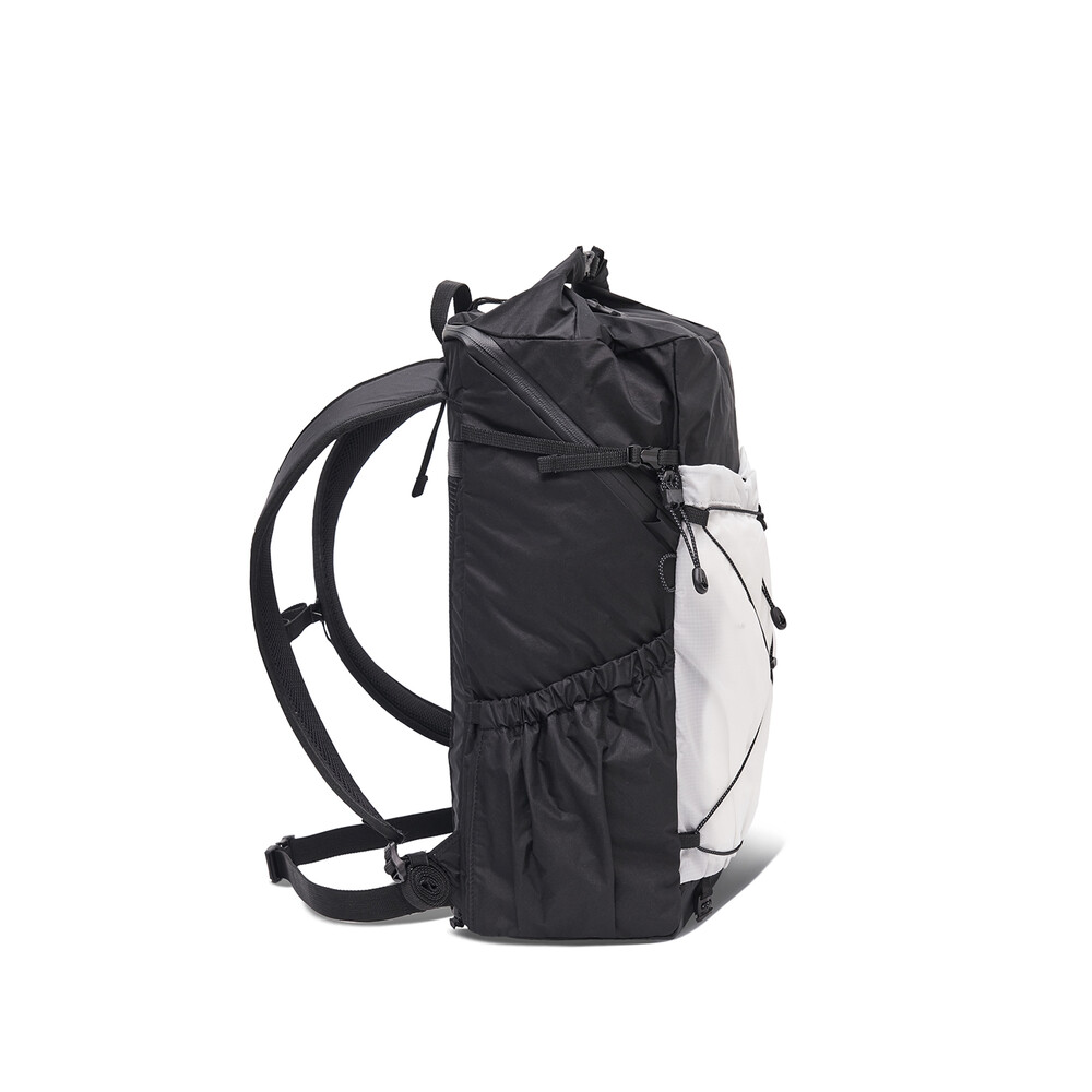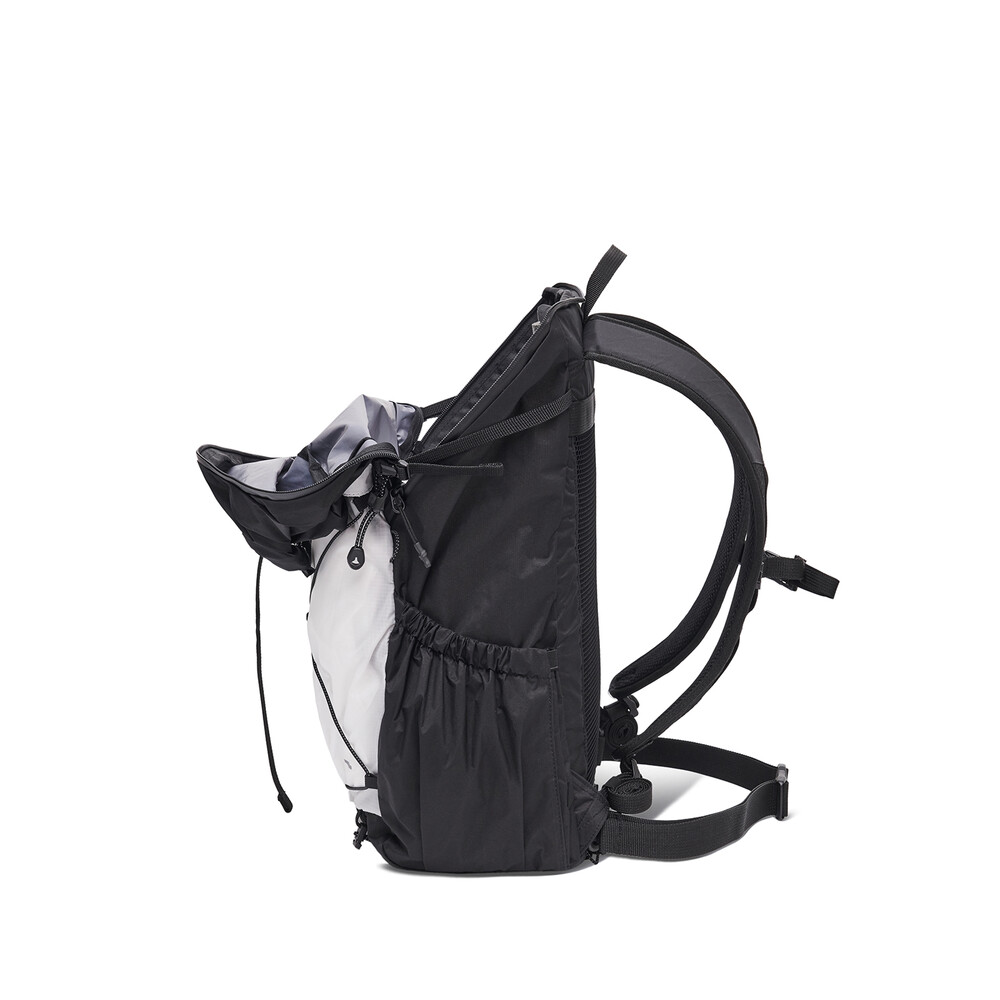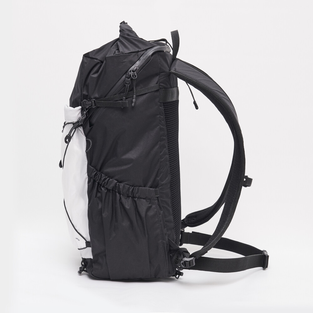컨투어 22 는 ‘ㄷ'자 개방형 지퍼와 상단 롤 탑 구조로 오픈 및 확장이 가능한 경량 하이킹 백팩입니다. 데이 하이킹이나 춘추 시즌 내 1박 2일 백팩킹 및 여행 때 사용할 수 있는 활용도 높은 사이즈로 구성했습니다. YKK RC PU Zipper를 사용하여 양 측면과 등판을 가로 지르는 오픈 구조를 만들어서 상단부 버클과 벨크로(롤 탑)를 오픈하지 않고도 통해 내부 소지품을 보다 간편하게 꺼낼 수 있습니다. 국내 친환경 및 기능성 패브릭을 생산하는 Texnic 사의 리사이클 P240P 립스탑 원단 (전기차 배터리 분리막을 리사이클한 초고분자량 폴리에틸렌 [UHMWPE 섬유] 소재를 필름지로 라미테이팅 접착) 을 사용했고 부자재는 YKK 지퍼 및 우진 플라스틱, 니프코의 파츠들을 적용했습니다. 40년 이상의 가방 제조기술을 보유한 가방 전문 메이커와 협력하여 생산한 기능성 아웃도어 백팩입니다.