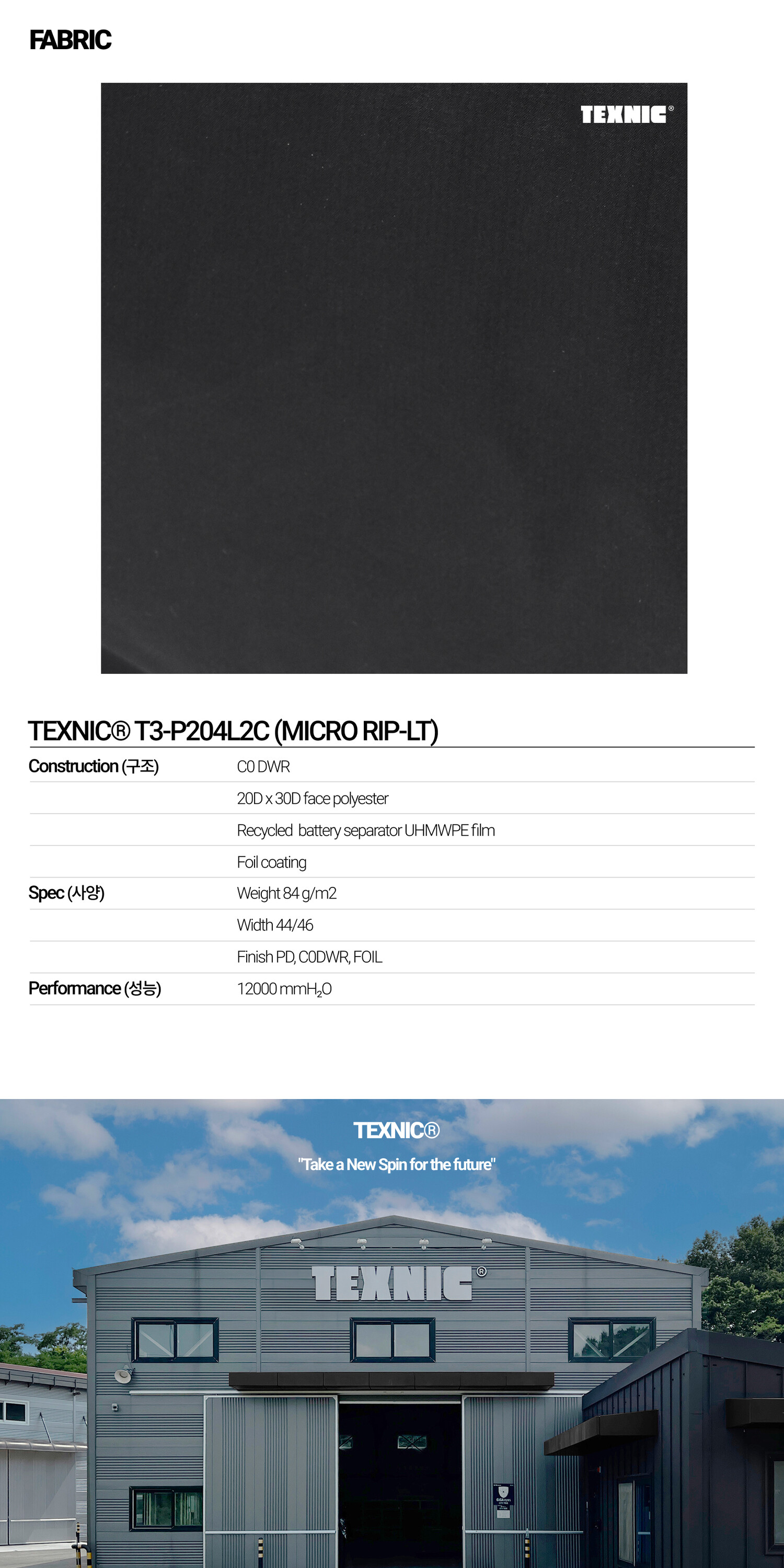 ▶︎ FABRIC1 : Polyester 100% (Texnic® 2.5L MICRO RIP-LT UHMWPE)
