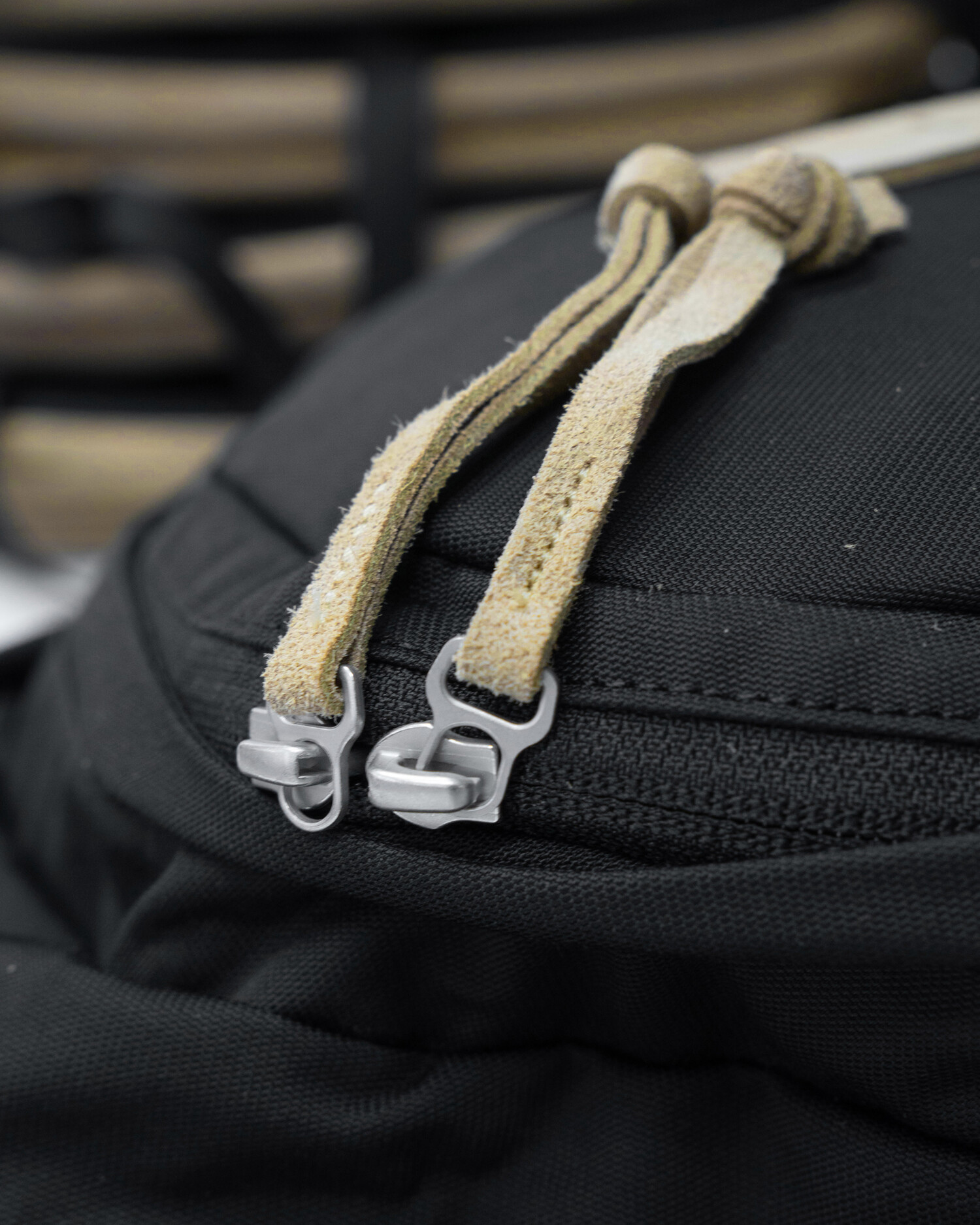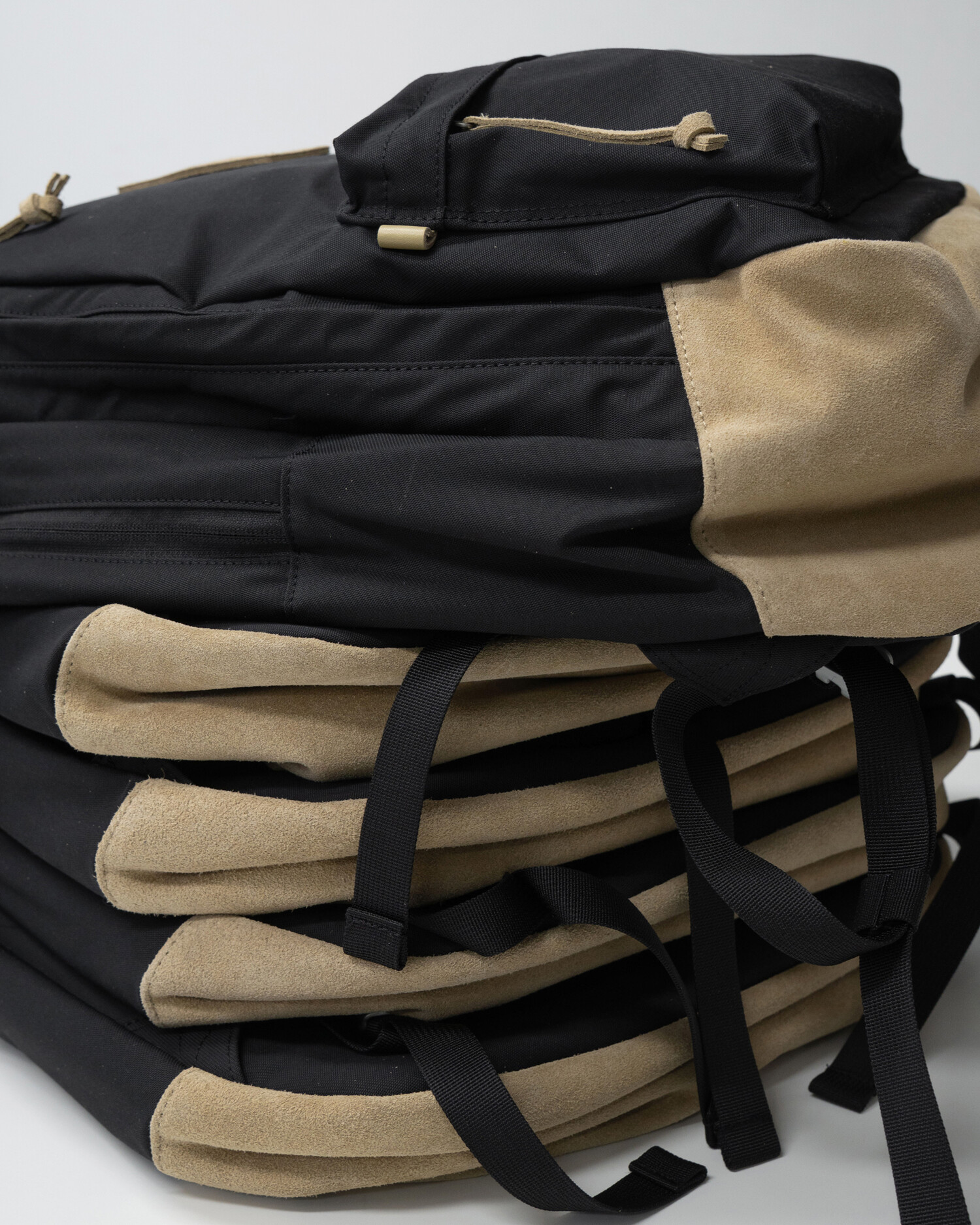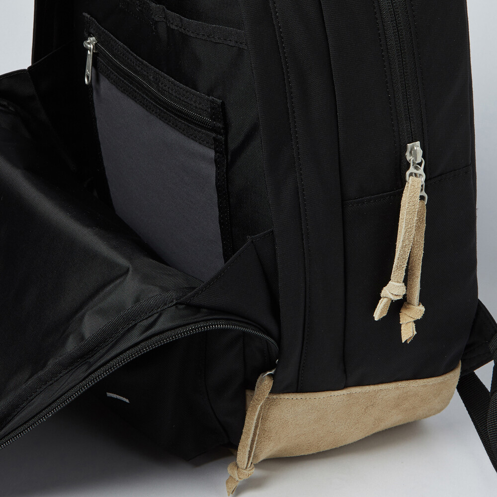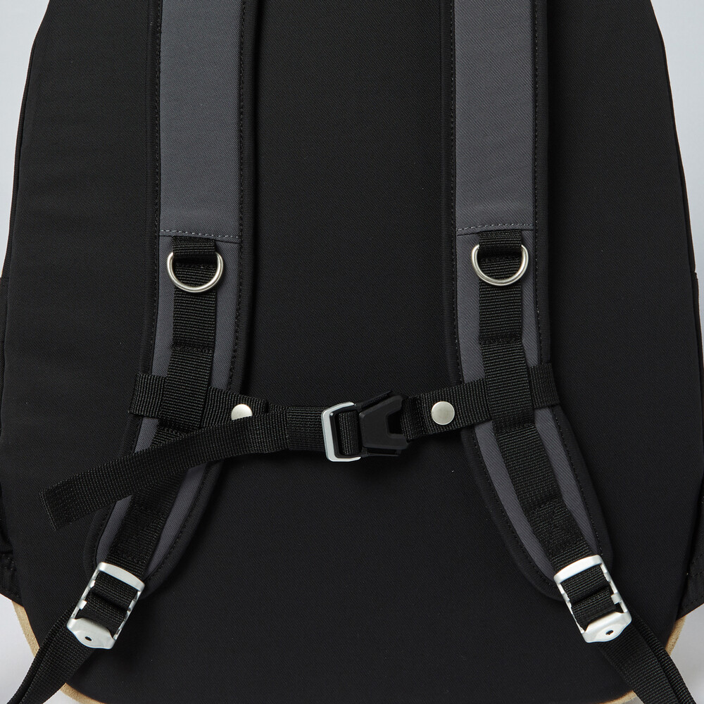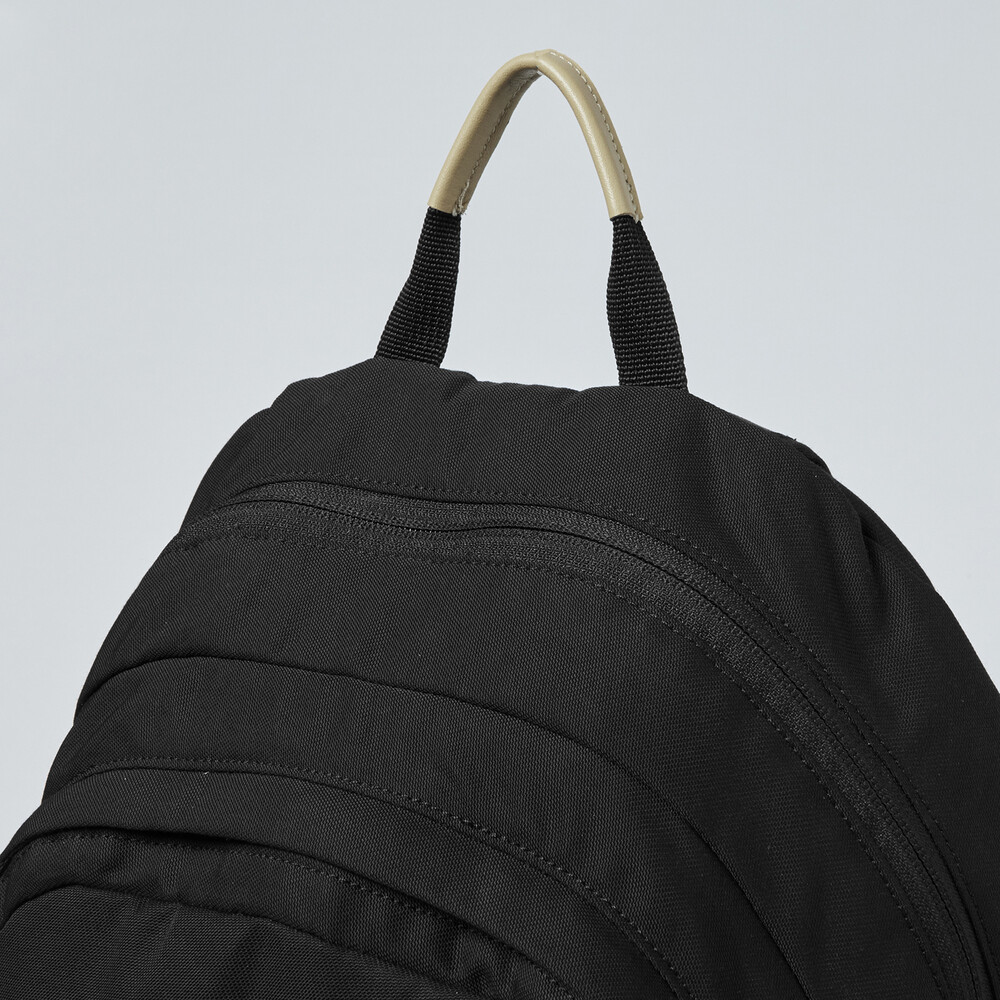 90년대 데이팩을 베이스로 하여 새롭게 재해석한 '빈티지 스플릿 팩' 입니다. 스웨이드 가죽으로 구성한 바닥면, 새로운 형태로 변형시킨 래시 탭(Lash Tab), 그리고 N/C(나일론 코튼 혼방) 패브릭의 투 톤 컬러 배색은 과거와 현대의 느낌을 적절하게 살린 균형감 있는 요소들입니다. 스트랩에는 항공기 등급의 알루미늄 소재로 만들어져 20mm기준 최대 135Kgf의 하중을 견딜 수 있는 Trimmers® 올드 스쿨 텐션락을 사용했고, YKK® RC Chain 지퍼가 적용된 2개의 메인 수납공간에는 랩탑 파티션과 고정 버클이 있습니다. 뿐만 아니라 외부에는 전면부 포켓과 탈부착이 가능한 체스트 스트랩이 있어 디자인 뿐 아니라 실용적인 측면도 고려한 제품입니다.