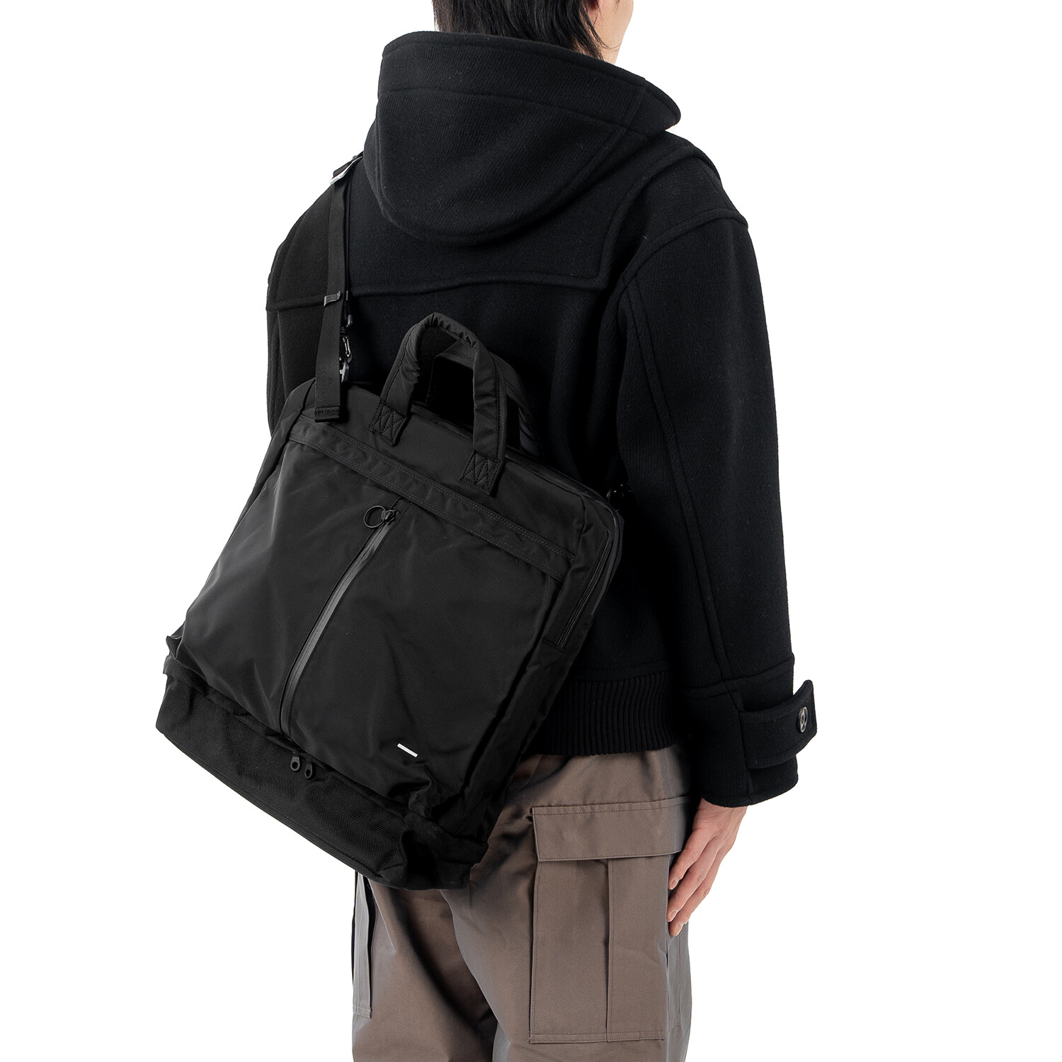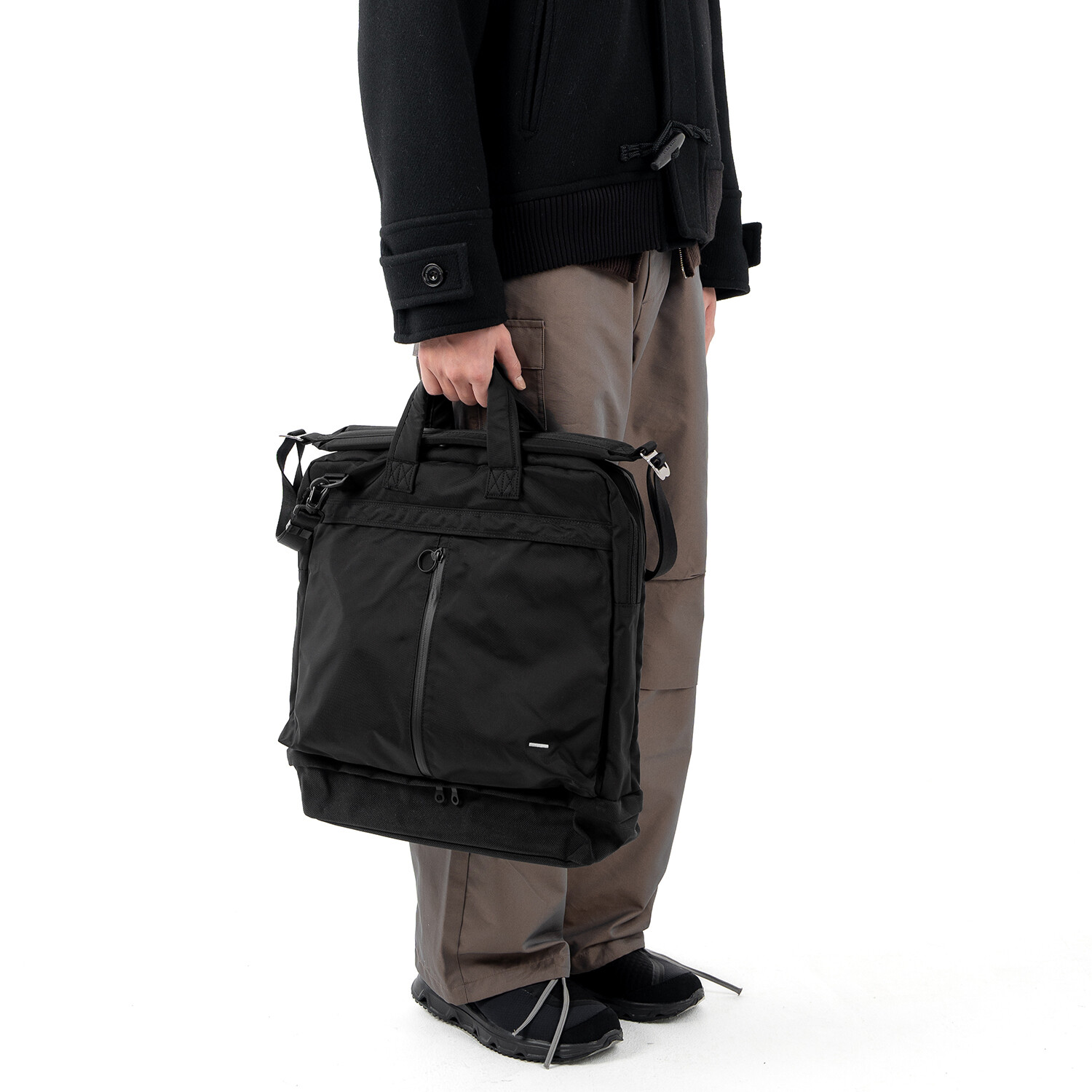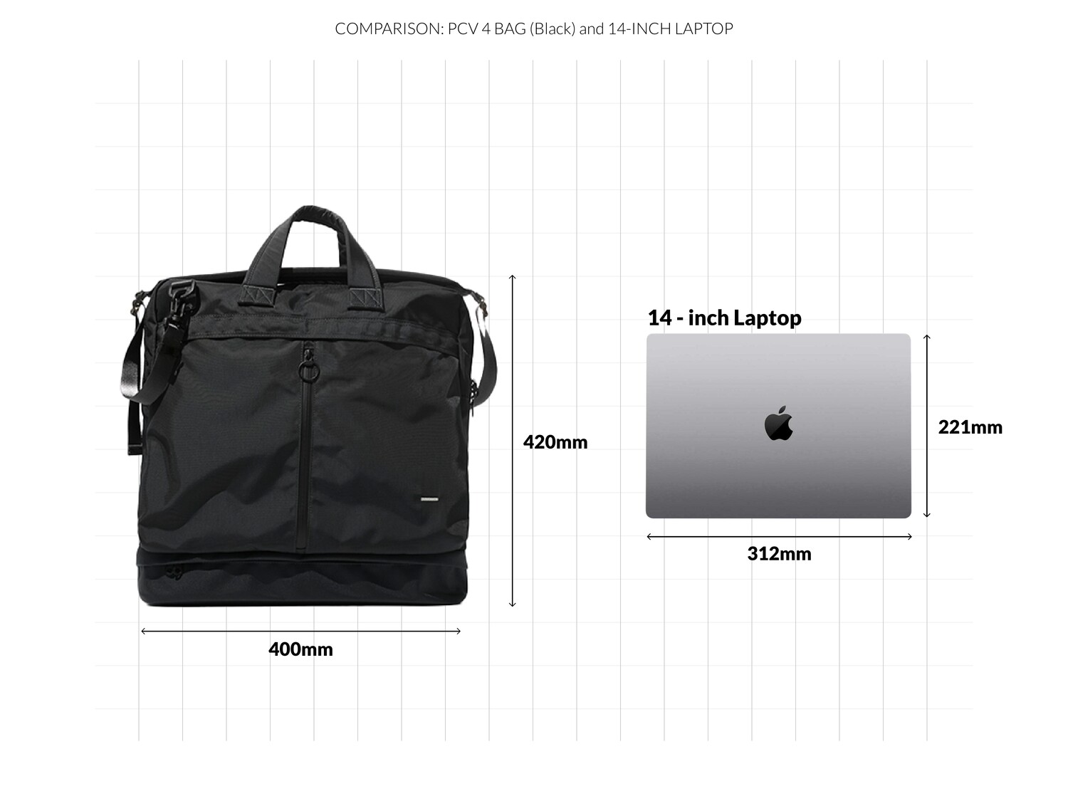 PCV 4 BAG 은 1960년대 초반, Dieter rams가 디자인하고 Braun 사에서 개발한 제품인 'PCV 4'에서 영감을 받아 디자인했습니다.PCV 4 는 벨브 엠프와 스피커가 통합된 휴대용 레코드 플레이어 케이스입니다. 통합된 형태와 분리된 형태의 구조적인 모습과 눈에서 보이는 직관적인 라인들을 가방의 레이어, 포켓 형태, 지퍼의 위치 등에 적용했습니다. 마치 헬멧백의 형태를 연상시키는 디자인에 더욱 입체적이고 활용도 높은 포켓들이 더해져 유행을 타지 않고 오래동안 사용 가능한 가방이 완성됐습니다. 기본적으로 토트백 & 크로스백으로 착용이 가능하며 탈/부착 스트랩 및 내장 스트랩을 이용해 백팩으로도 활용이 가능합니다. 메인이 되는 몸체의 원단은 미국 INVISTA 사의 Cordura 420d 를 사용하였고, 하단부 포켓과 바닥면은 방탄복 소재로도 사용되었던 1680d Ballistic 원단을 사용하여 아주 좋은 내구성을 자랑합니다. 특히 바닥면은 가장 마모가 쉽게 되는 부분이기에 내마모도가 강한 1680d Ballistic 원단을 사용하였고 이 포켓에는 우산, 필통 등의 긴 물건들이나 부피가 적은 런닝화, 슬리퍼 등도 수납이 가능합니다. 세로로 된 메인 포켓의 양쪽 하단에는 다트를 잡아서 입체적이고 넓은 수납공간을 확보했으며 뒤쪽에 있는 구분된 두개의 포켓을 추가로 활용할 수 있습니다. 15인치 랩탑까지 수납이 가능한 노트북 파티션은 메인 수납 공간과 별개로 나뉘어 있으며 메인 수납공간안에는 두개의 이너 포켓이 추가로 부착되어 내부 활용도 또한 고려했습니다. 토트백, 크로스 및 백팩 스트랩은 고탄성의 보강재를 사용하여 장시간 사용하여도 무리가 가지 않도록 하였습니다. 직업이나 나이에 상관없이 그리고 오랜기간 사용할 수 있는 제품입니다.