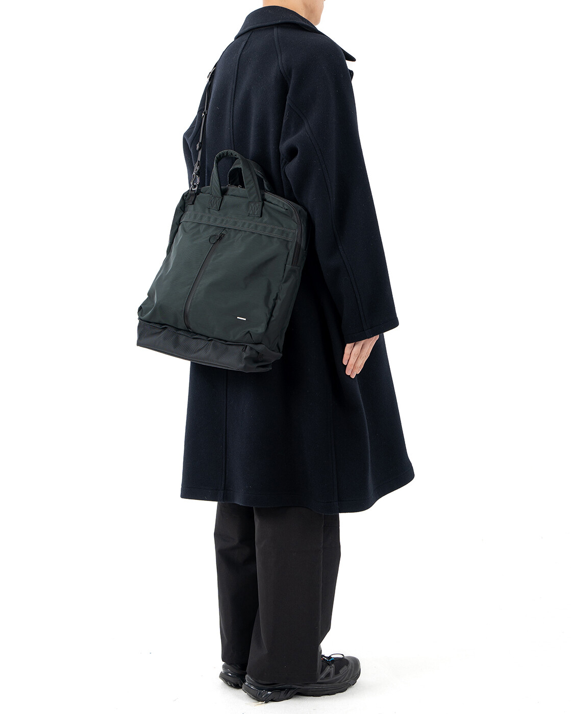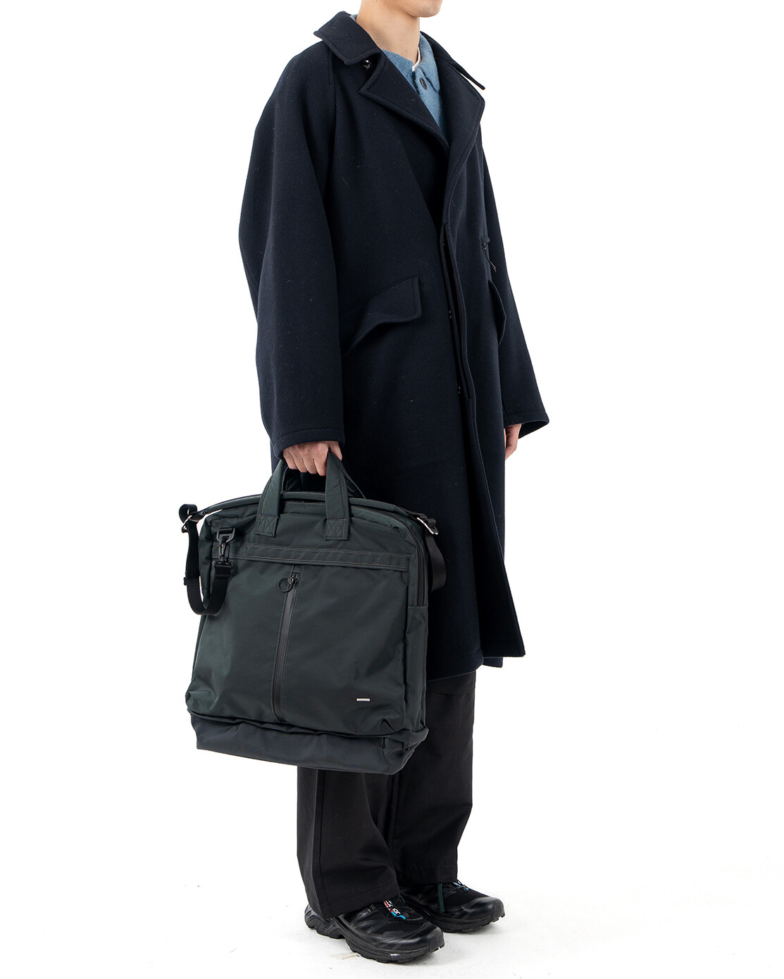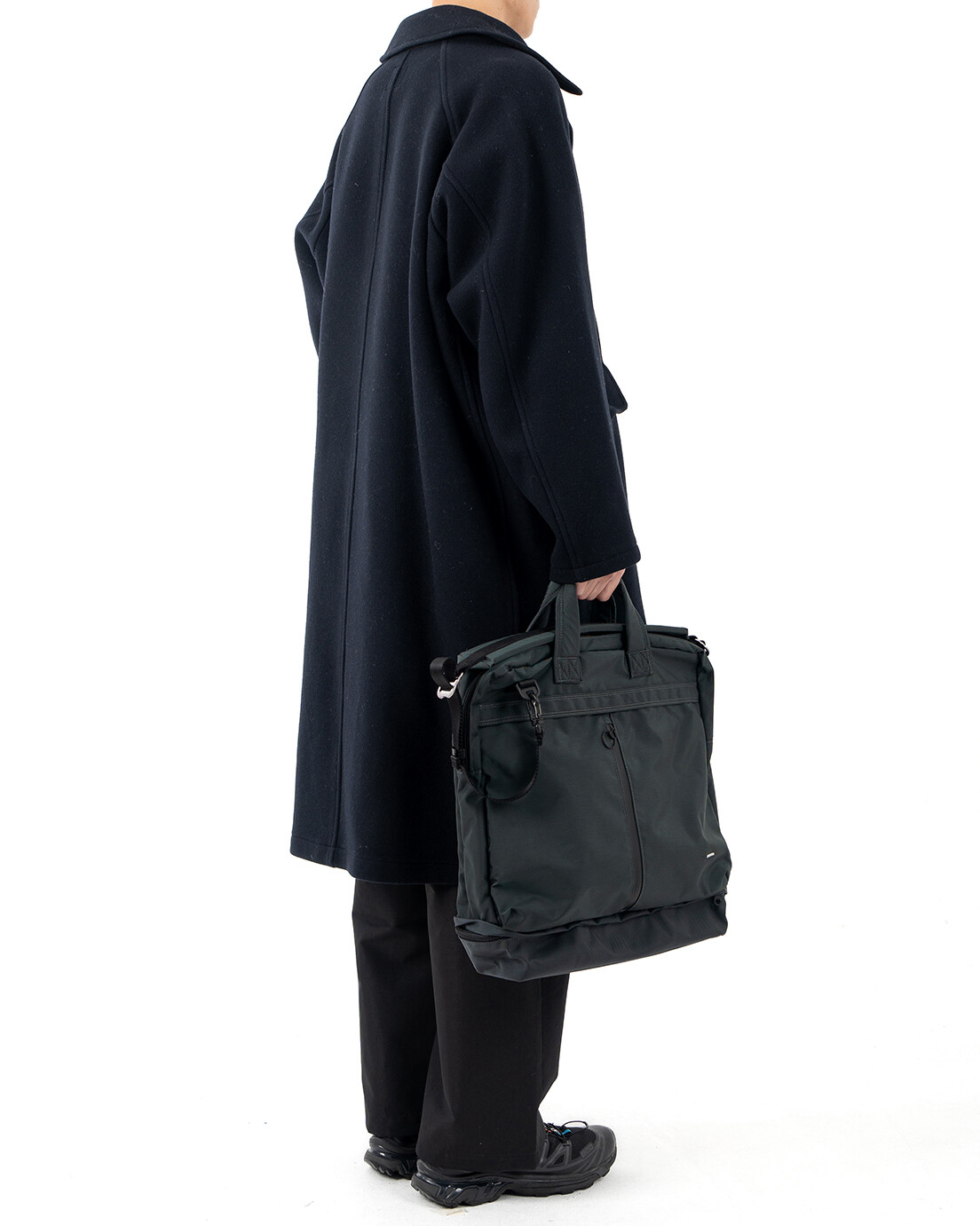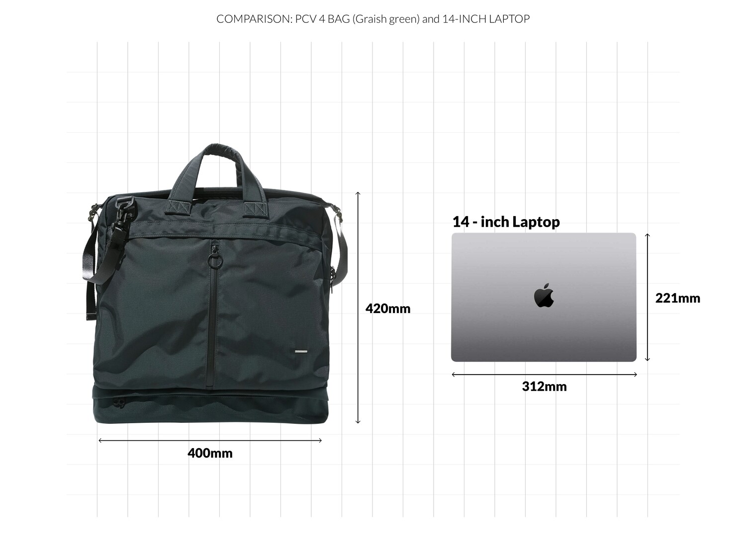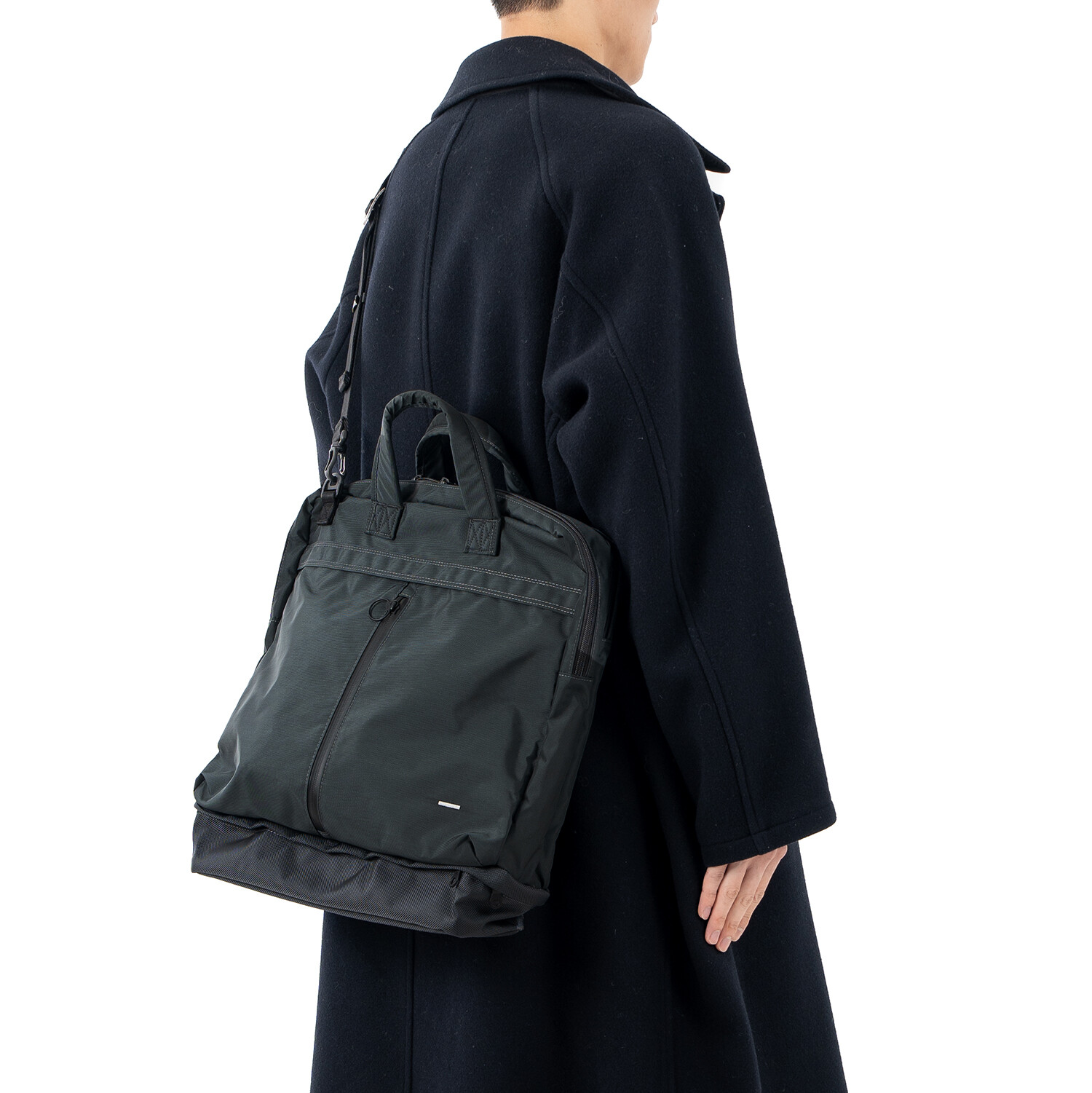PCV 4 BAG 은 1960년대 초반, Dieter rams가 디자인하고 Braun 사에서 개발한 제품인 'PCV 4'에서 영감을 받아 디자인했습니다.PCV 4 는 벨브 엠프와 스피커가 통합된 휴대용 레코드 플레이어 케이스입니다. 통합된 형태와 분리된 형태의 구조적인 모습과 눈에서 보이는 직관적인 라인들을 가방의 레이어, 포켓 형태, 지퍼의 위치 등에 적용했습니다. 마치 헬멧백의 형태를 연상시키는 디자인에 더욱 입체적이고 활용도 높은 포켓들이 더해져 유행을 타지 않고 오래동안 사용 가능한 가방이 완성됐습니다. 기본적으로 토트백 & 크로스백으로 착용이 가능하며 탈/부착 스트랩 및 내장 스트랩을 이용해 백팩으로도 활용이 가능합니다. 메인이 되는 몸체의 원단은 미국 INVISTA 사의 Cordura 420d 를 사용하였고, 하단부 포켓과 바닥면은 방탄복 소재로도 사용되었던 1680d Ballistic 원단을 사용하여 아주 좋은 내구성을 자랑합니다. 특히 바닥면은 가장 마모가 쉽게 되는 부분이기에 내마모도가 강한 1680d Ballistic 원단을 사용하였고 이 포켓에는 우산, 필통 등의 긴 물건들이나 부피가 적은 런닝화, 슬리퍼 등도 수납이 가능합니다. 세로로 된 메인 포켓의 양쪽 하단에는 다트를 잡아서 입체적이고 넓은 수납공간을 확보했으며 뒤쪽에 있는 구분된 두개의 포켓을 추가로 활용할 수 있습니다. 15인치 랩탑까지 수납이 가능한 노트북 파티션은 메인 수납 공간과 별개로 나뉘어 있으며 메인 수납공간안에는 두개의 이너 포켓이 추가로 부착되어 내부 활용도 또한 고려했습니다. 토트백, 크로스 및 백팩 스트랩은 고탄성의 보강재를 사용하여 장시간 사용하여도 무리가 가지 않도록 하였습니다. 직업이나 나이에 상관없이 그리고 오랜기간 사용할 수 있는 제품입니다.