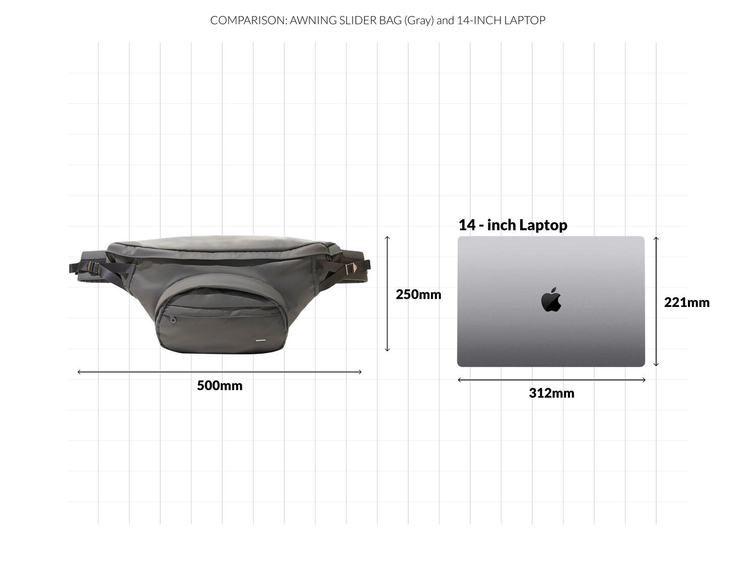 AWNING SLIDER BAG 은 크로스백 또는 숄더백의 형태로 2way 피팅이 가능한 웨이스트백입니다.