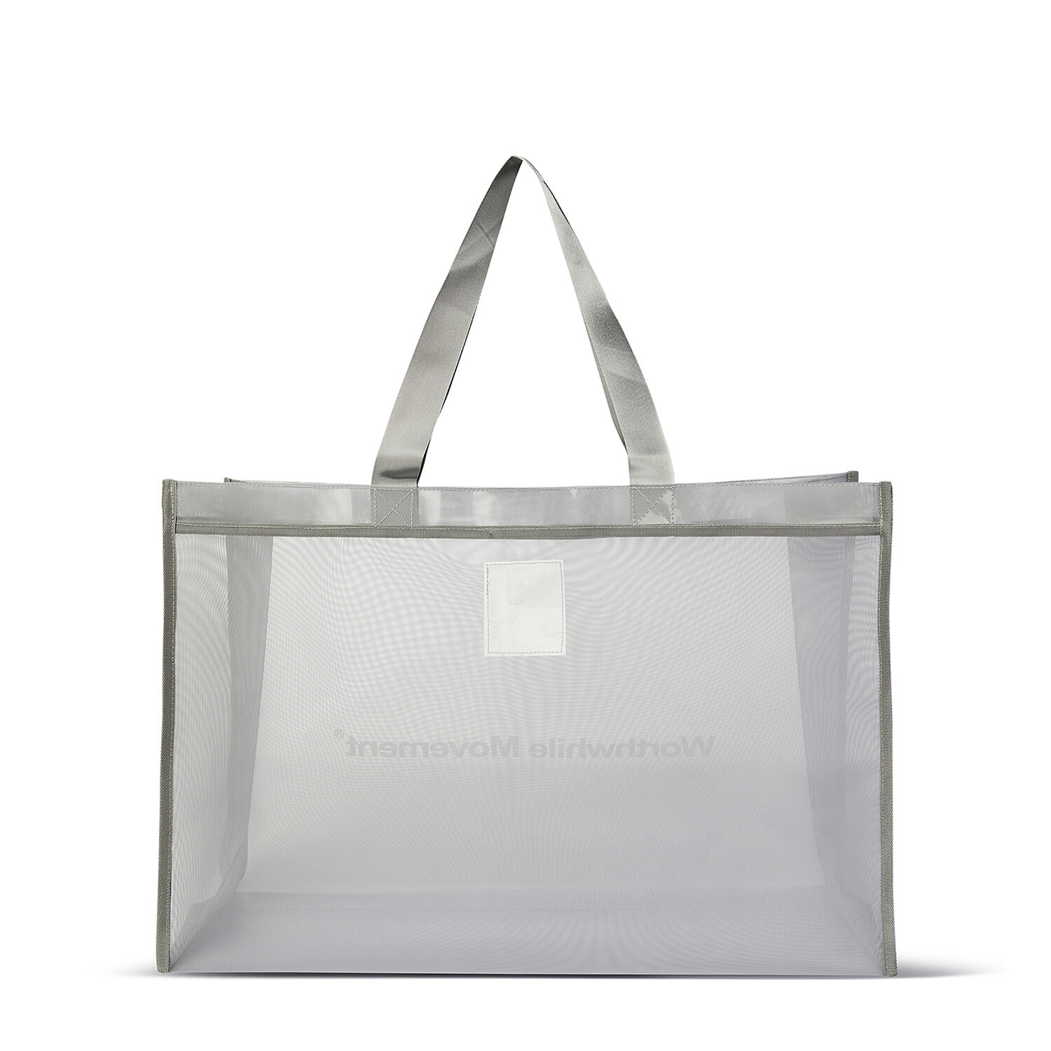 고밀도 나일론 메쉬원단으로 만들어진 쇼퍼백입니다. 소재 특성상 내부가 보이고 시원한 인상을 주는 제품입니다. 큰 사이즈에 비해 가벼운 무게로 다양한 환경이나 상황에서 사용 가능합니다. 브랜드 런칭 5주년 기념 팝업 스토에서 선 공개한 제품으로 로고가 전면에 프린트되어 있습니다.