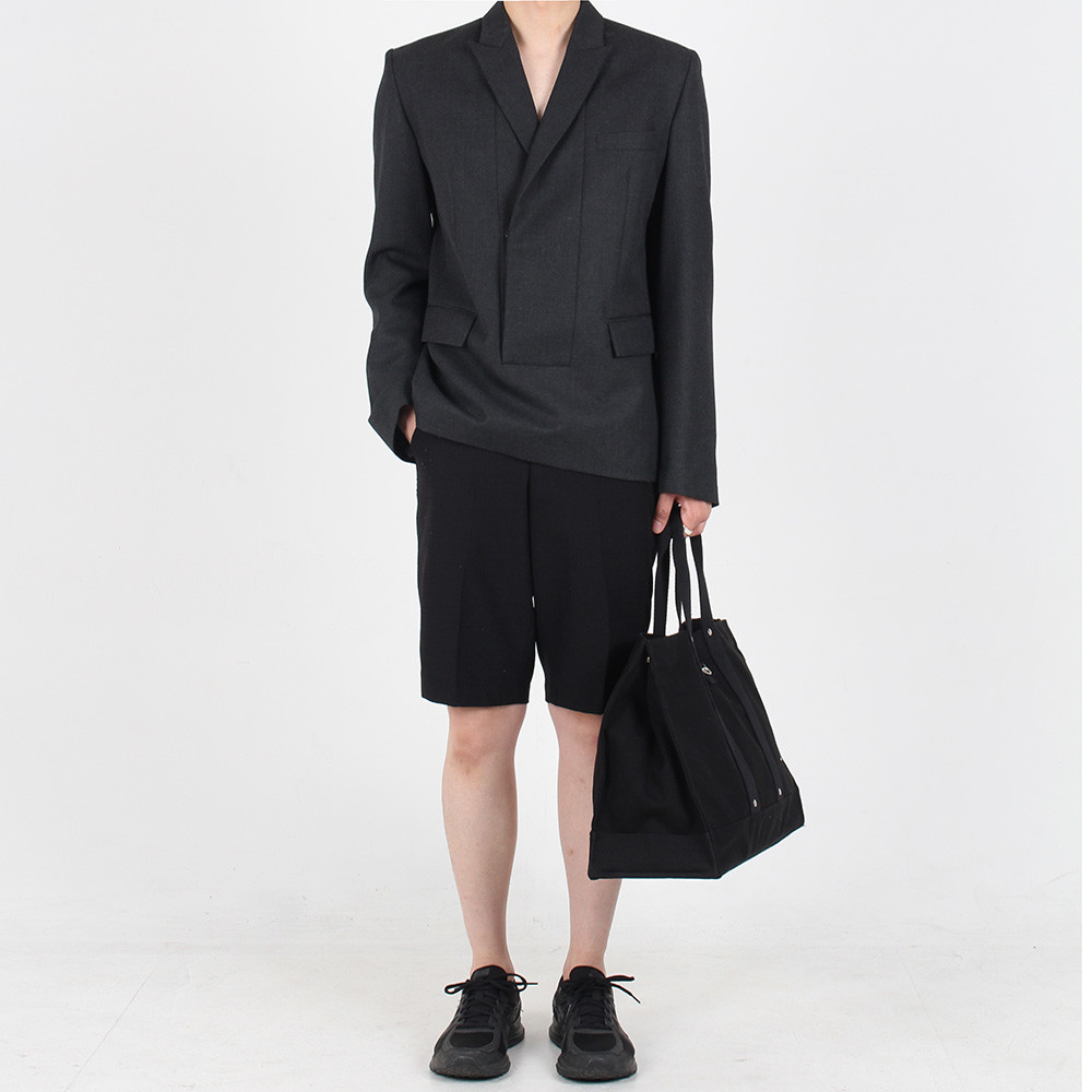 스냅버튼을 통해 가방의 형태를 잡아주거나 내부 용량에 따라 가방의 사이즈를 조절할 수 있도록 하였습니다.