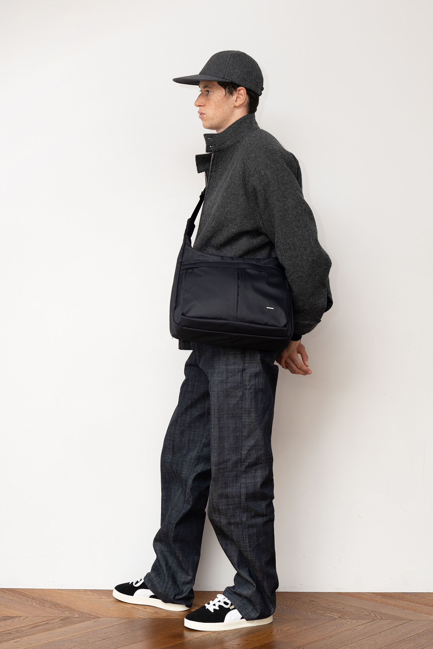 ▶ SIZE : FREE (상세 사이즈 하단 정보 참조) ▶ COLOR : Dark gray ▶ FABRIC : Wool 70% / Nylon 30% (TAKISADA-NAGOYA Cordura® combat wool oxford & Lylex bonding) - [Made in JAPAN] ▶ ORIGIN : Korea