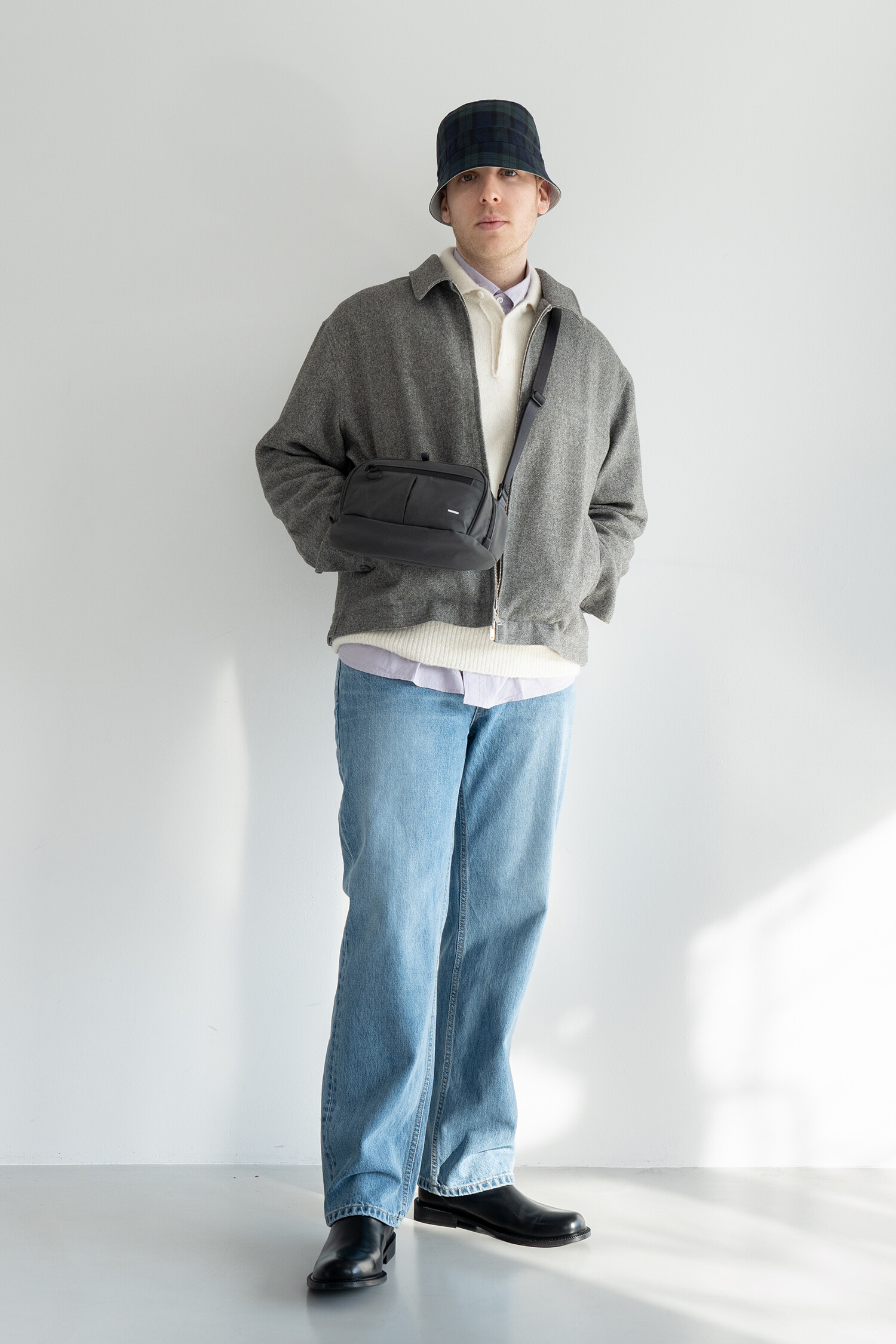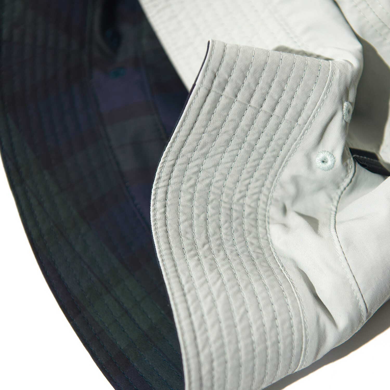 리버서블 버킷햇은 말 그대로 다른 두 종류의 원단을 같이 사용해서 양면으로 모두 쓸 수 있는 모자입니다. 적절한 깊이감과 두 개의 옵션으로 선택 가능한 사이즈까지, 누구나 쉽게 즐길 수 있고 옷차림과 상황에 맞게 뒤집어쓰는 재미도 있습니다. 겉면에는 Tipico 사의 블랙 워치 체크 원단을 사용했는데 수피마 코튼으로 만들어진 원단으로 부드러운 터치감과 탄탄한 질감이 특징입니다. 내부에 사용한 서플렉스 원단은 면과 같은 부드러운 터치감을 갖고 있지만 면에 비해 자외선 차단 및 투습, 발수 효과가 뛰어나고 통기성도 좋습니다. 테프론 가공을 통해 발수력도 좋은 편입니다.
