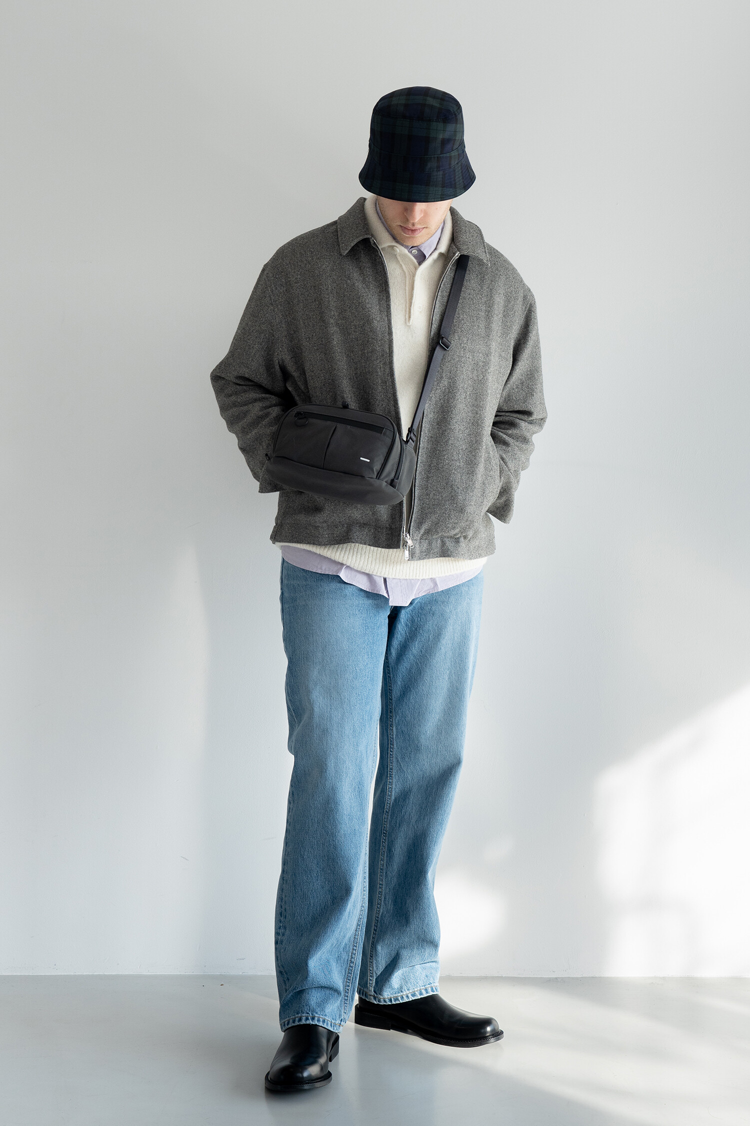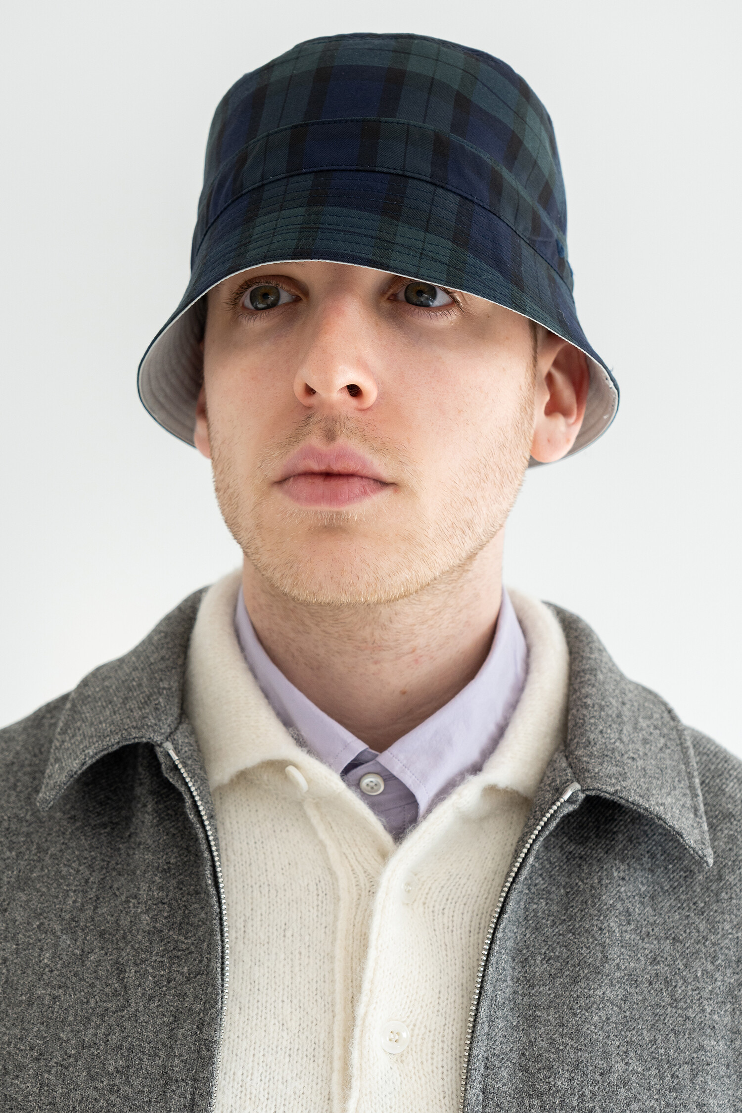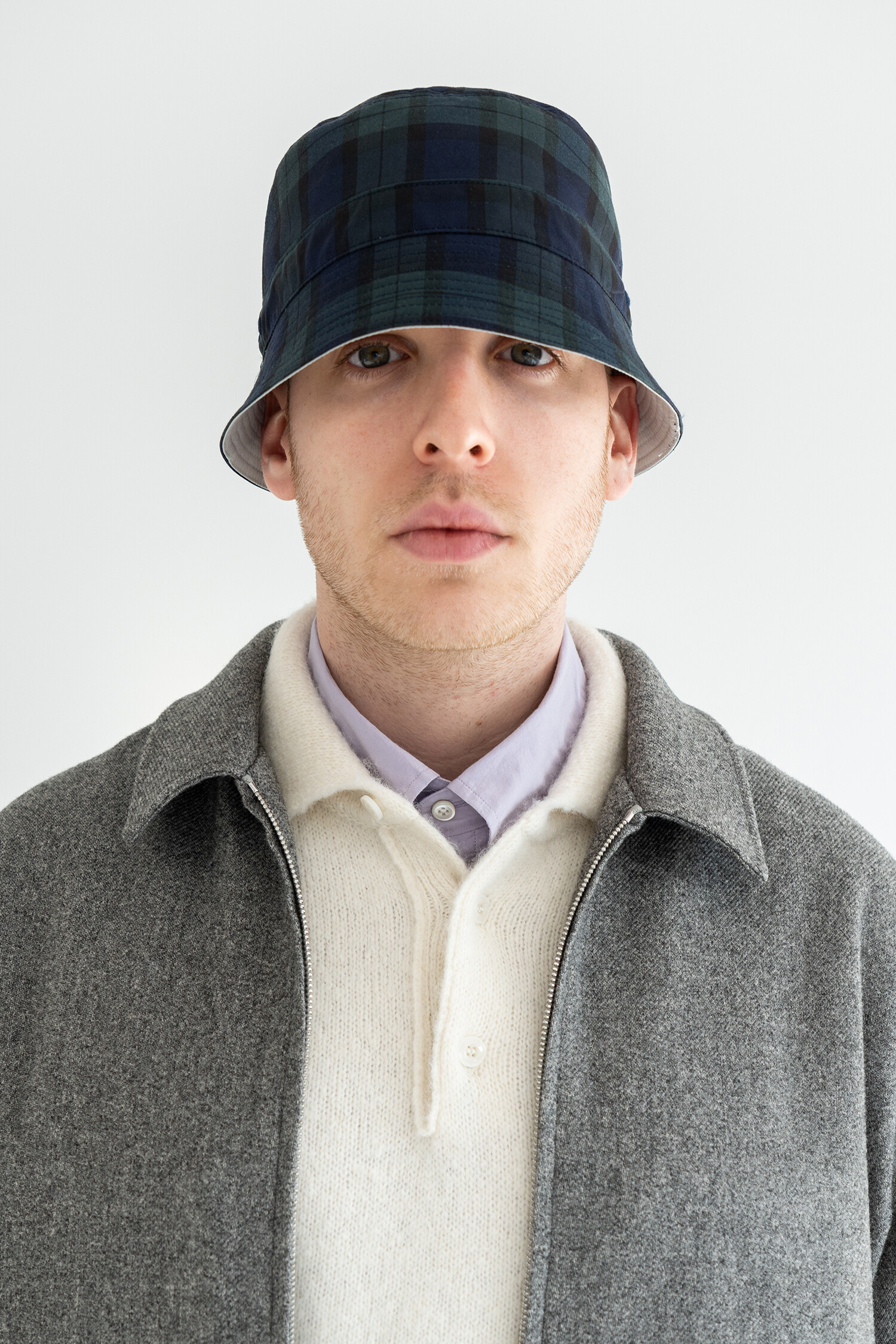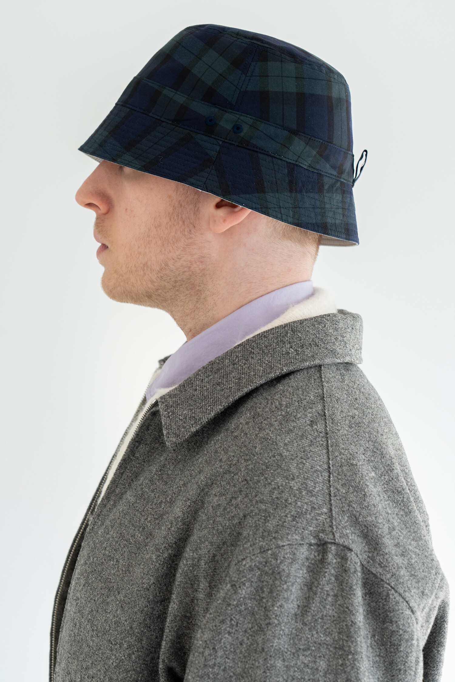 REVERSIBLE BUCKET HAT (Black watch & Mint gray)