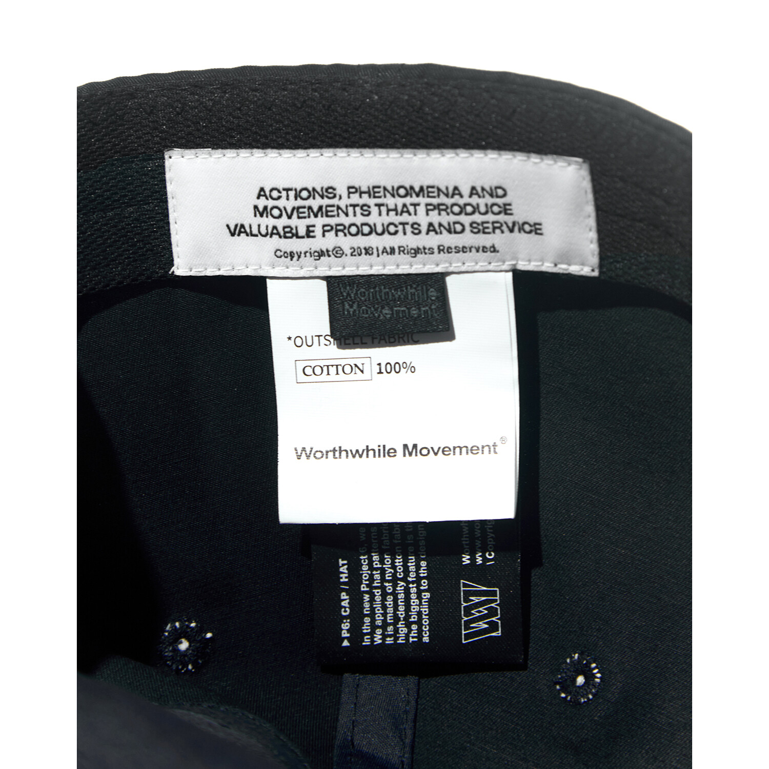 : 월스와일 무브먼트의 모자 카테고리인 PROEJCT 6를 자수로 표현 : 크고 길게 뻗은 롱 바이저 적용 : 수피마 코튼 개버딘 원단에 클리어 컷 가공으로 매끈한 터치감과 깔끔한 표면감 : 기능성 쿨론 스웻밴드를 통해 쾌적한 피팅감 제공 : 6 Pannel 적용 / 깊이감이 있는 핏 : P6 시그니처 디테일 행루프(Hang loop) : 빈티지 가공된 니켈 버클과 제원단 밴드로 사이즈 조절 : 플랫 바이저 적용 (취향에 따라서 챙을 휘어서 착용도 가능합니다.)