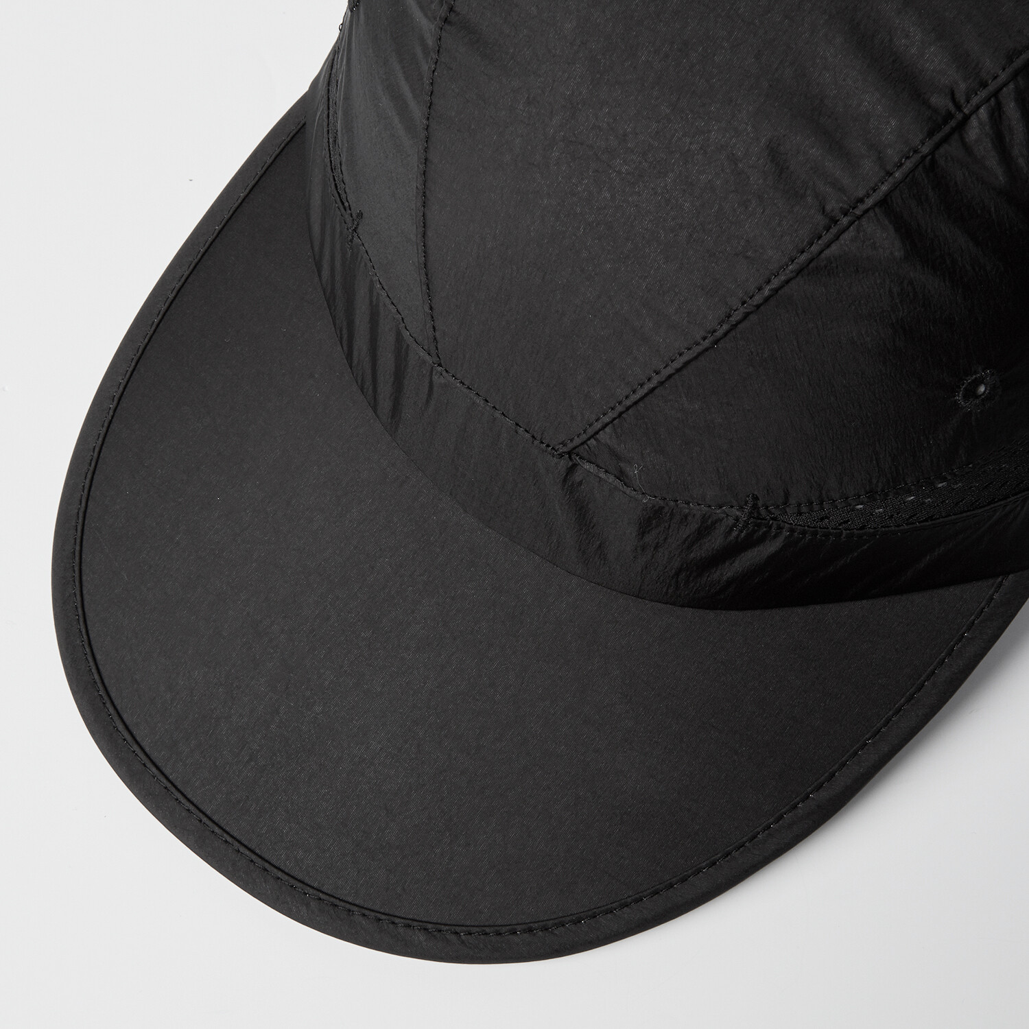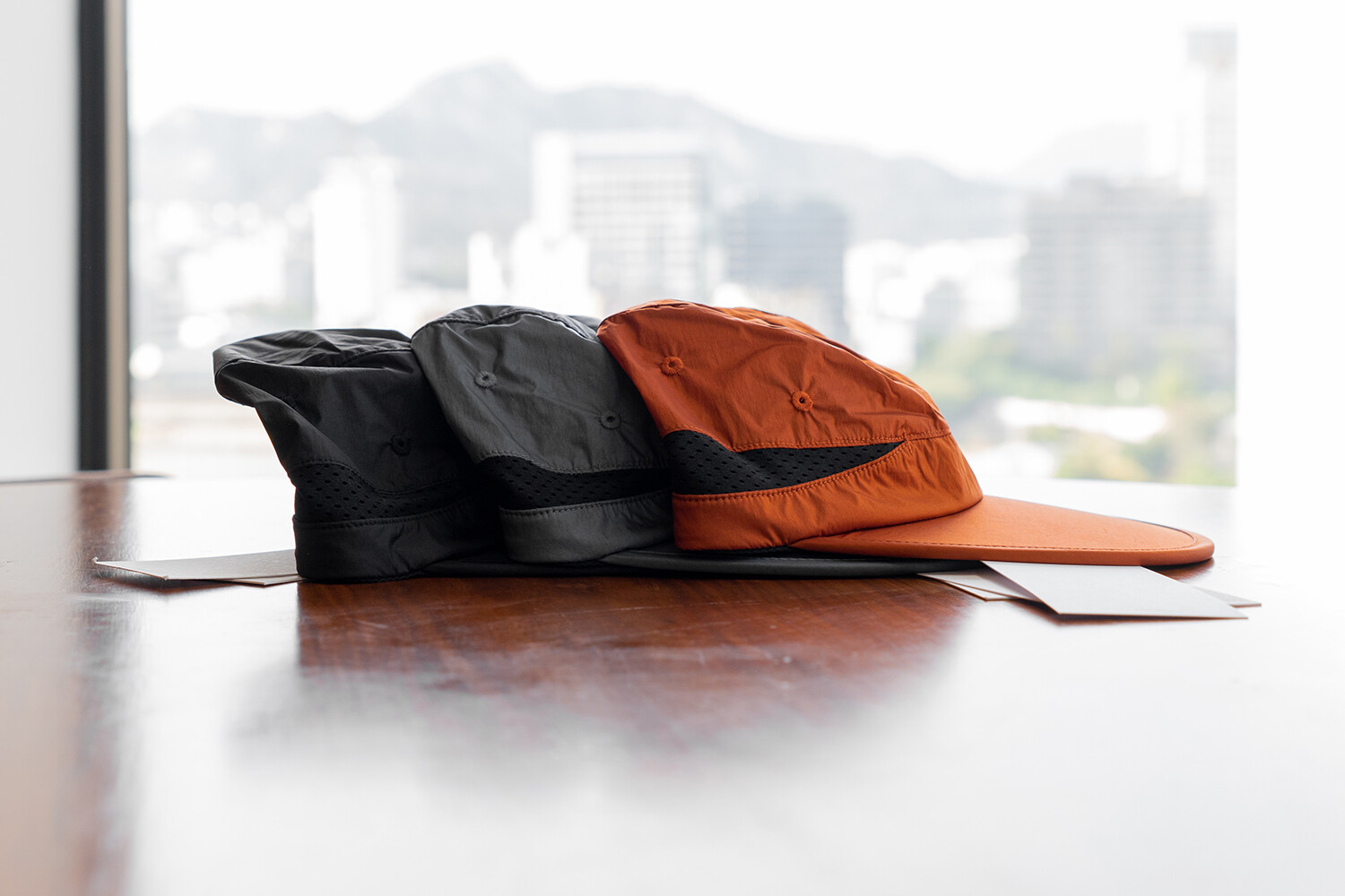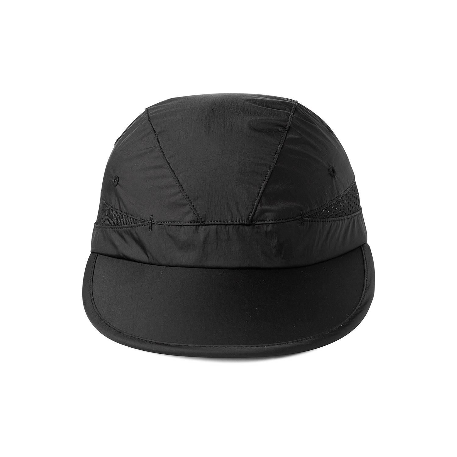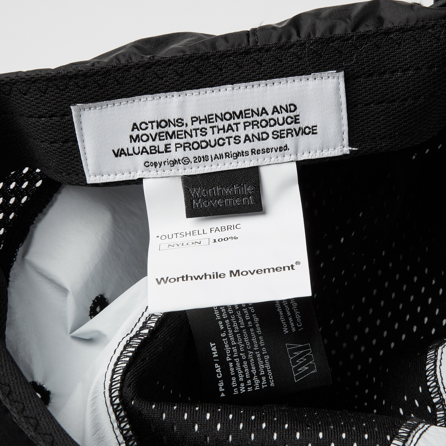 운전자 뒤에 위치한 트윈 터보차저 엔진은 내부 메쉬원단과 멤브레인 코팅 원단을 2중으로 배치한 뒤 절개를 내어 벤틸레이션 디테일로 표현하였고 상단에 한 줄 스티치로 라인을 만들어 벌어지지 않게 고정했습니다. 후면부에는 월스와일 무브먼트 캡 라인의 시그니처 디테일인 제원단 행루프가 들어가 있고, E-스트링을 사용하여 간편하게 사이즈 조절이 가능합니다. 스트링은 Nifco社 스토퍼와 Woojin plastic社의 코드앤드를 사용하여 견고하게 마감했습니다.내부에는 쿨론 스웻밴드가 적용되어 쾌적하게 피팅이 가능합니다. 메인 원단으로는 PU 코팅된 멤브레인 나일론 원단을 사용하여 굉장히 가볍고 부드러울 뿐 아니라 방수, 방풍, 투습 등에 효과적입니다. 디자이너의 오랜 고민과 많은 샘플 수정이 들어간 제품이며, 아웃도어 브랜드 모자 제작과 일본 수출 등을 진행하는 모자 전문공장에서 숙련된 햇 메이커에 의해 제작되었습니다.