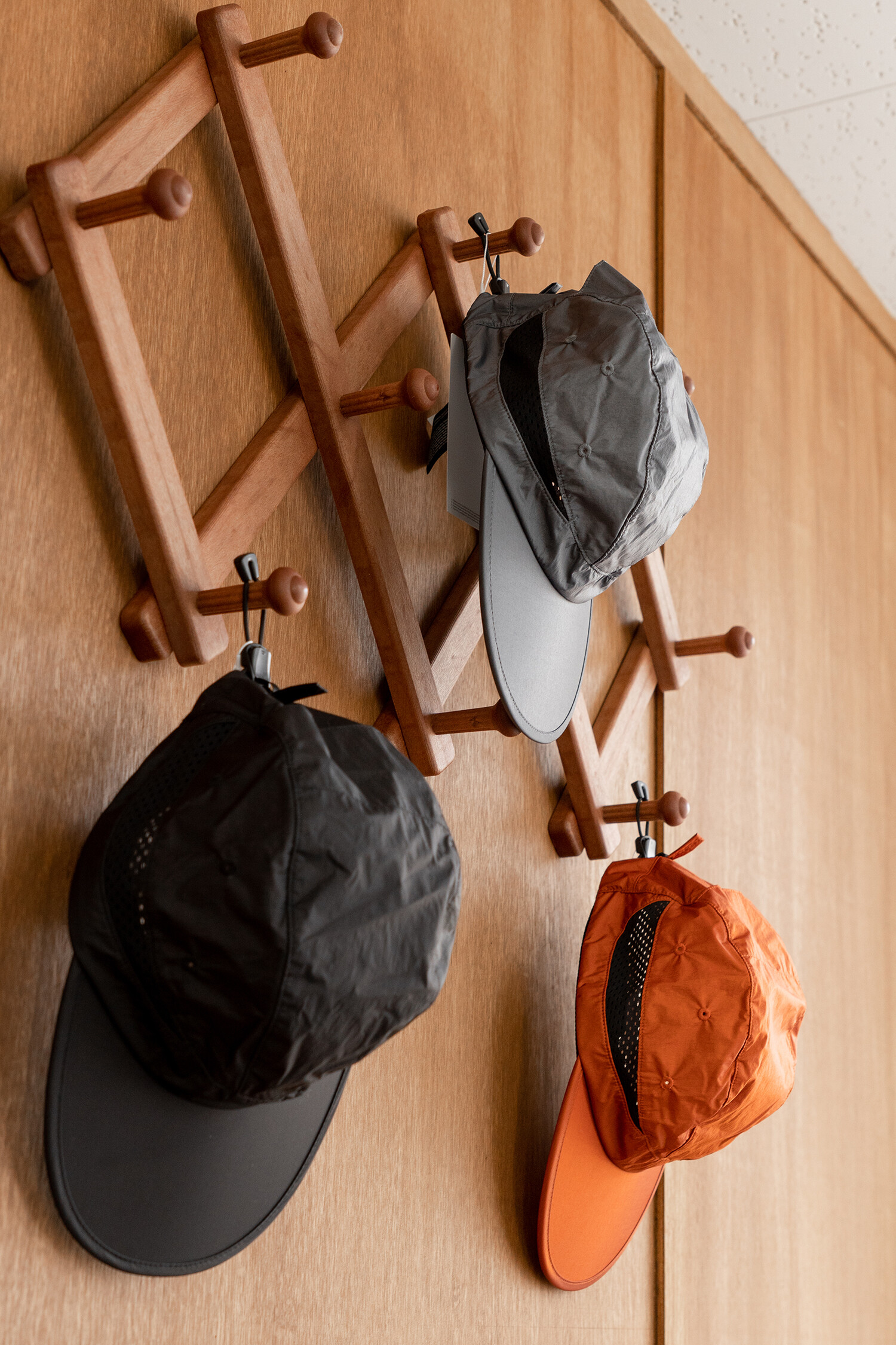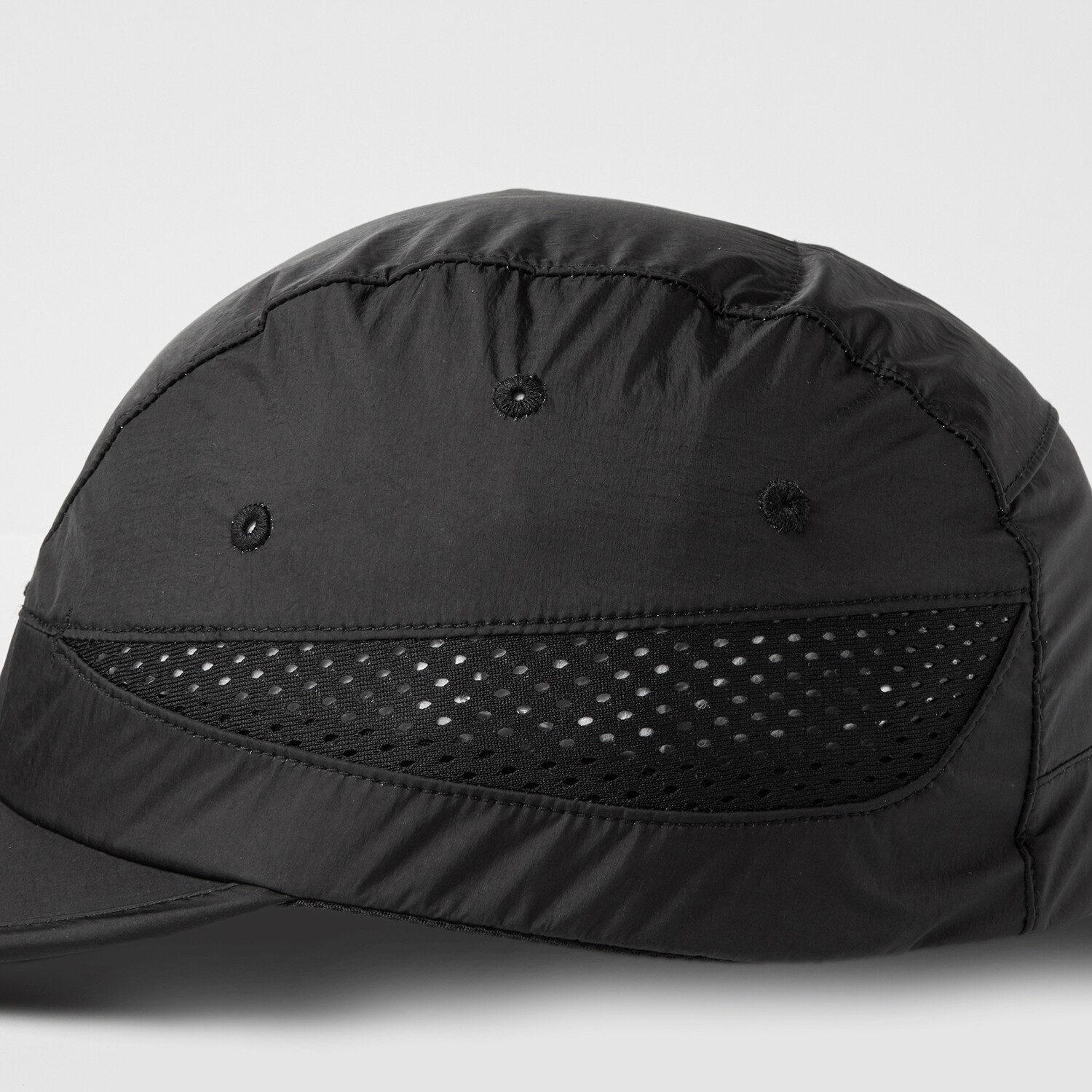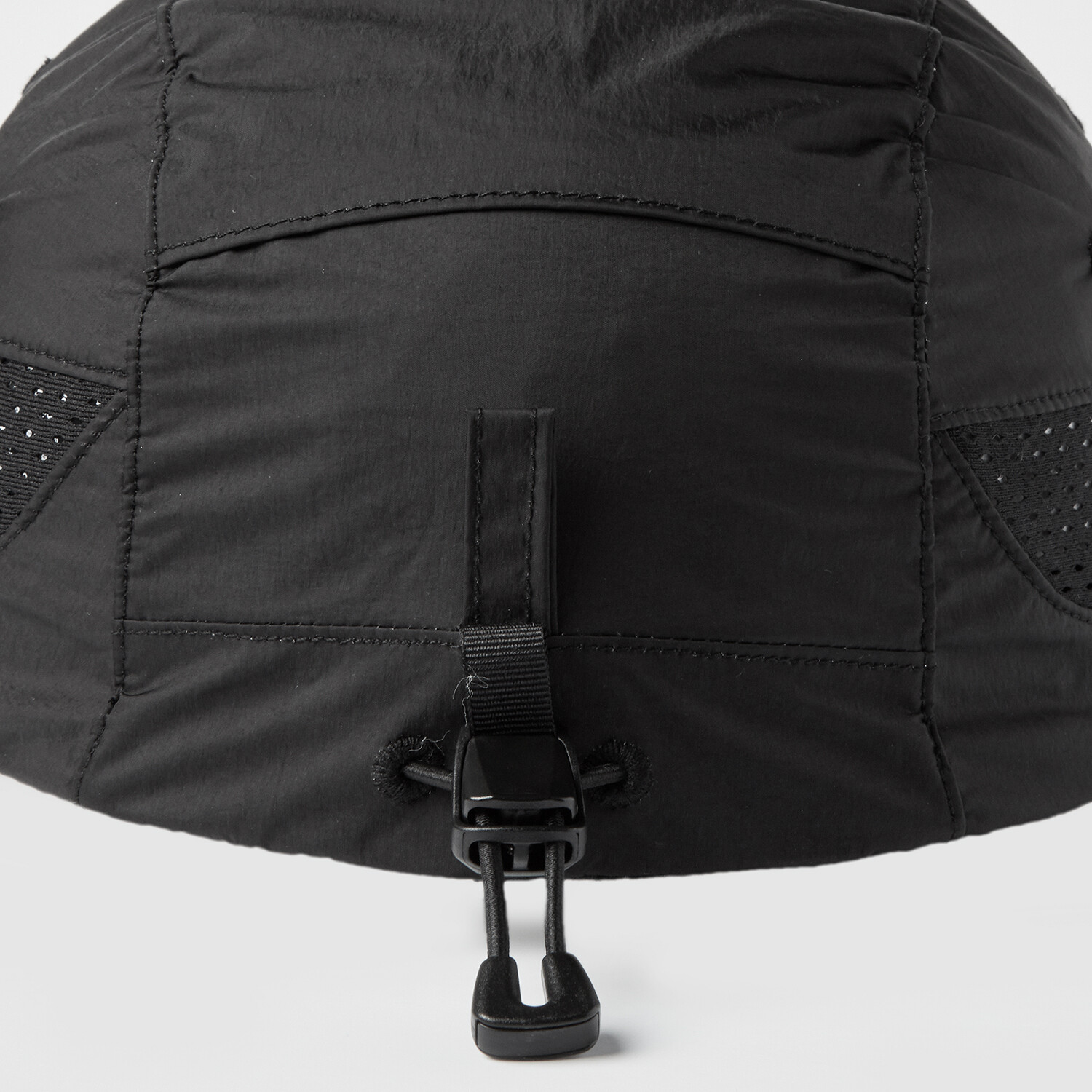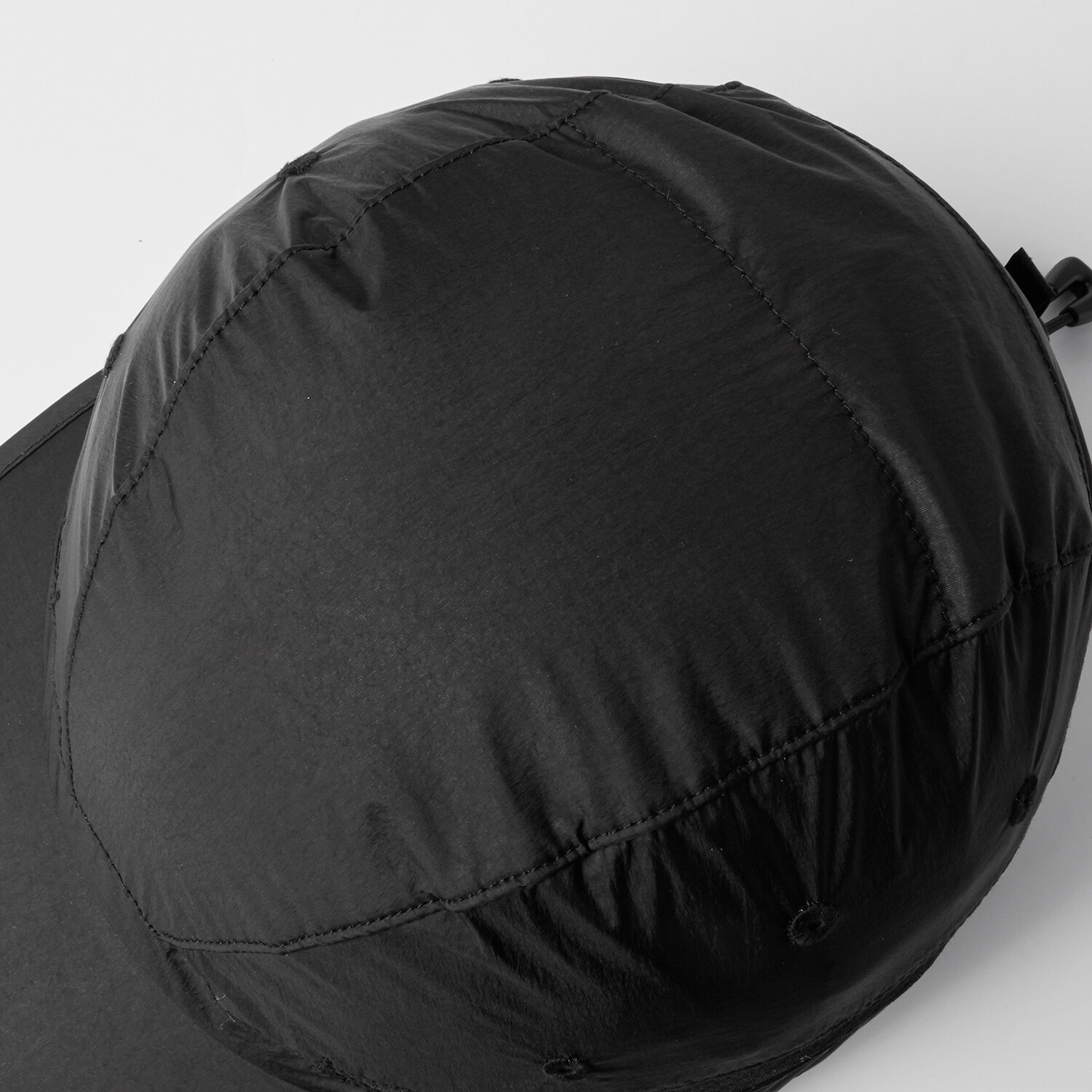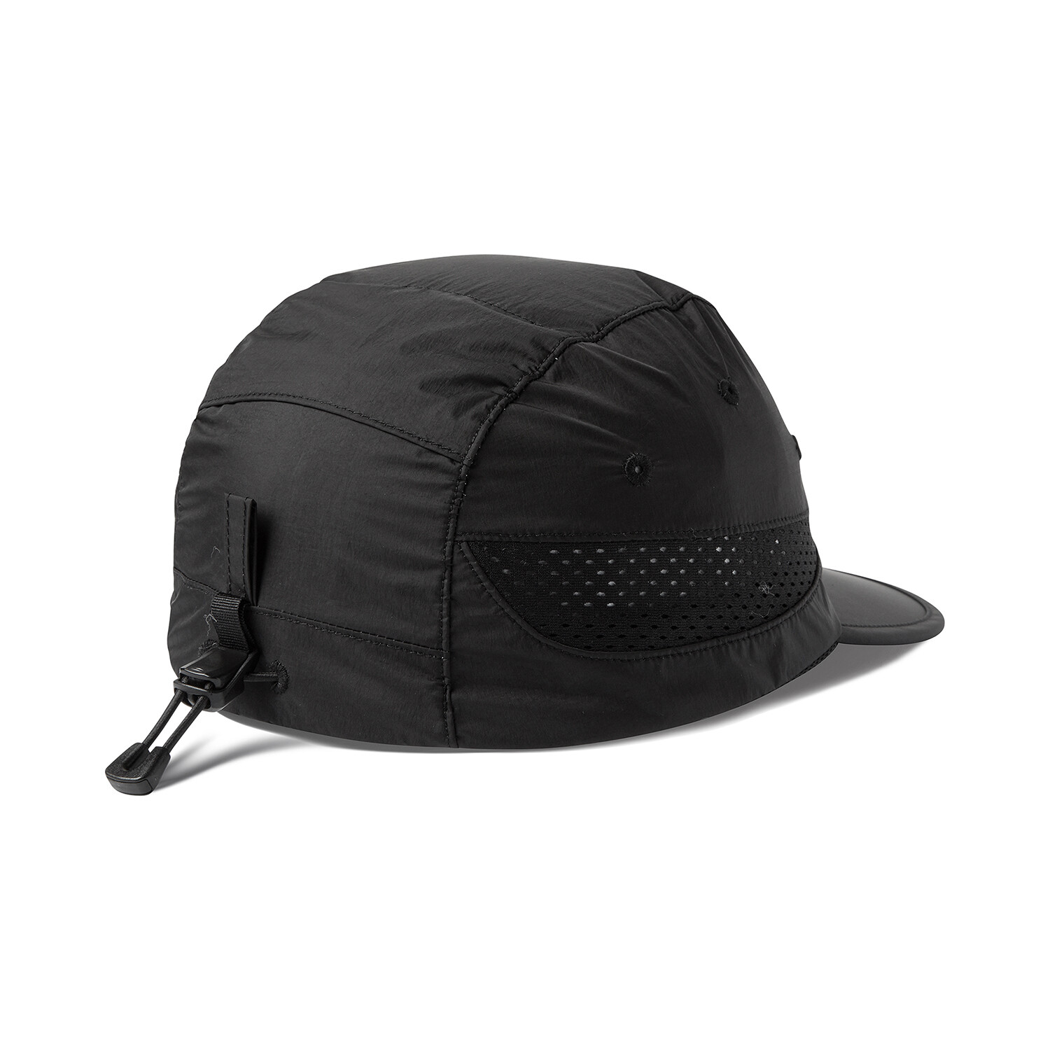 운전자 뒤에 위치한 트윈 터보차저 엔진은 내부 메쉬원단과 멤브레인 코팅 원단을 2중으로 배치한 뒤 절개를 내어 벤틸레이션 디테일로 표현하였고 상단에 한 줄 스티치로 라인을 만들어 벌어지지 않게 고정했습니다. 후면부에는 월스와일 무브먼트 캡 라인의 시그니처 디테일인 제원단 행루프가 들어가 있고, E-스트링을 사용하여 간편하게 사이즈 조절이 가능합니다. 스트링은 Nifco社 스토퍼와 Woojin plastic社의 코드앤드를 사용하여 견고하게 마감했습니다.내부에는 쿨론 스웻밴드가 적용되어 쾌적하게 피팅이 가능합니다. 메인 원단으로는 PU 코팅된 멤브레인 나일론 원단을 사용하여 굉장히 가볍고 부드러울 뿐 아니라 방수, 방풍, 투습 등에 효과적입니다. 디자이너의 오랜 고민과 많은 샘플 수정이 들어간 제품이며, 아웃도어 브랜드 모자 제작과 일본 수출 등을 진행하는 모자 전문공장에서 숙련된 햇 메이커에 의해 제작되었습니다.