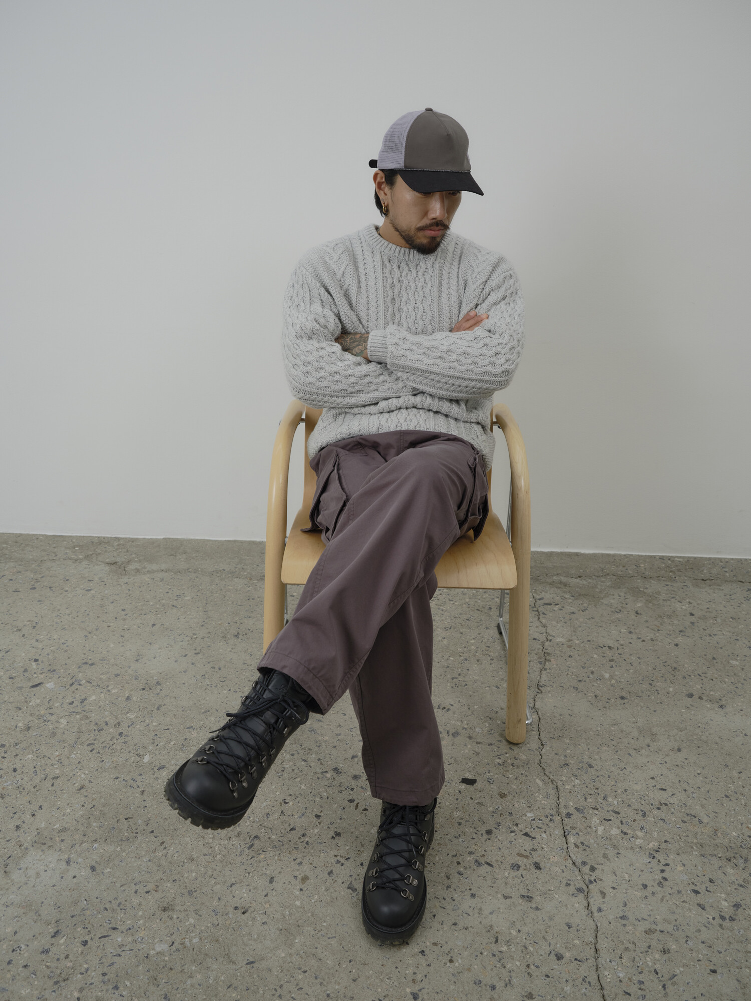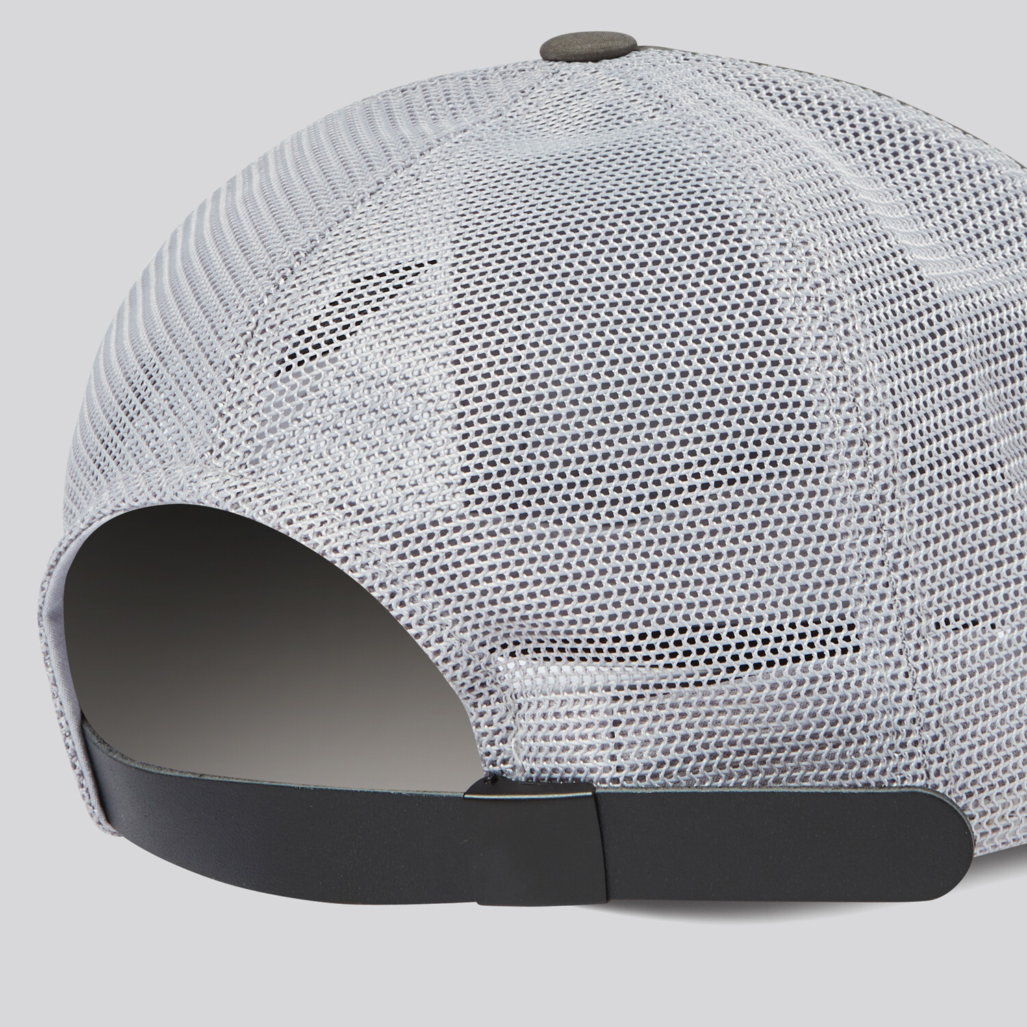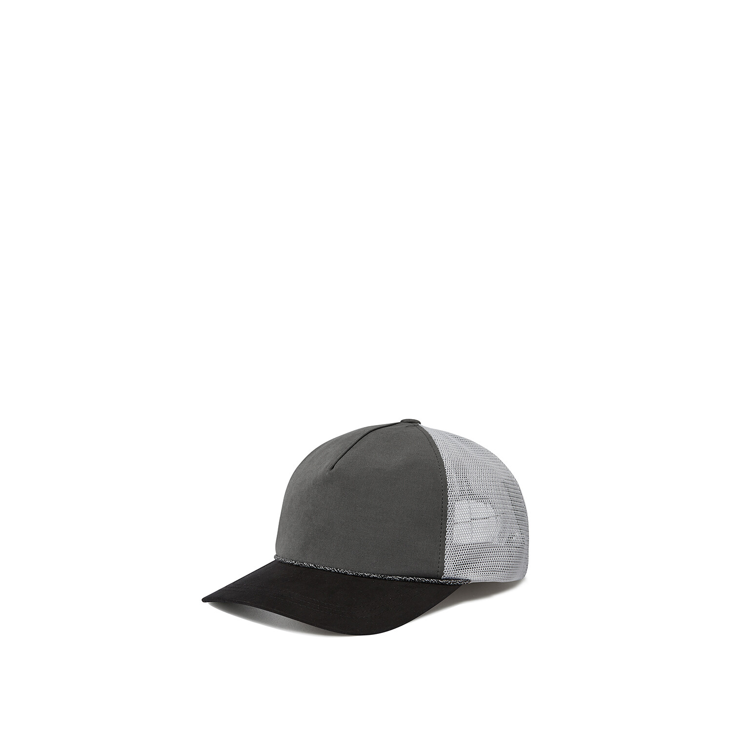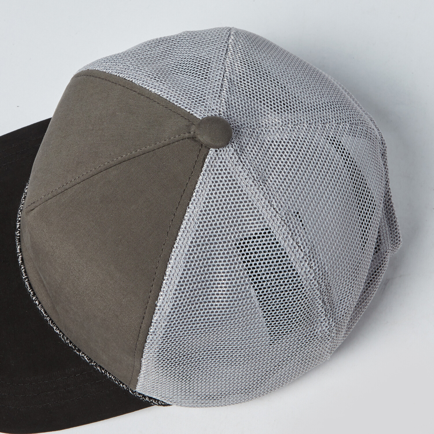트러커 캡에서 흔하게 사용되는 두툼한 네오프렌 소재나 높은 모자의 패턴 대신 소프트한 원단을 적용하고 두상을 감싸는 형태의 제품으로 제작했습니다. 제품의 주요 포인트가 되는 챙 위의 스트링은 일본에서 수입한 멜란지 엘라스틱 스트링으로 빈티지하고 유니크한 질감과 디자인특징입니다. 헤드의 전면부는 피치 가공된 NPC교직 원단과 적절한 두께의 심지를 함께 사용하였고, 후면에는 유연한 메쉬 원단을 사용하여 전체적은 부드러운 터치감과 안정감있고 편안한 착용감을 느끼실 수 있습니다. 여유로운 길이의 리얼 레더 밴드와 흑무광(또는 황동)버클을 통해 사이즈를 조절할 수 있고, 56호~62호까지 폭넓은 사이즈를 커버합니다.