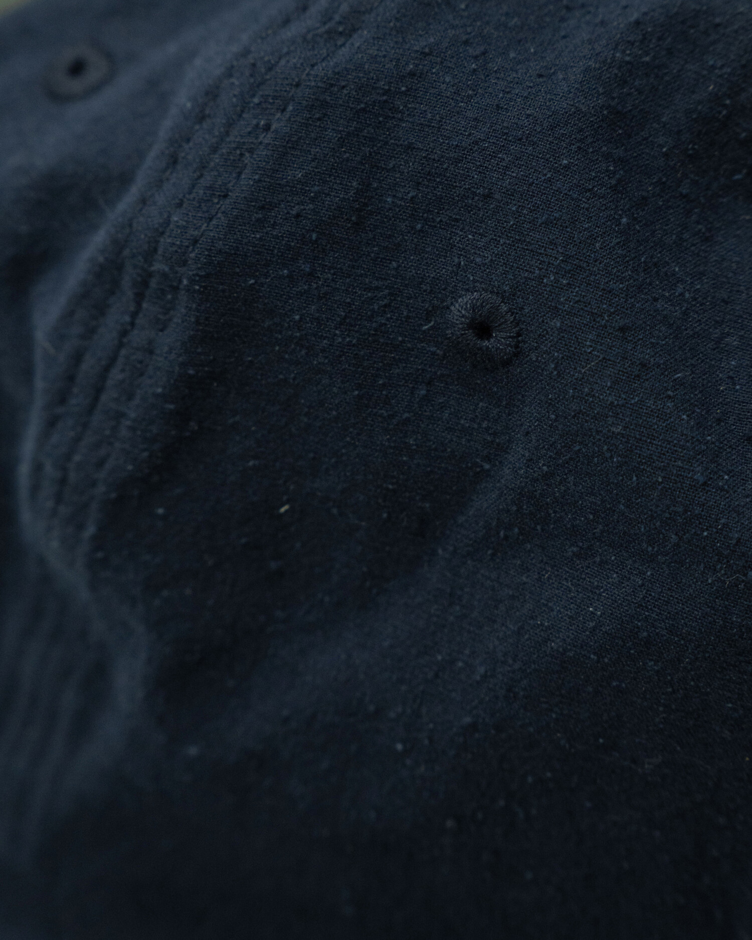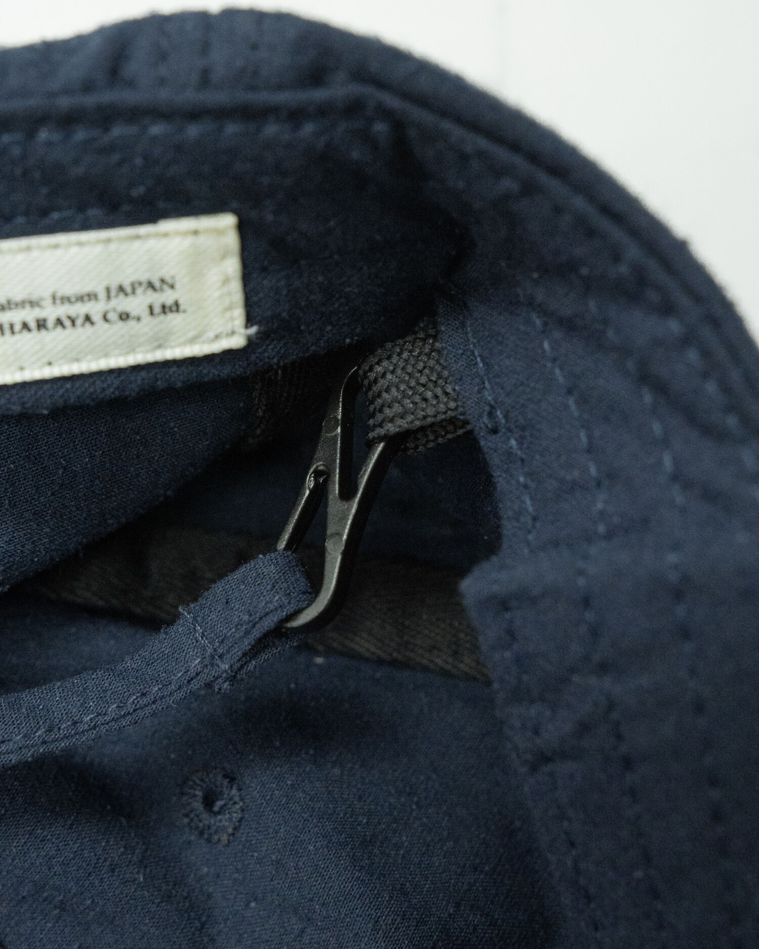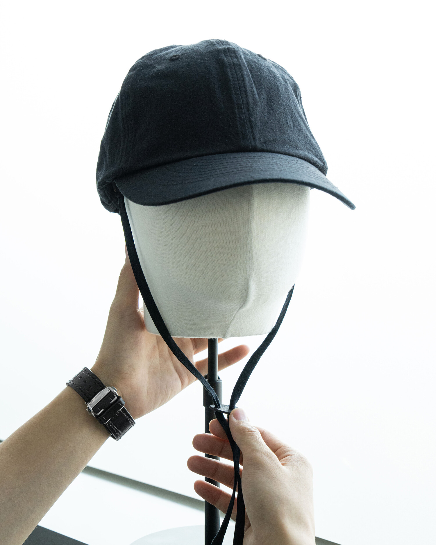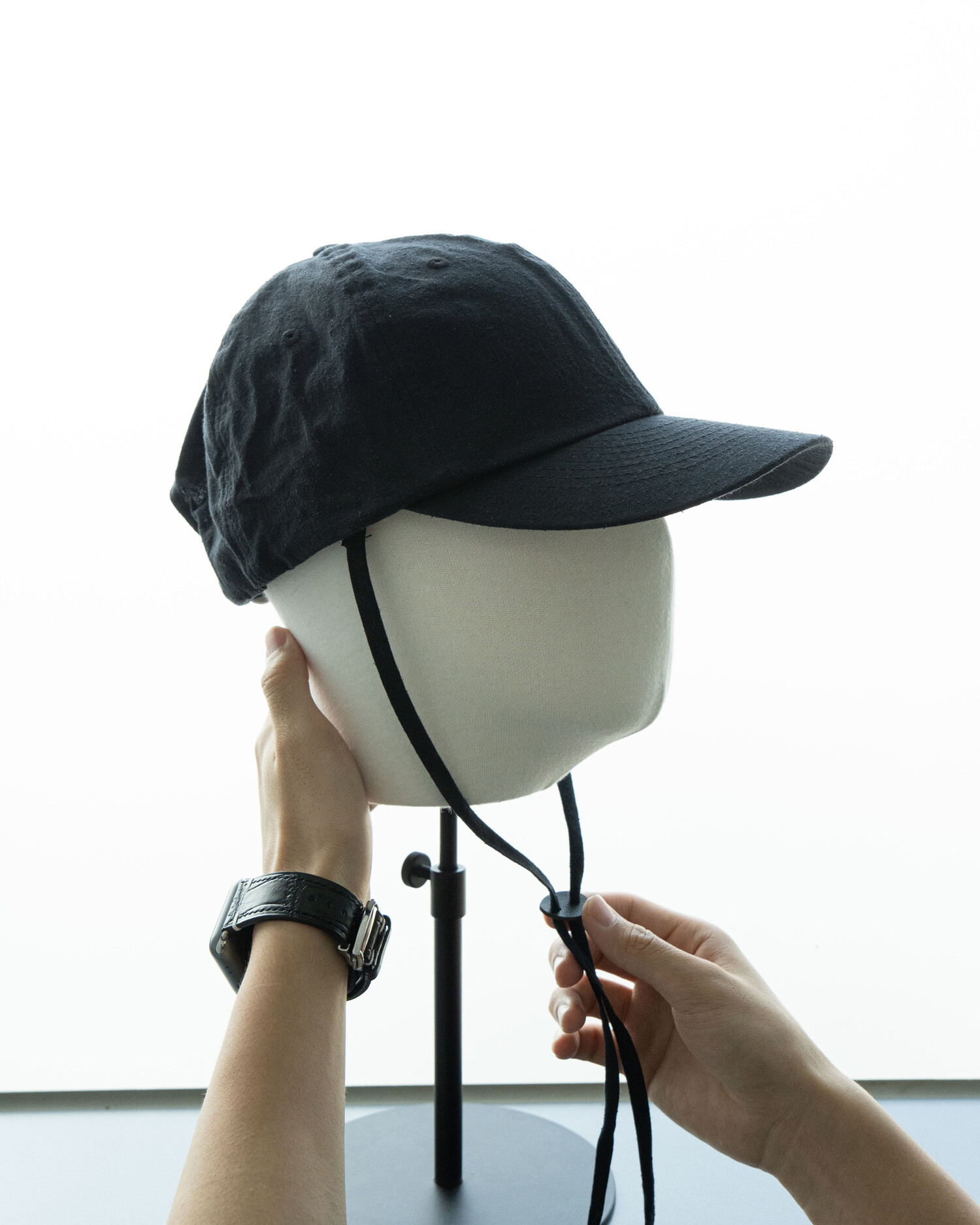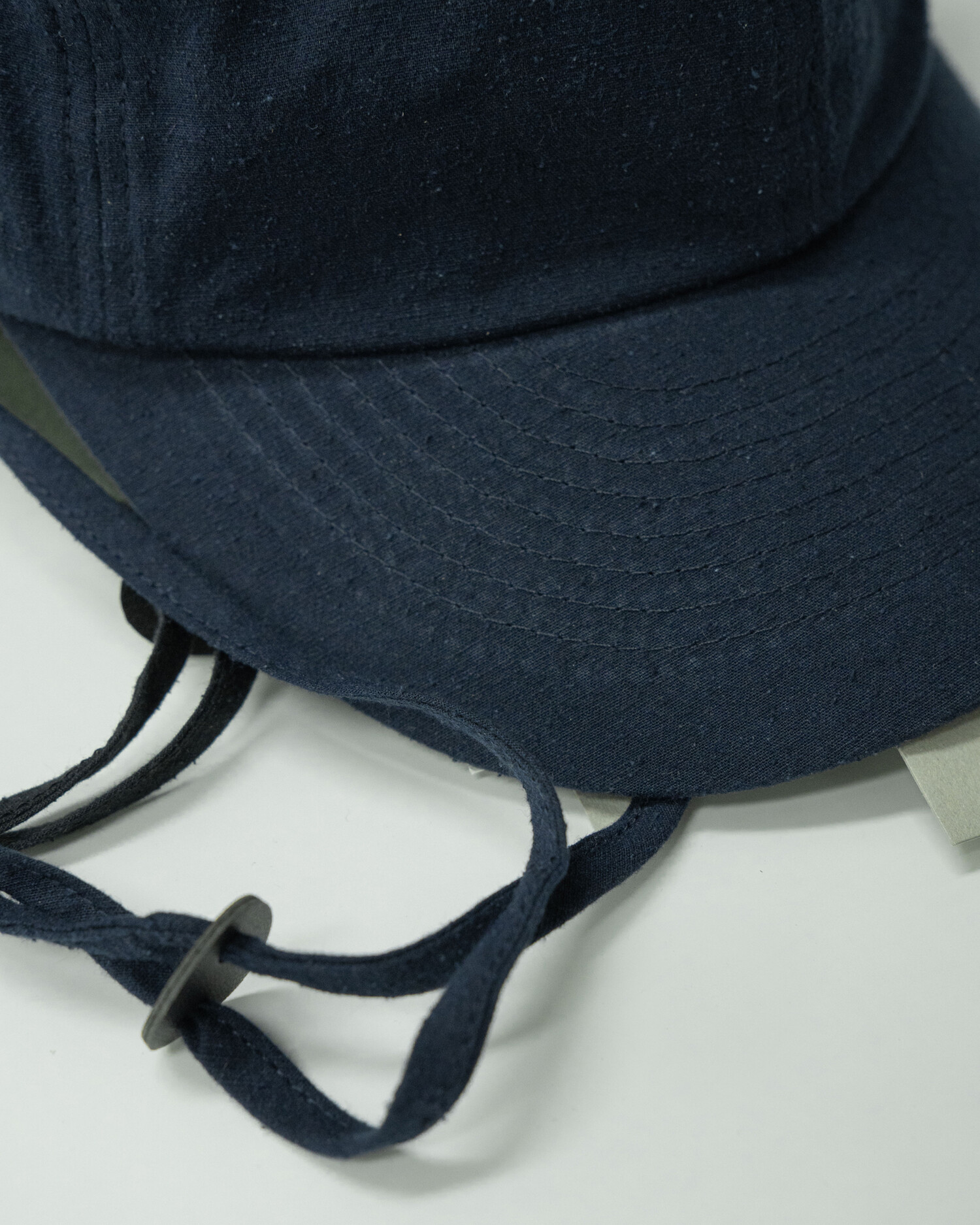 탈부착이 가능한 스트링을 통해 다양한 스타일링 및 연출이 가능한 캡입니다. 원단은 Oharaya 社 의 코튼과 실크 혼용 원단으로 제작했습니다. 특히 이 원단은 위사에 노일 실크를 사용하여 독특한 네프감과 요철감을 낸 것이 특징이며 소재 특유의 자연스러운 분위기와 터치감이 매력적인 제품입니다. 원단이 얇아서 통기성이 좋고 오래 착용해도 답답하지 않습니다. 깊고 넓은 핏으로 누구나 깊숙하게 눌러 착용하기 좋으며, 챙 길이는 컴팩트하게 구성하여 착용했을 때 경쾌하고 가벼운 피팅감이 장점입니다.