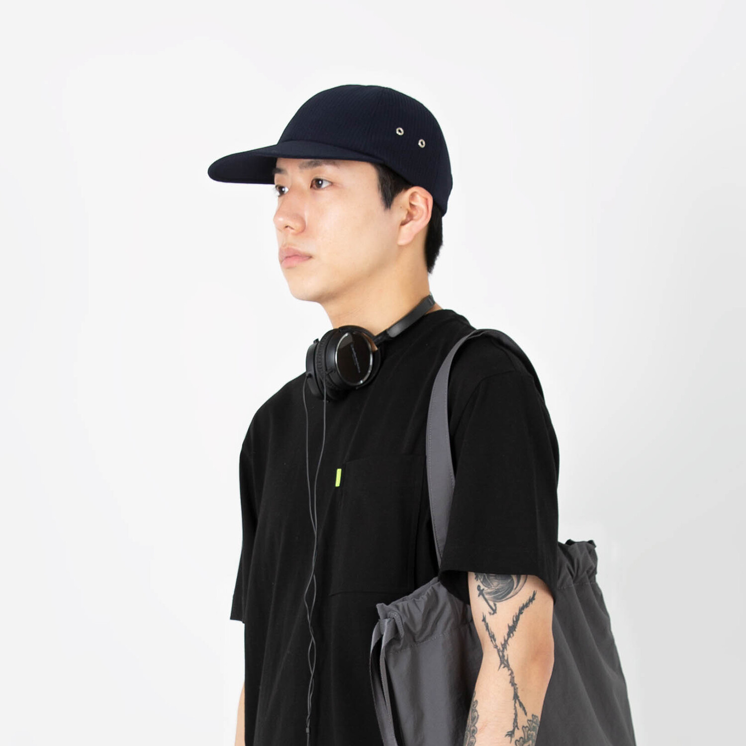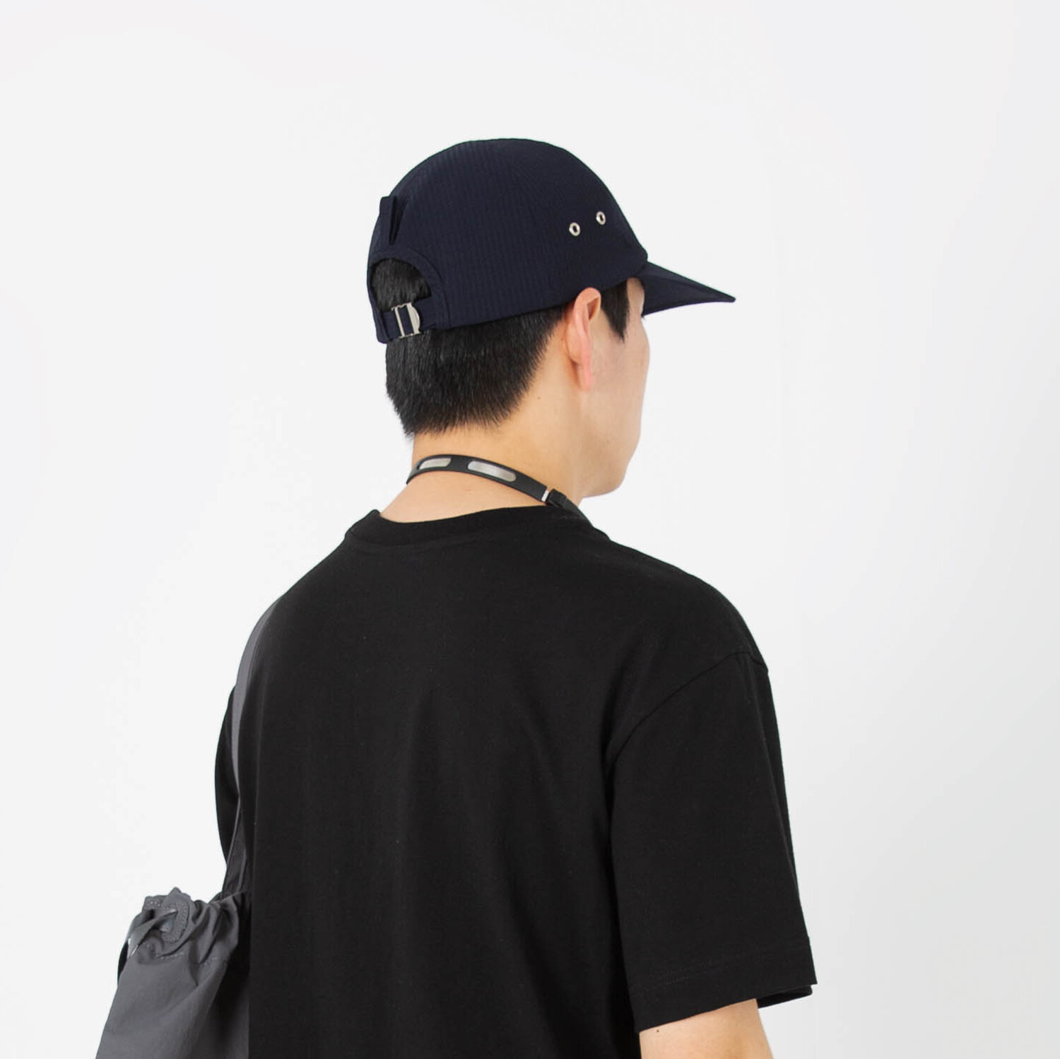 해당 제품에 사용된 원단은 일본산 Piece Dyed Seersucker 원단으로 짙은 네이비와 블랙 컬러의 조합과 은은하게 드러나는 스트라이프 패턴이 매력적입니다. 또한 시어서커 특유의 얇고 주름진 질감을 느끼실 수 있습니다. 시어서커 원단은 경사 방향으로 수축이 일어나있는 평직의 면직물로 제직속도가 느려서 저수익, 고비용의 원단이지만 특유의 청량한 느낌과 가볍고 부드러운 착용감이 좋아서 추가로 기획 및 소개하게 되었습니다. 서브마린 캡은 기존의 제품들보다 더욱 깊이가 있는 핏이며 플랫한 바이저는 기호에 맞게 휘어서 착용도 가능합니다. 내부 땀받이(스웻 밴드)에는 흡습/속건 기능성 소재를 사용하여 쾌적한 착용감을 제공합니다.