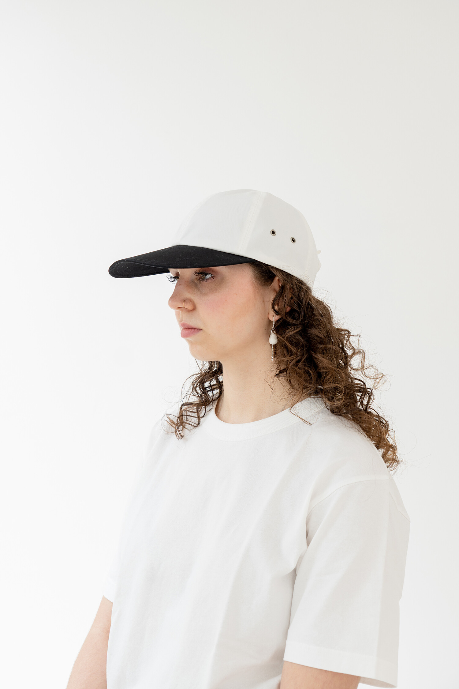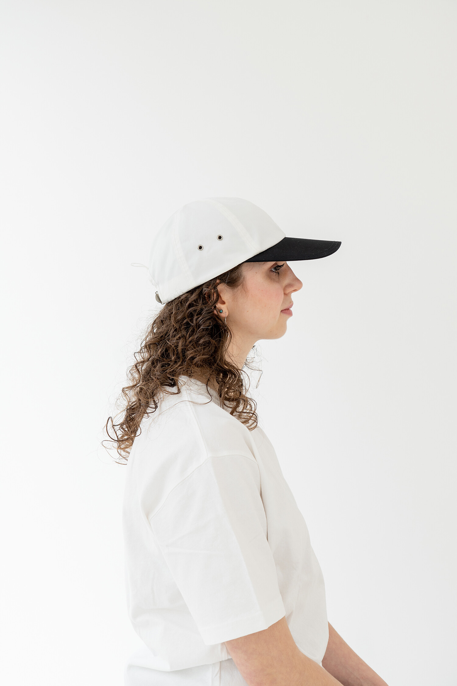 해당 제품에 사용된 원단은 클리어 컷 가공된 수피마 코튼 개버딘으로 조직이 선명하고 치밀하며 굉장히 부드러운 촉감을 갖고 있습니다. 잠수함의 창문을 연상케 하는 양측의 무광 니켈 아일렛을 배치하여 통기성을 고려했습니다. 서브마린 캡은 기존의 제품들보다 더욱 깊이가 있는 핏이며 플랫한 바이저는 기호에 맞게 휘어서 착용도 가능합니다. 내부 땀받이(스웻 밴드)에는 흡습/속건 기능성 소재를 사용하여 쾌적한 착용감을 제공합니다.