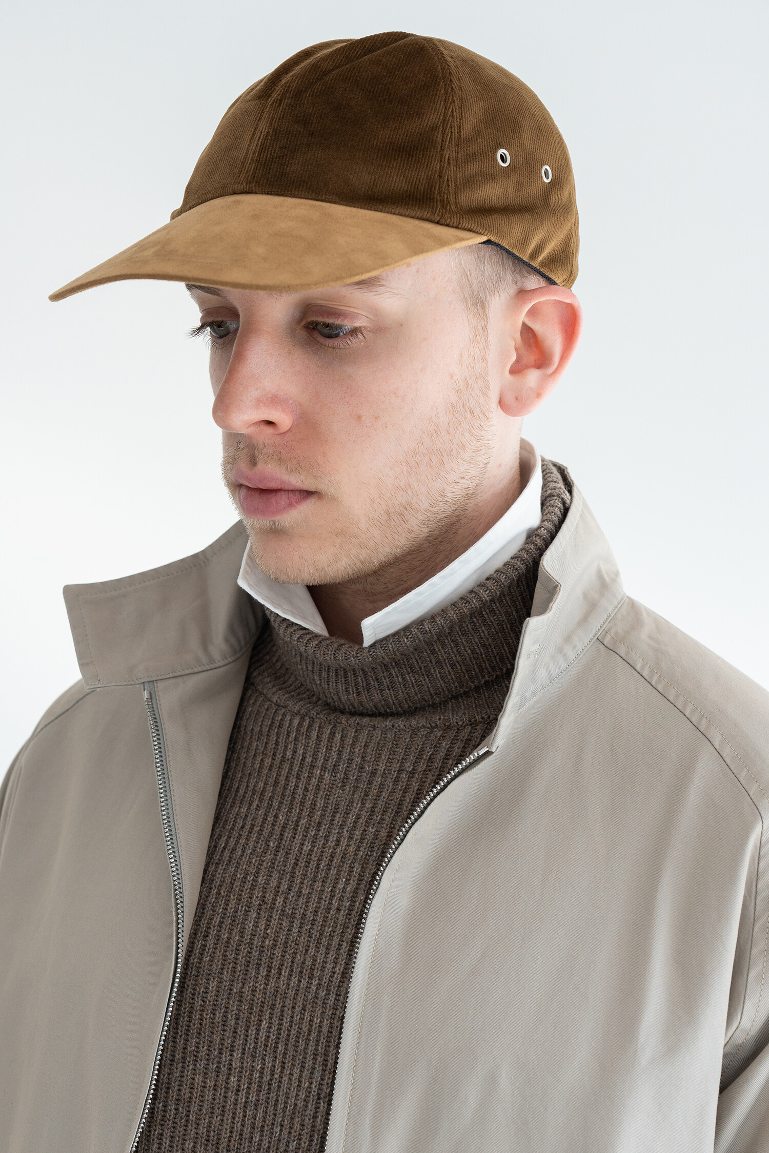 해당 제품에 사용된 원단은 일본의 유명 원단 레이블인 STYLEM® 과 VANCET® 사의 페브릭이 적용되었습니다. 모자의 중심이 되는 헤드 부분에는 굉장히 부드럽고 섬세한 터치감을 갖고 있는 STYLEM® 의 코듀로이 16W* 원단을 사용했습니다. 마치 벨벳과 같은 터치감과 고급스러운 광택감을 보여줍니다. 바이저에는 유사한 브라운 계열의 에코 스웨이드를 사용하여 캐쥬얼한 캡이지만 고급스럽고 포근한 느낌을 연출했습니다. 플랫한 바이저는 기호에 맞게 휘어서 착용도 가능하고 내부 땀받이(스웻 밴드)에는 흡습/속건 기능성 소재를 사용하여 쾌적한 착용감을 제공합니다.