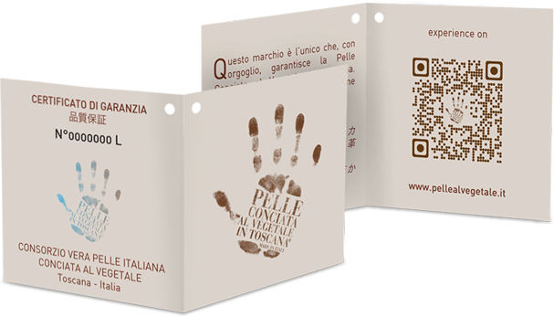 The Guarantee certifies the traceablity of the origin, the correct execution of the tanning process and the natural characteristics of the vegetable-tanned leather produced by the tanneries associated with the consortium. Each trademarked certificate is printed with anti-counterfeiting techniques and bears a progressive serial number that allows the consortium to identify, at any time and anywhere in the world, both the tannery supplying the leather and the manufacturer of the product.