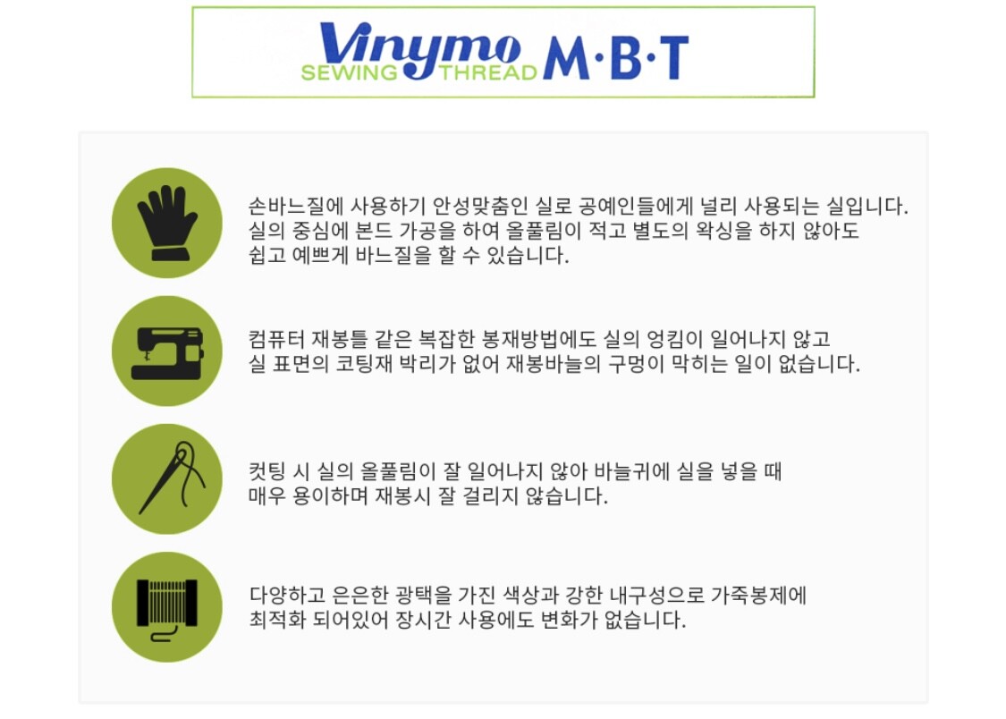 우수한 품질의 가죽 전용 실인 Vinymo (Polyester filament thread) 사를 사용. [made in japan]