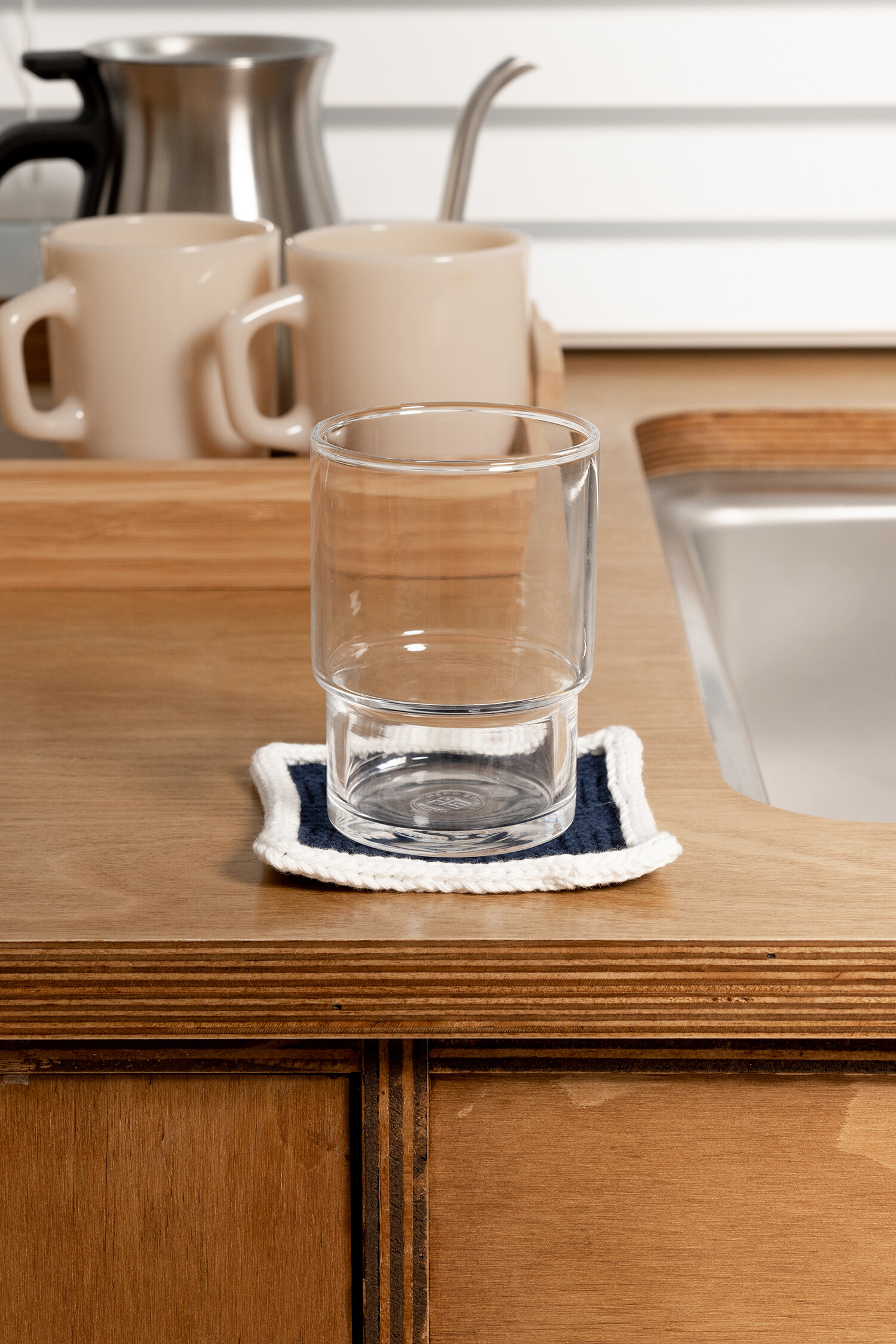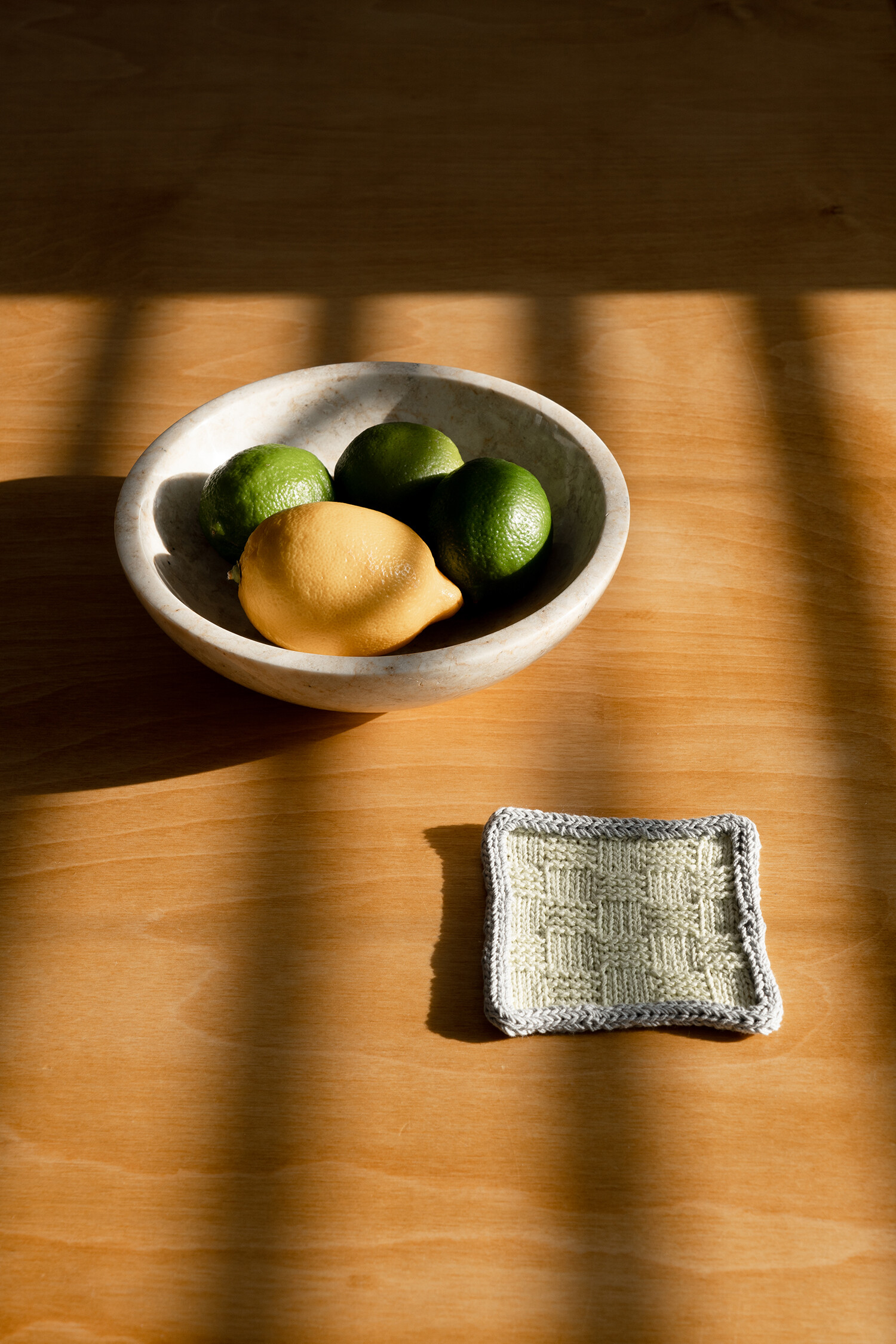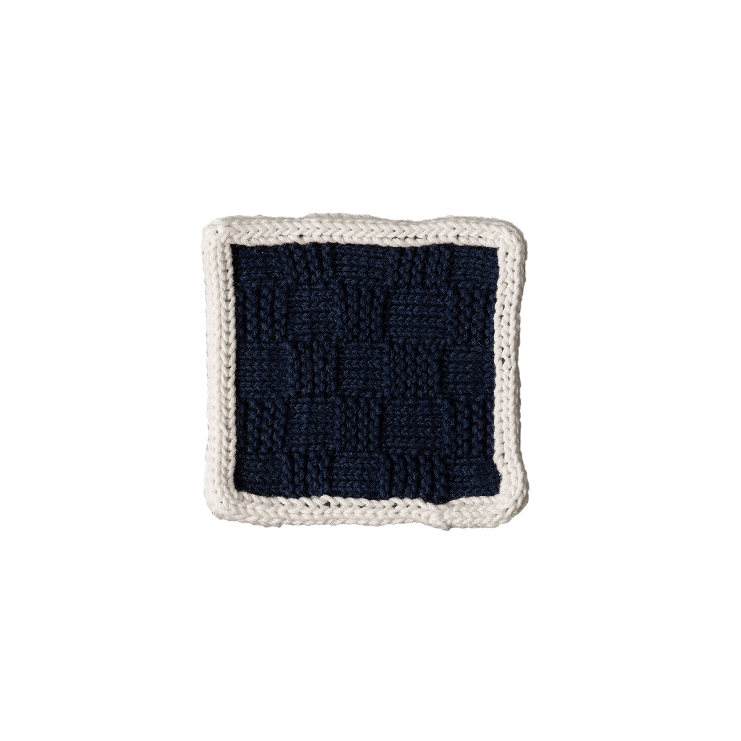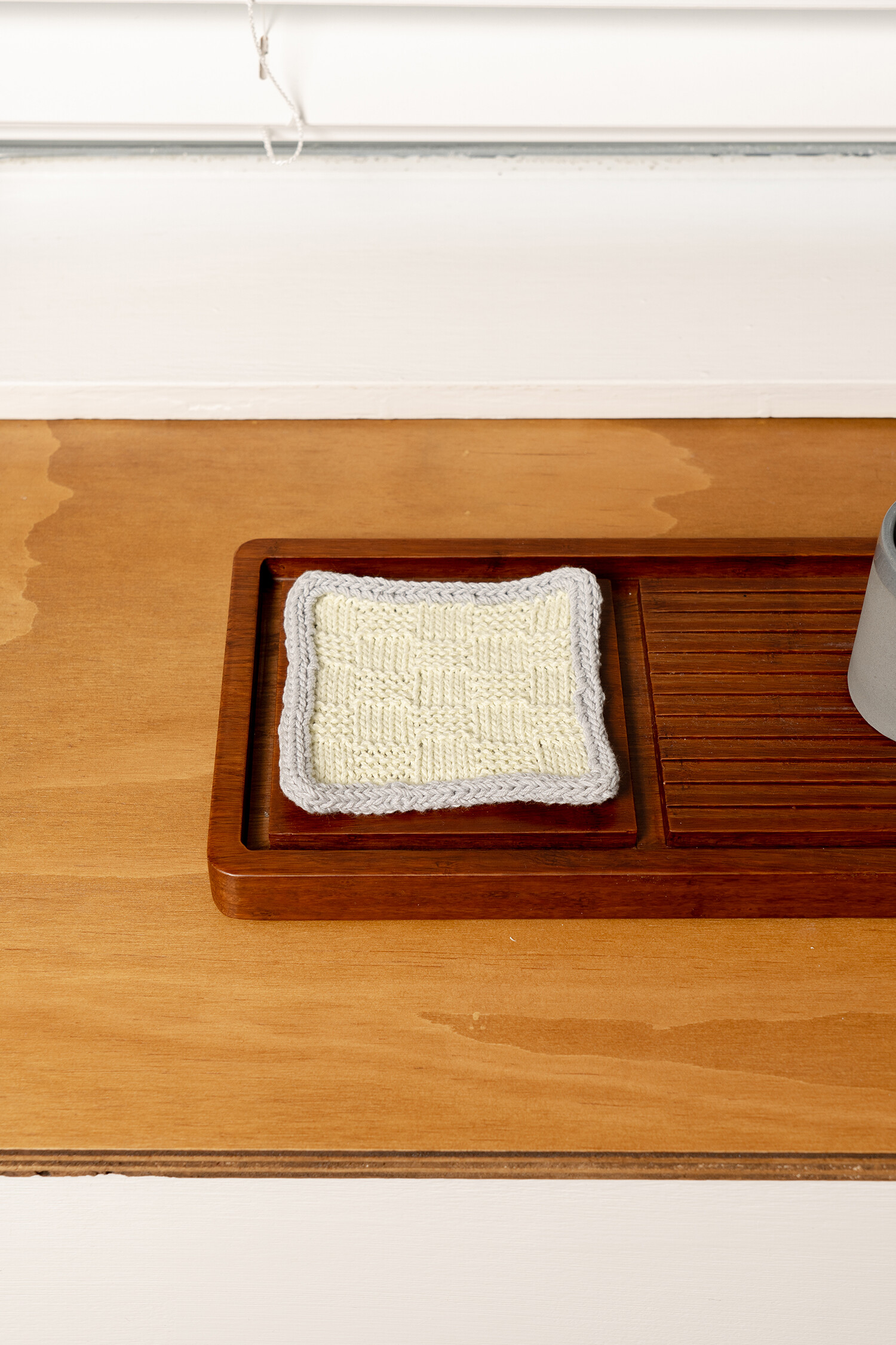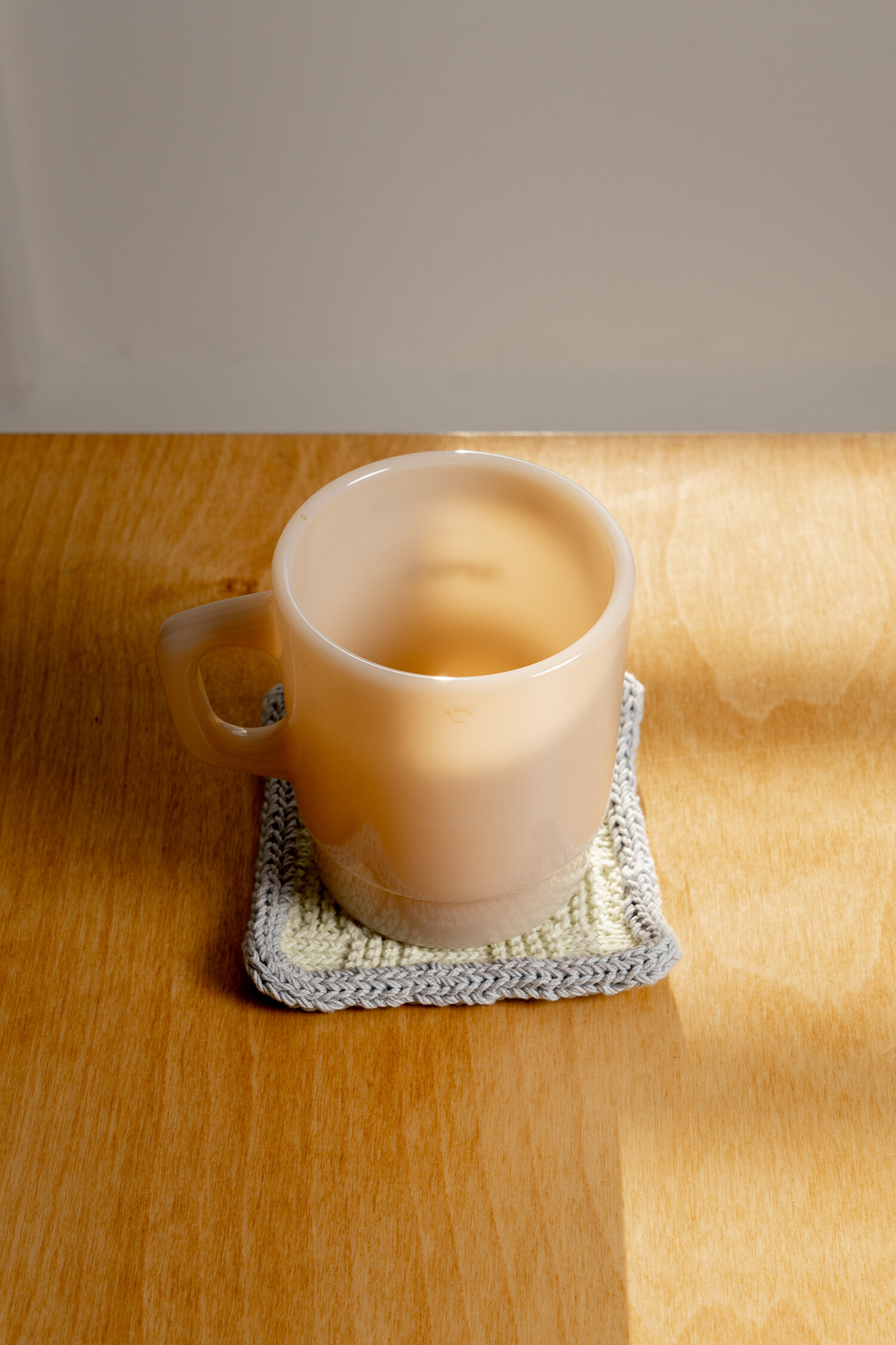 디자이너 CHOE 와 협업 및 제작한 핸드메이드 니트 코스터입니다. 대바늘 겉뜨기와 안뜨기를 교차적으로 배열 해 체커보드 형태를 이루도록 디자인되었습니다. 테두리에는 i-cord기법으로 조금 더 두께감있고, 견고한 마감을 하였습니다.