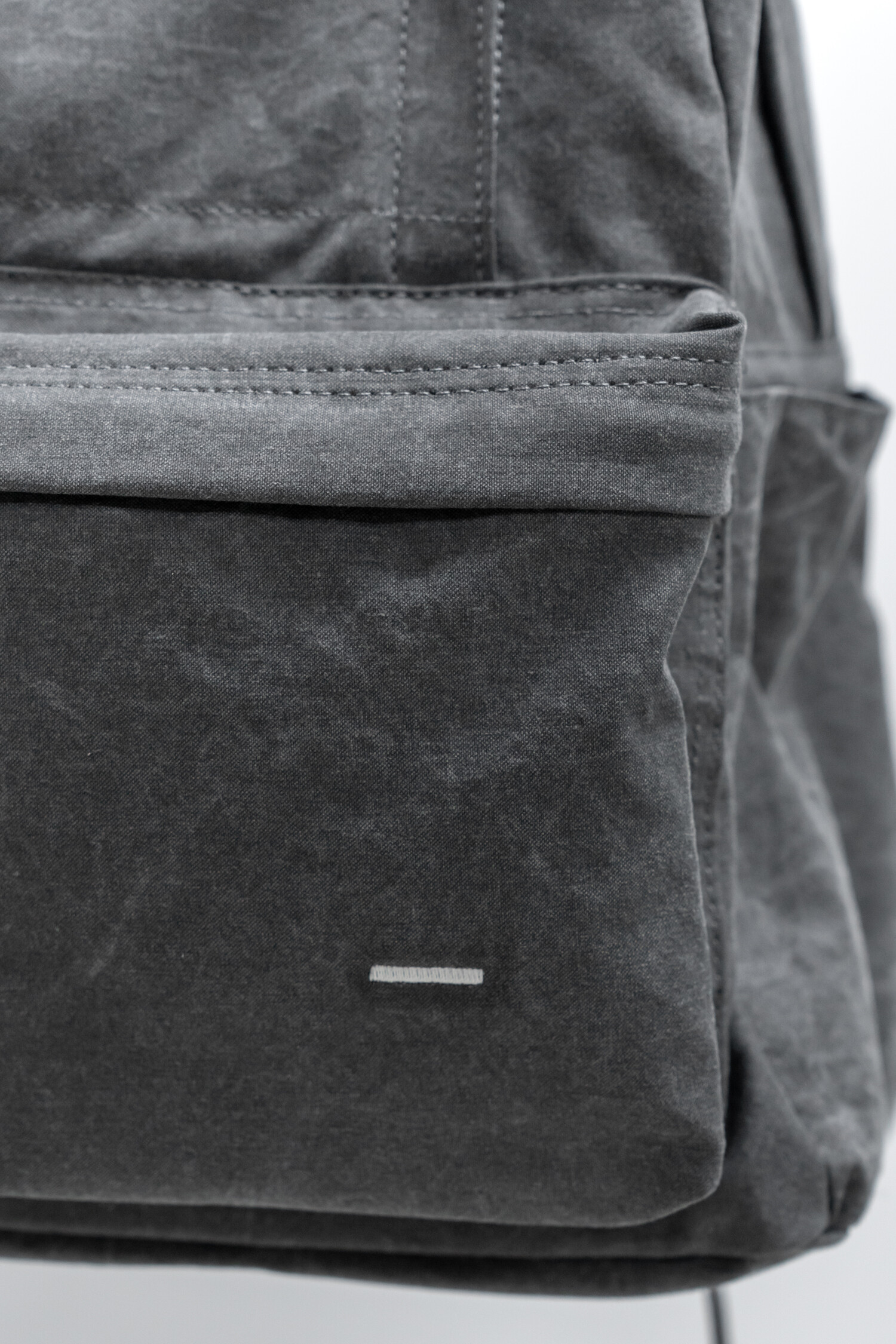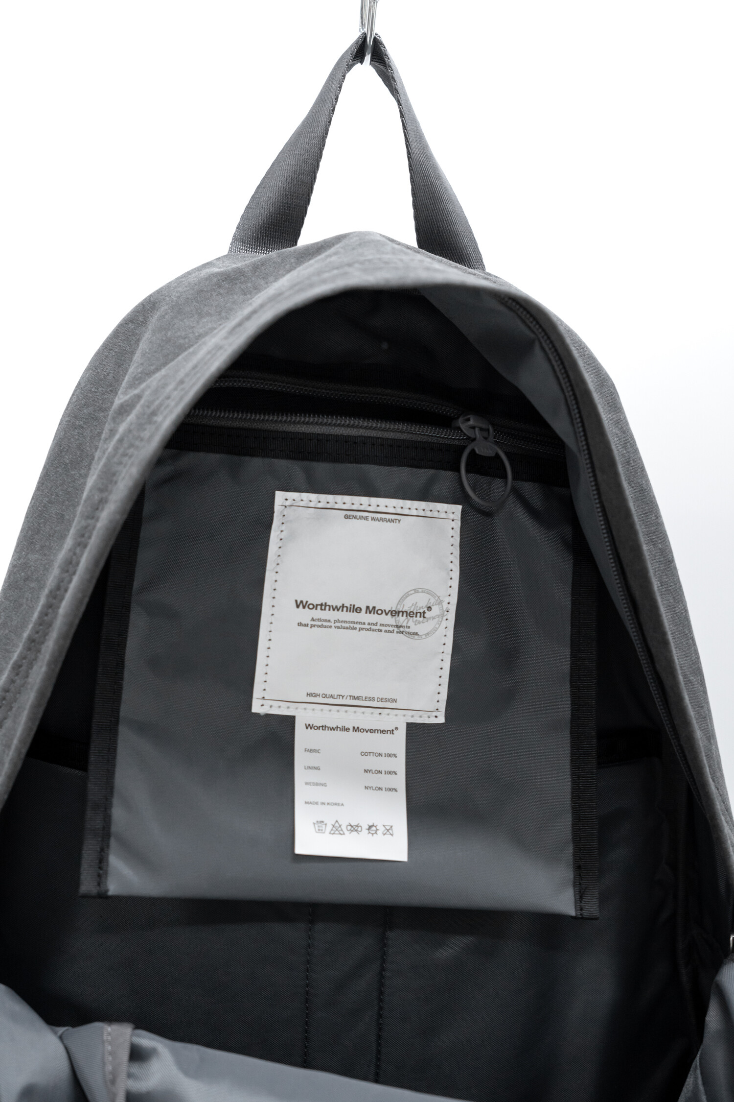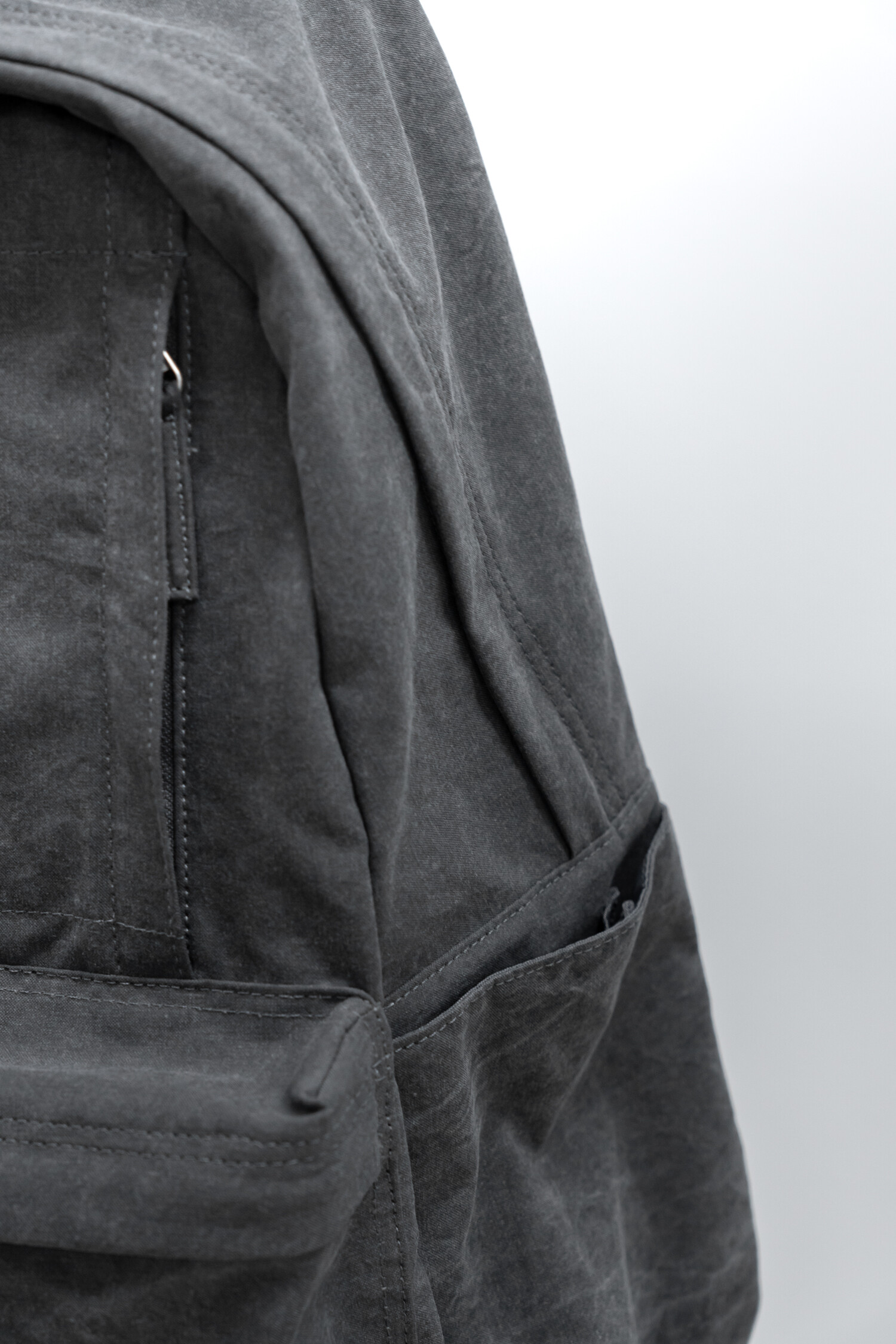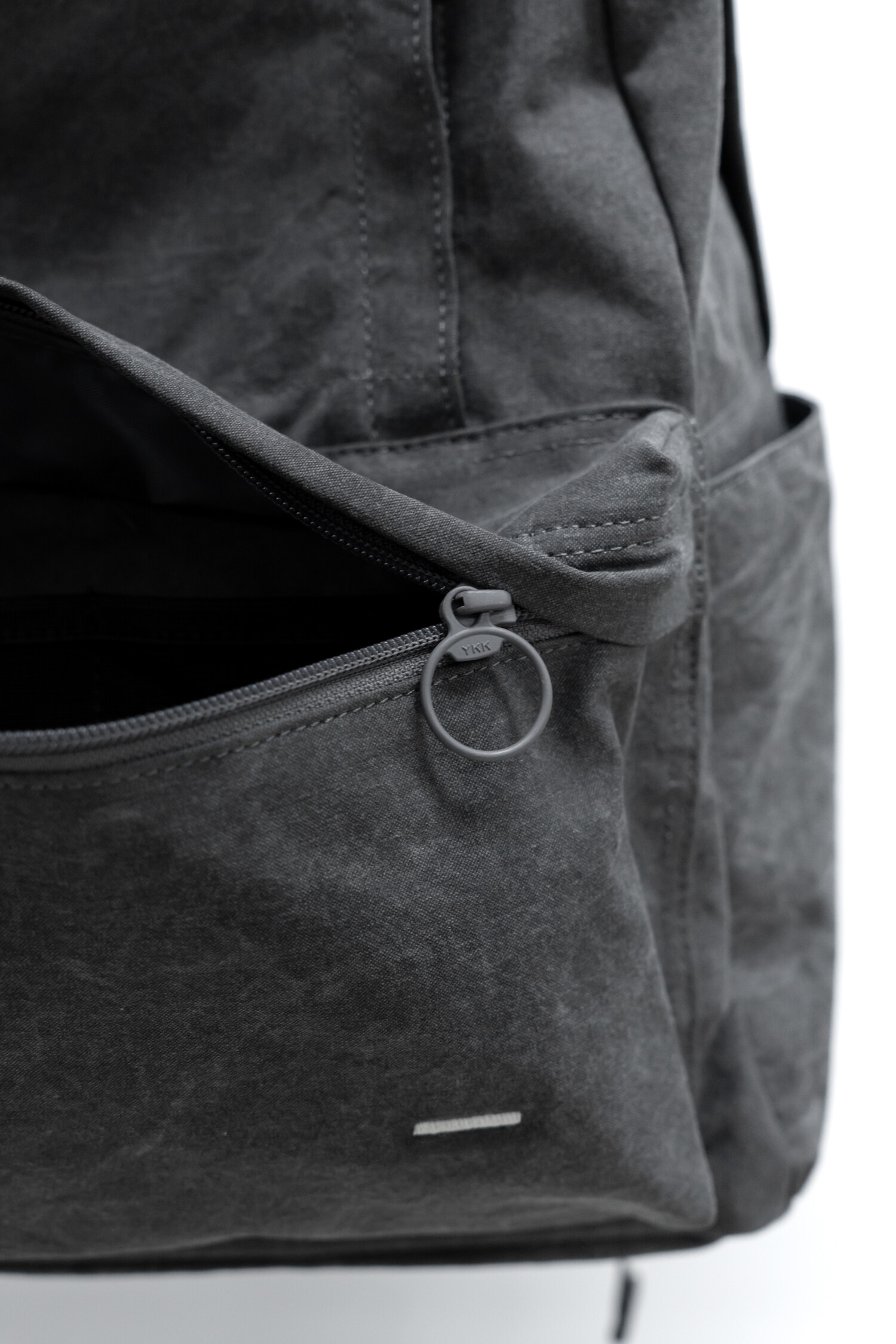 ▶︎ SIZE: 460 x 360 x 150 (mm) ▶︎ WEIGHT: 680g ▶︎ CAPACITY: 22L ▶︎ STORAGE: 17" Laptop ▶︎ TYPE: 1 Way (Backpack) ▶︎ COLOR: Washed charcoal ▶︎ FABRIC: Cotton 100% (Pigment dyed & bio washed oxford cotton) ▶︎ LINING: Nylon 100% ▶︎ WEBBING: Nylon 100% ▶︎ ZIPPER: YKK® Nickel zipper ▶︎ PARTS: YKK® snap & Silver matt parts ▶︎ ORIGIN: Korea