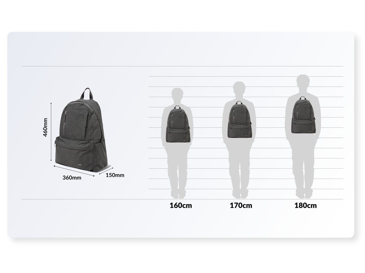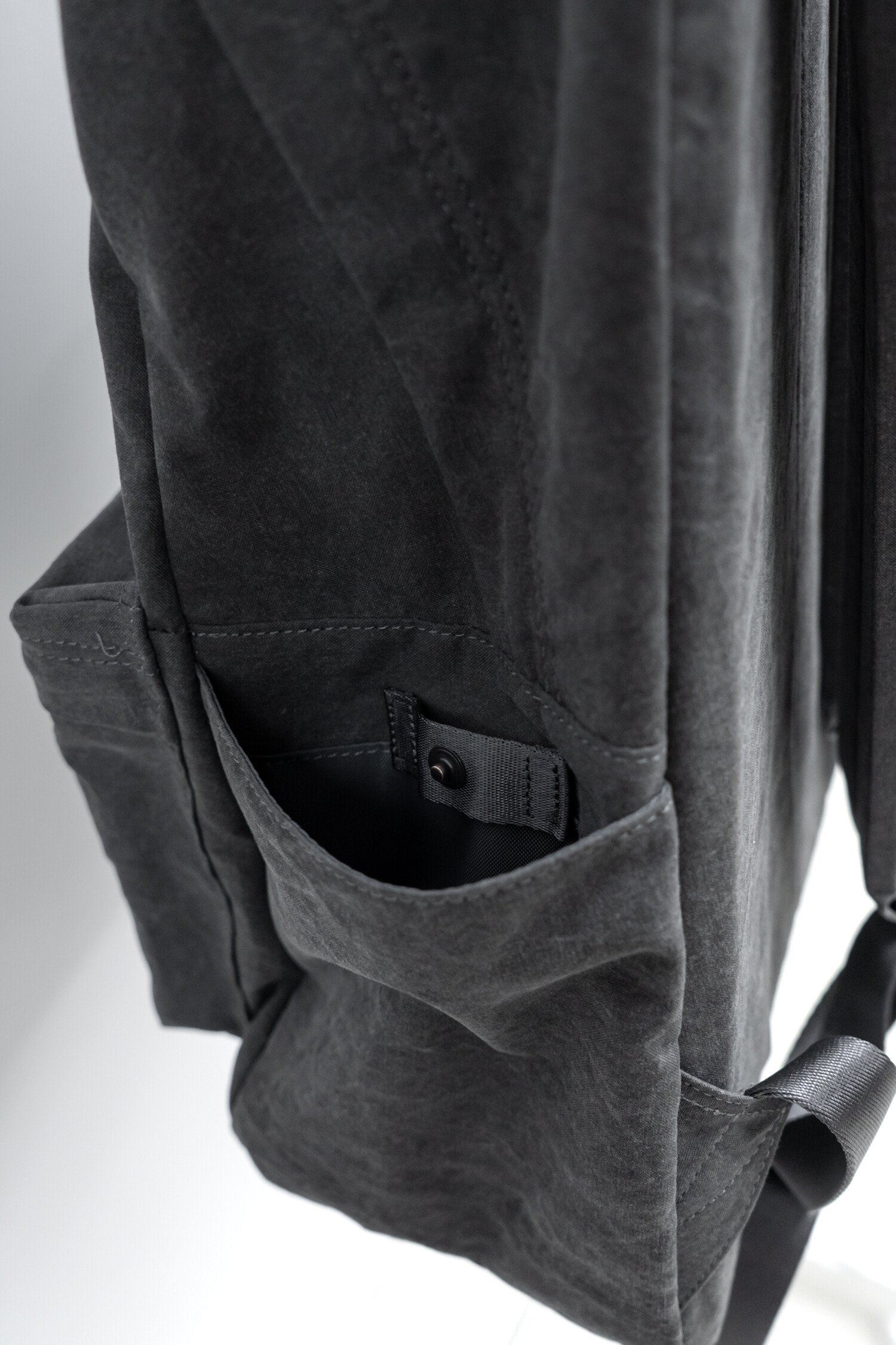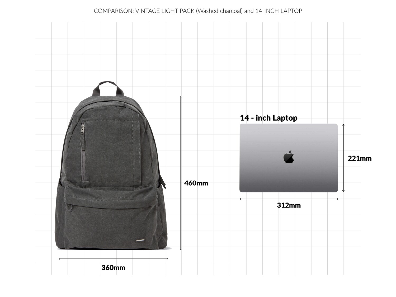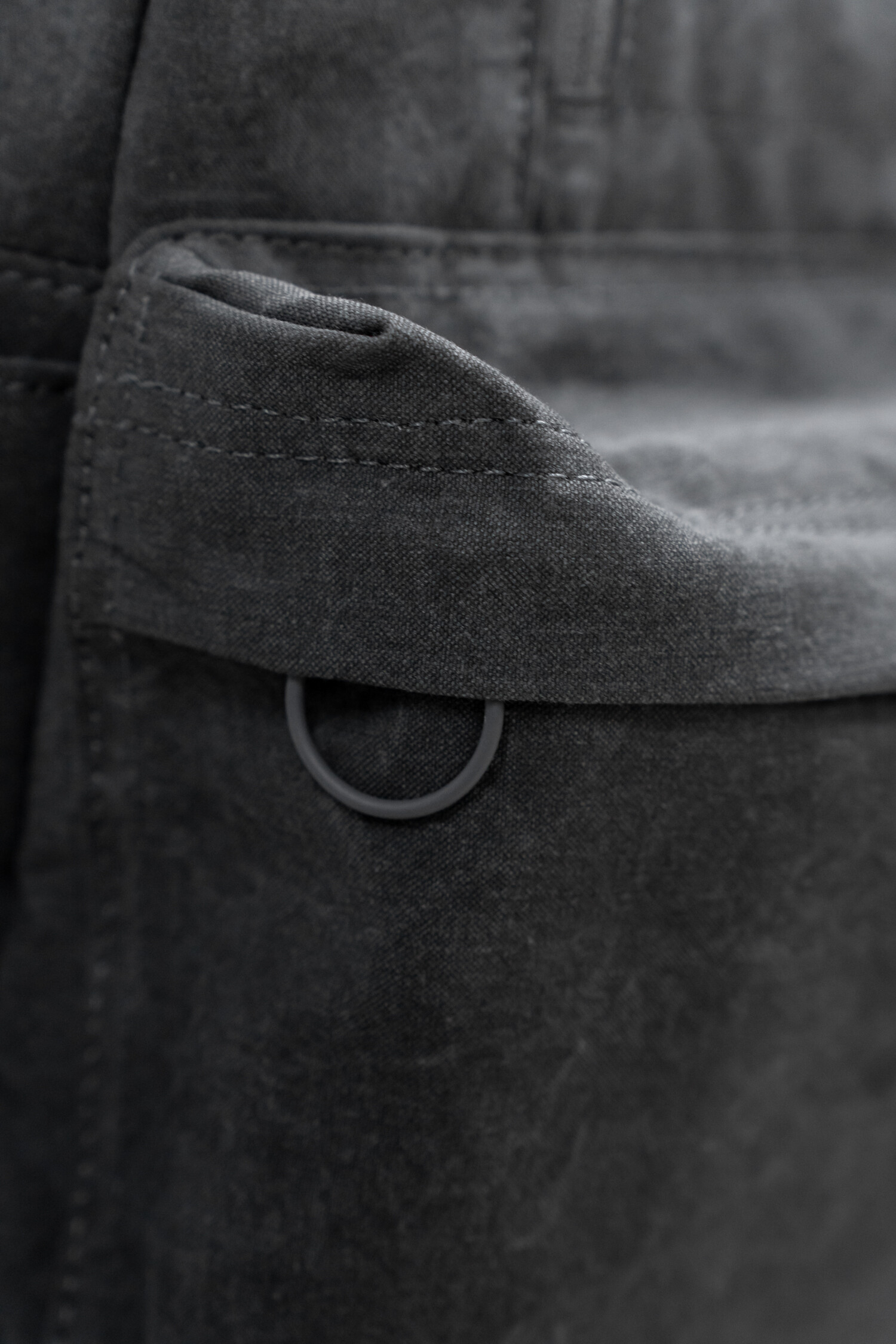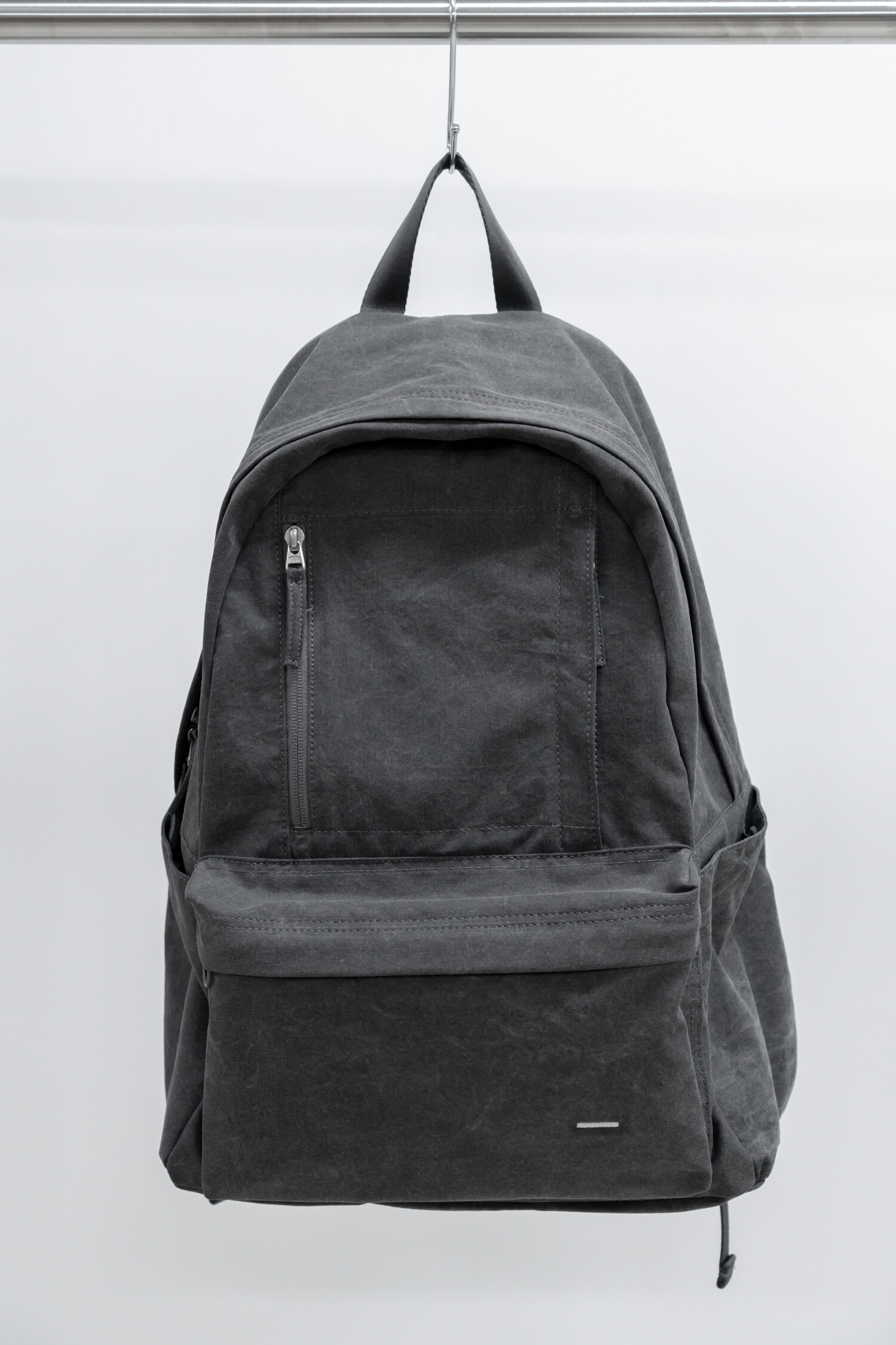▶︎ SIZE: 460 x 360 x 150 (mm) ▶︎ WEIGHT: 680g ▶︎ CAPACITY: 22L ▶︎ STORAGE: 17" Laptop ▶︎ TYPE: 1 Way (Backpack) ▶︎ COLOR: Washed charcoal ▶︎ FABRIC: Cotton 100% (Pigment dyed & bio washed oxford cotton) ▶︎ LINING: Nylon 100% ▶︎ WEBBING: Nylon 100% ▶︎ ZIPPER: YKK® Nickel zipper ▶︎ PARTS: YKK® snap & Silver matt parts ▶︎ ORIGIN: Korea